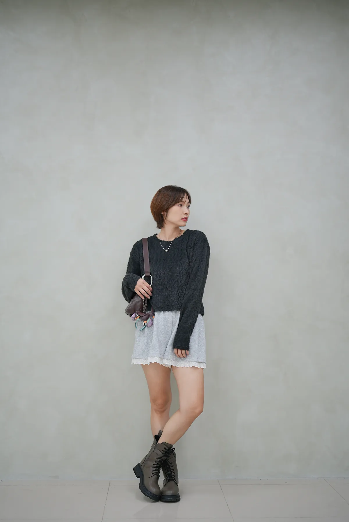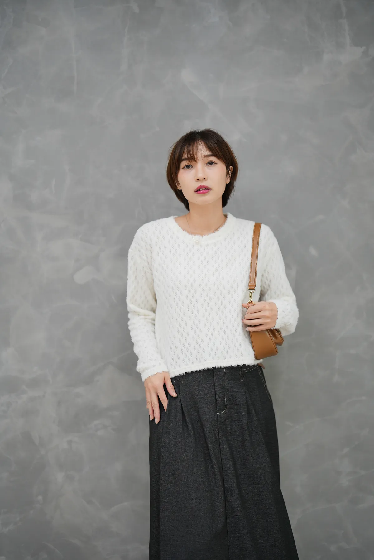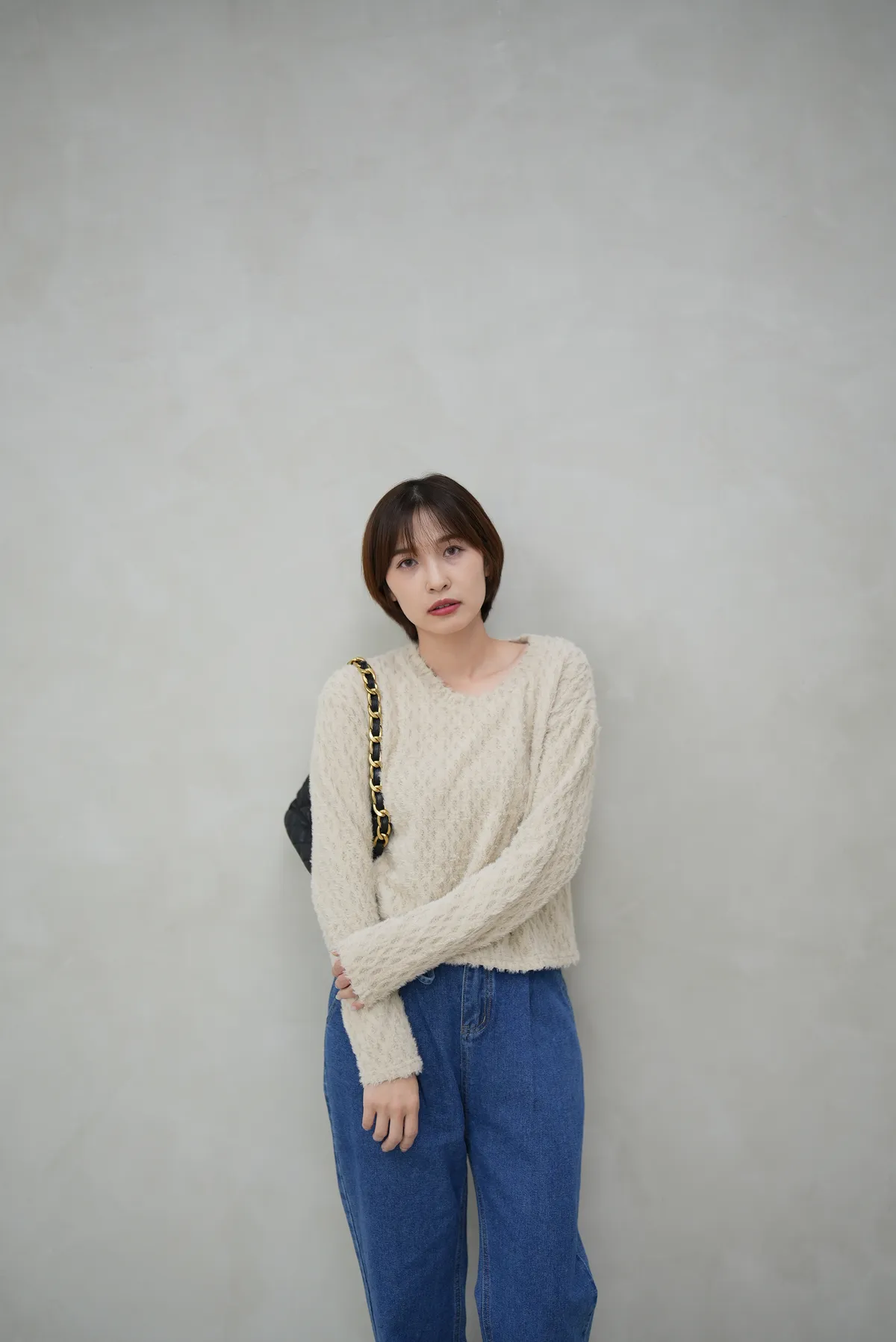 好喜歡這塊布料表層是立體的小短毛不是很容易掉毛那種下身隨便搭都好看 📌 穿搭介紹請直接點選連結看直播唷 ▾ 🔗Facebook .⚠️ 注意事項請確認好尺寸、款式、顏色再下單若有疑慮都歡迎到粉絲專頁私訊我們我們會幫您建議適合的商品尺寸