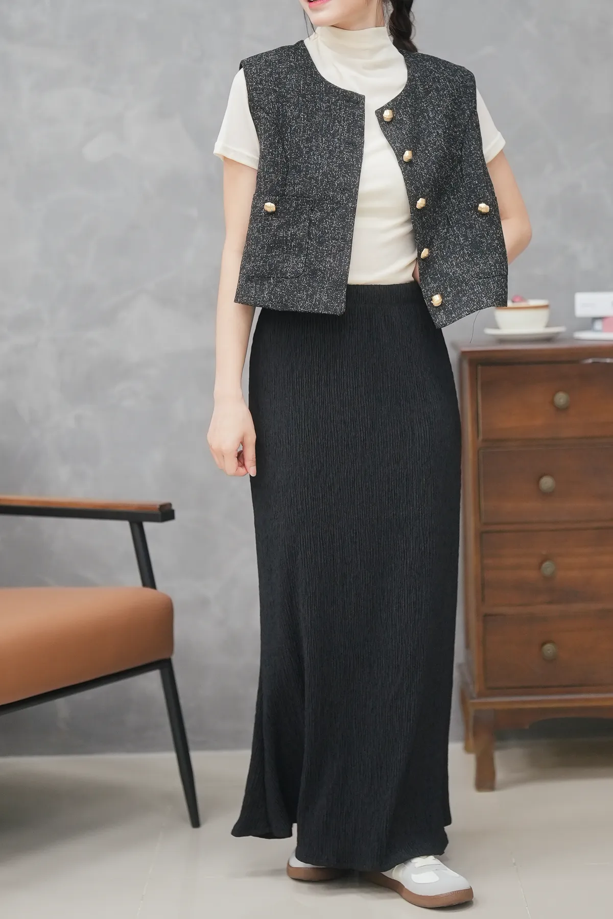 布料像在說一個精彩的故事 垂墜感很夠細摺裙