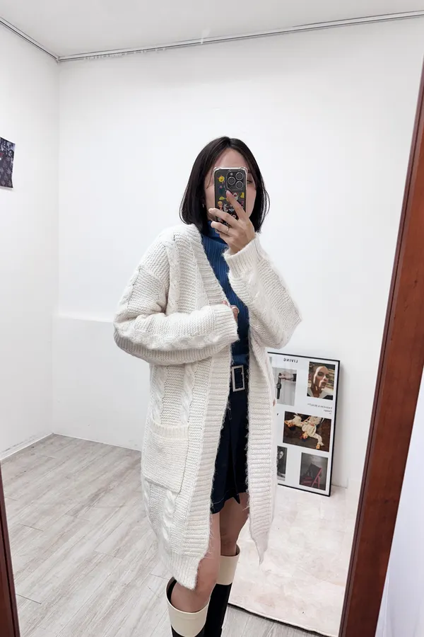 這是今年第一件長版麻花毛衣