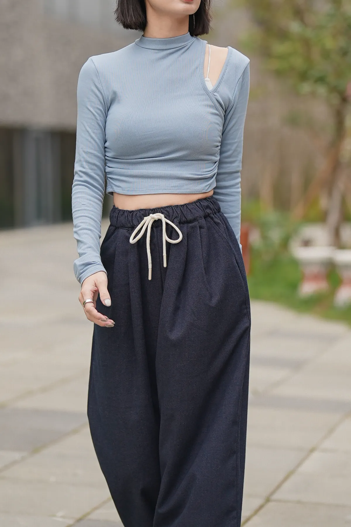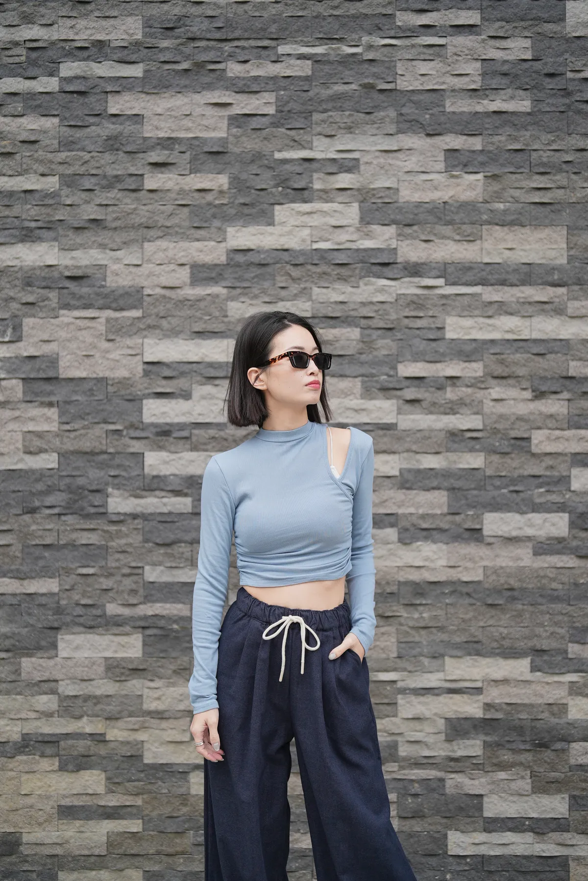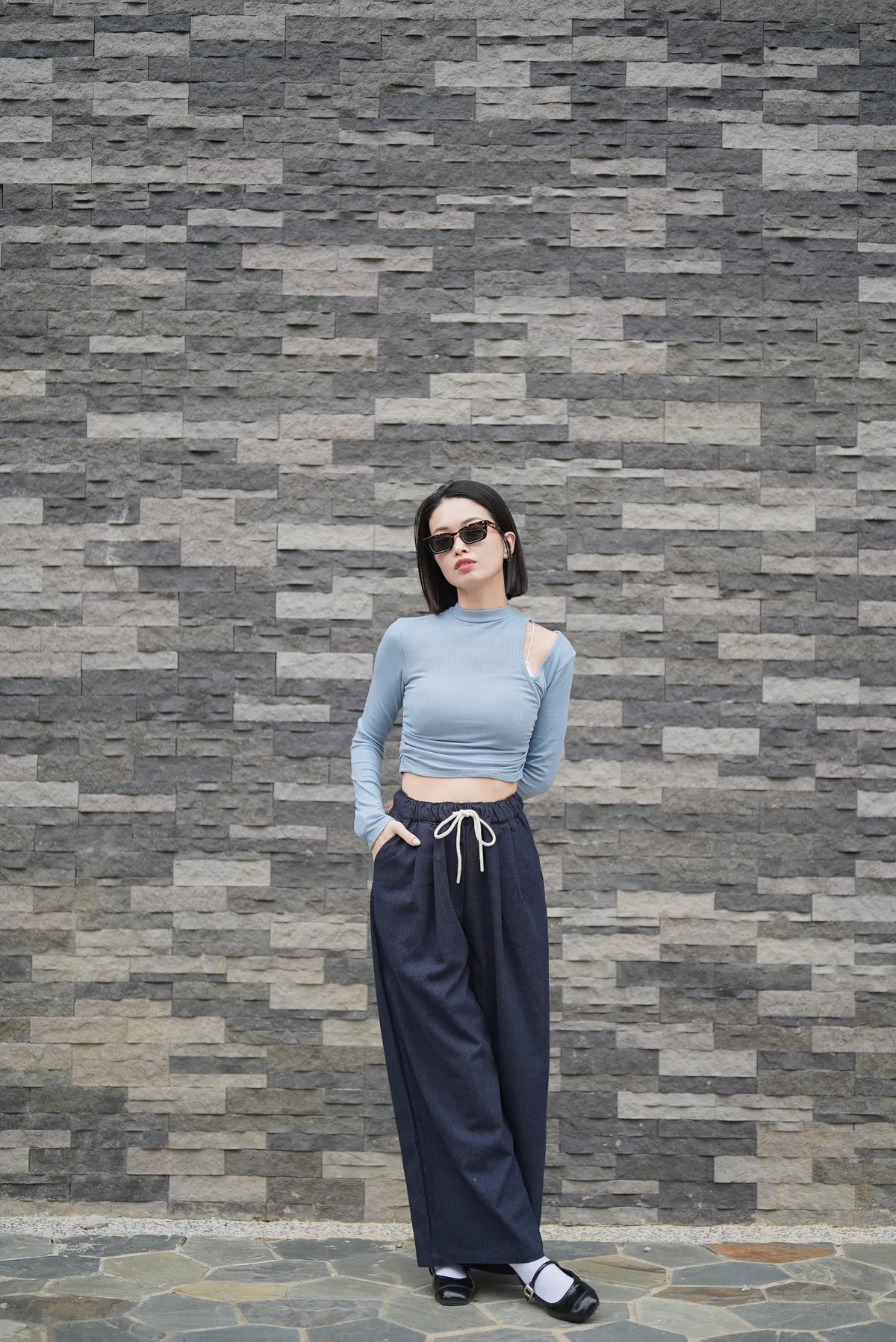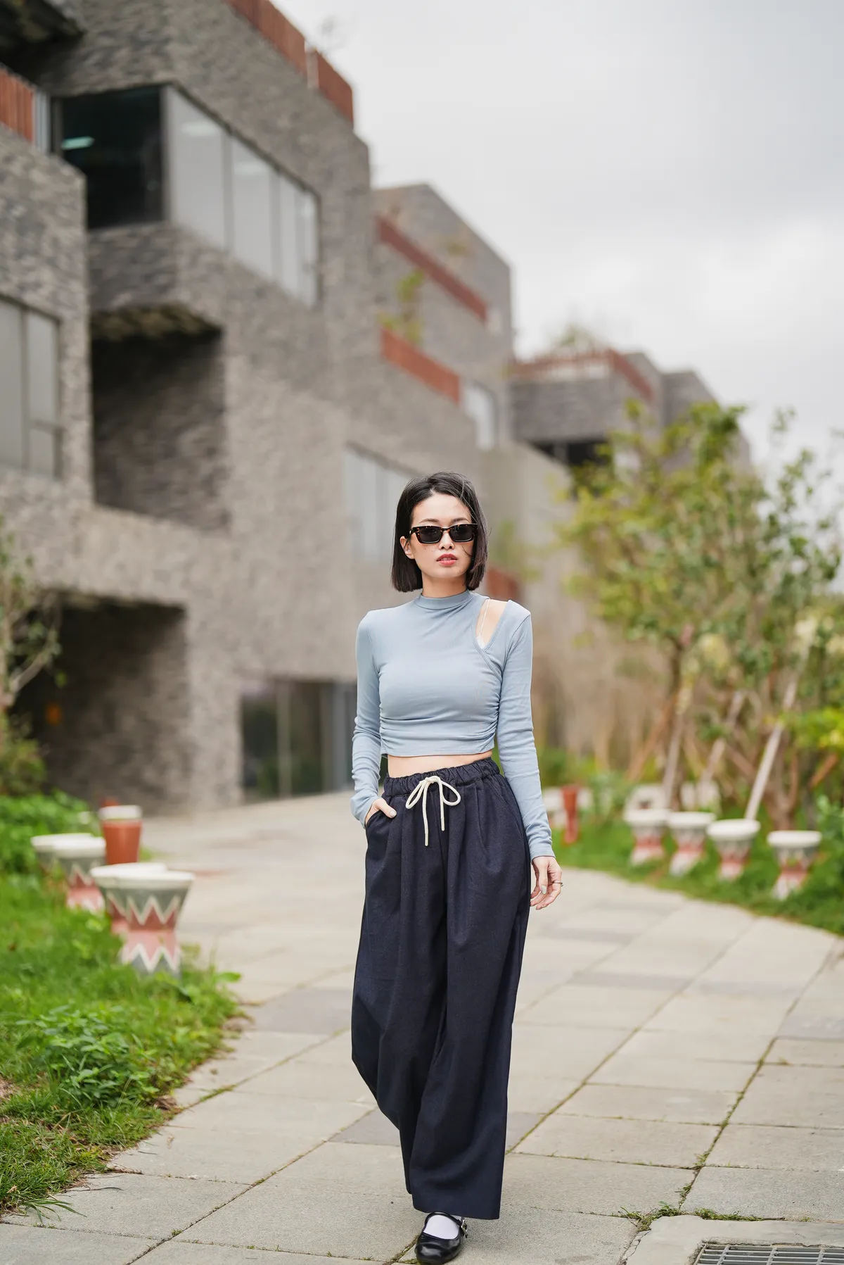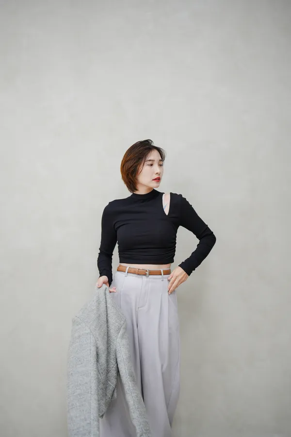 內搭也好看到不行 設計感挖肩縮腰上衣