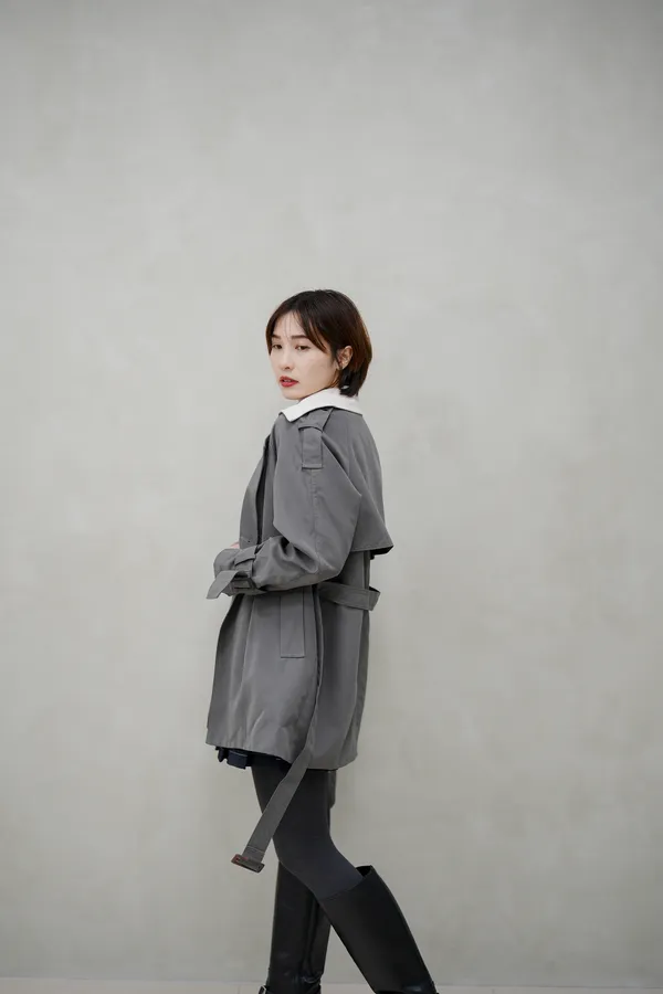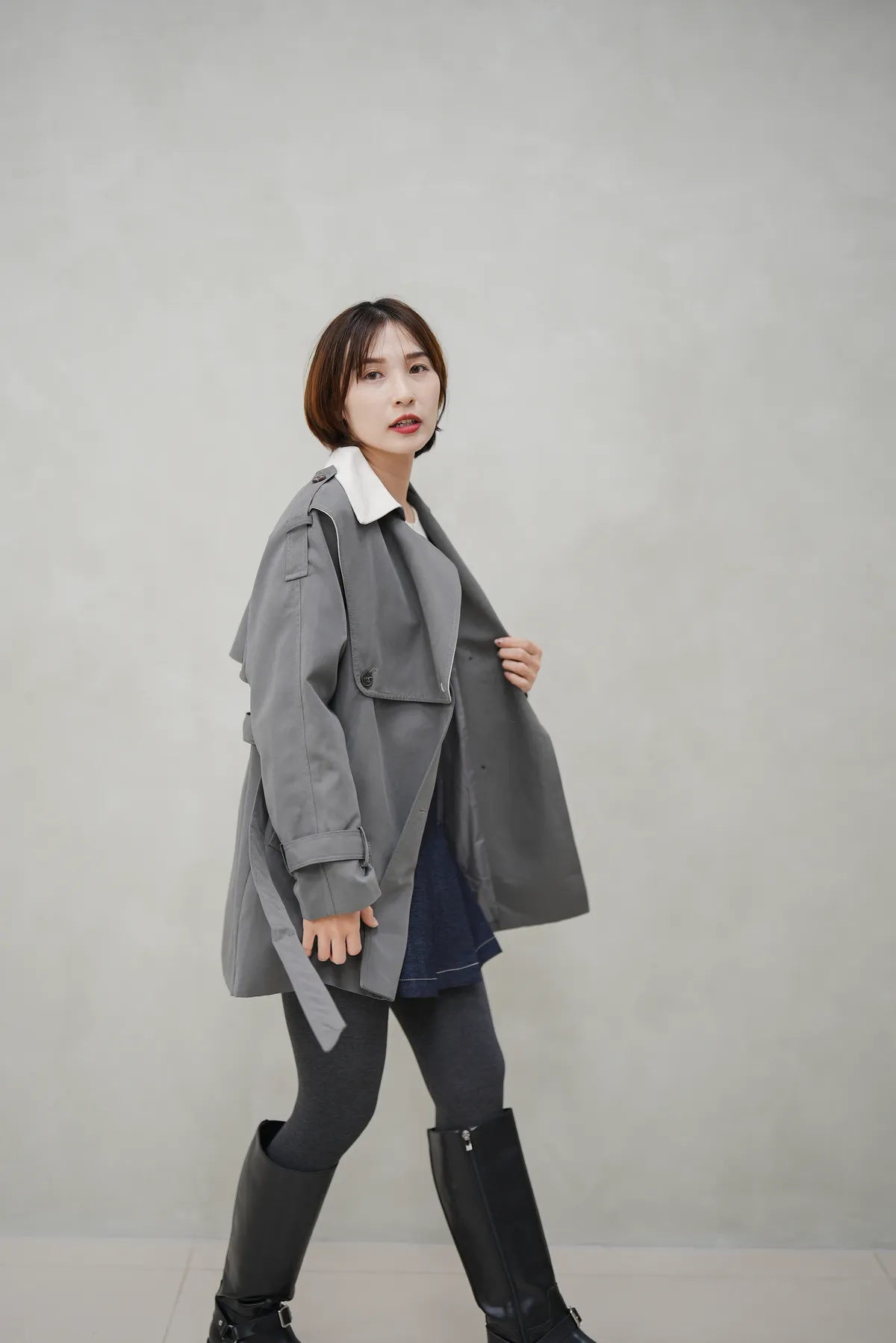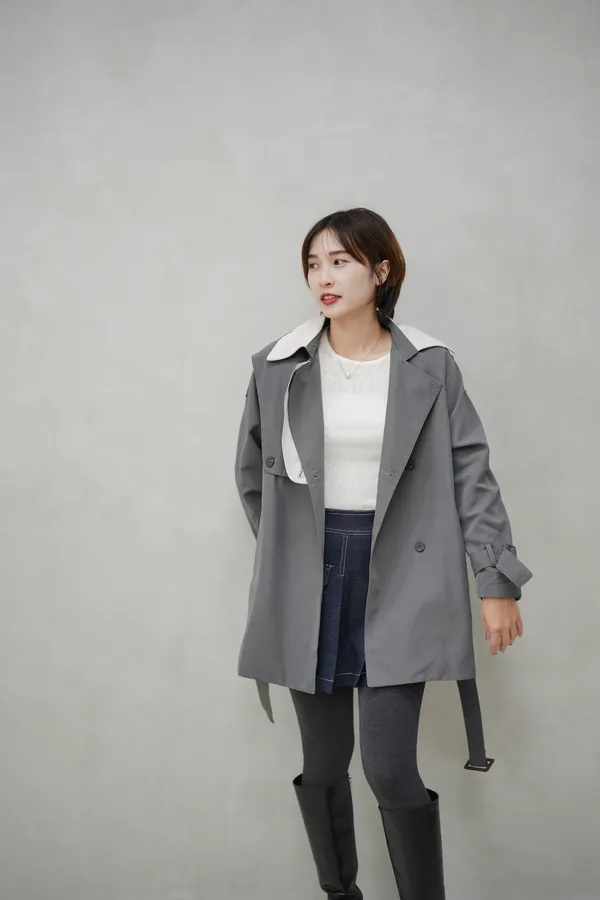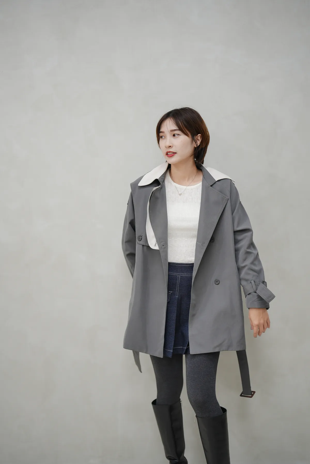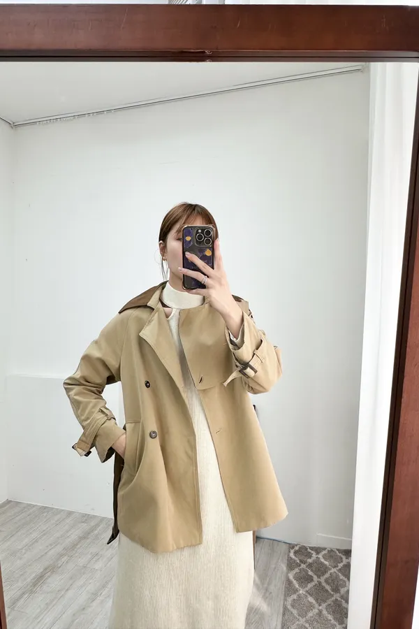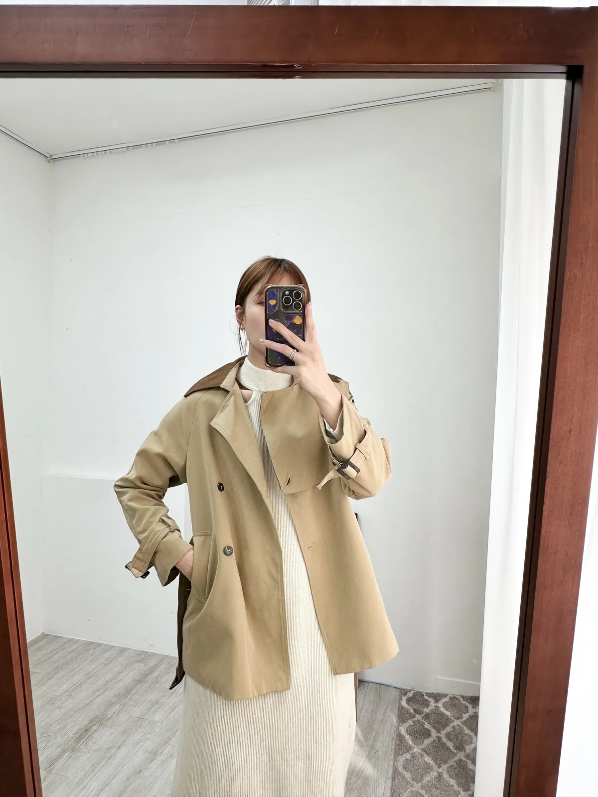 蜜桃絨撞色大衣外套(附手袖、腰帶)
