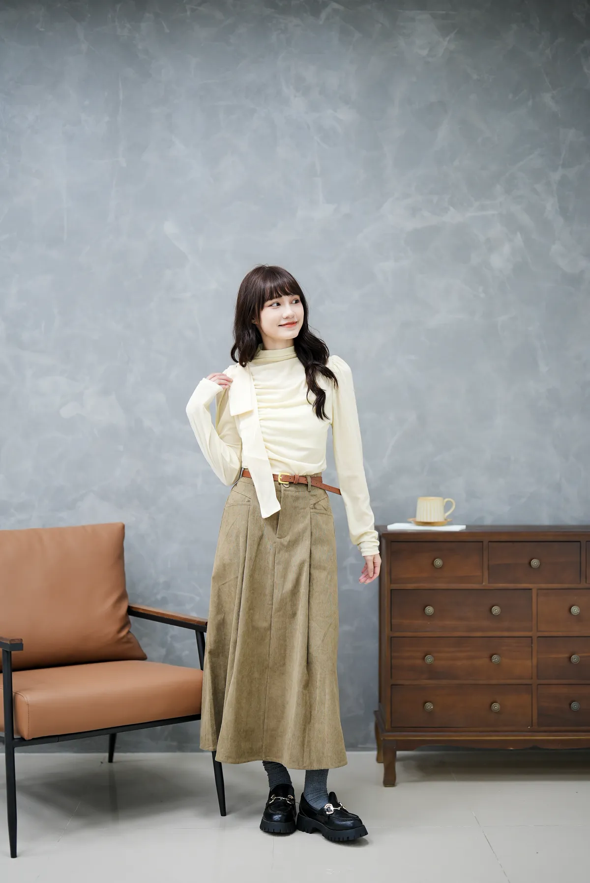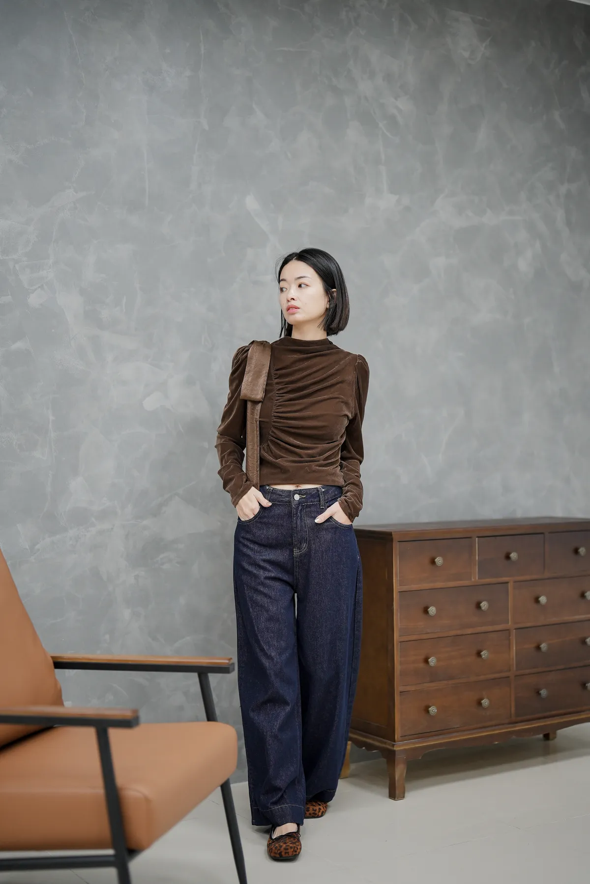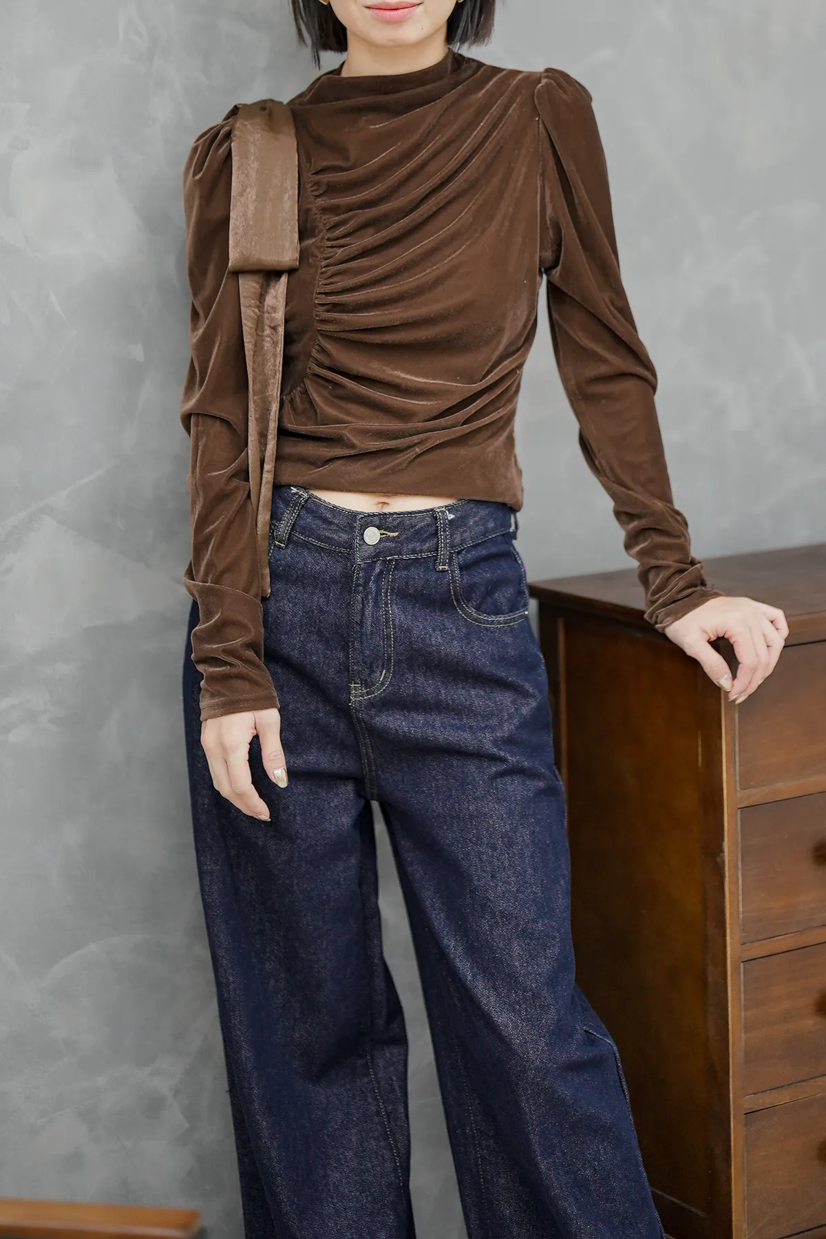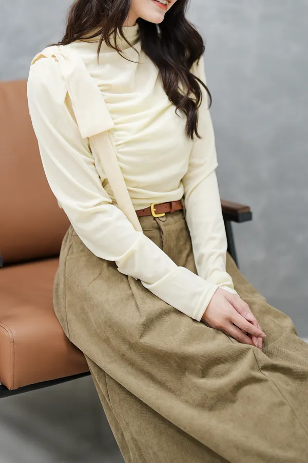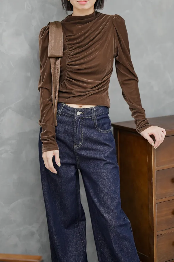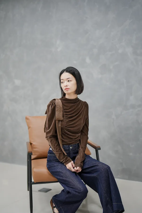 側邊抓皺緞光上衣