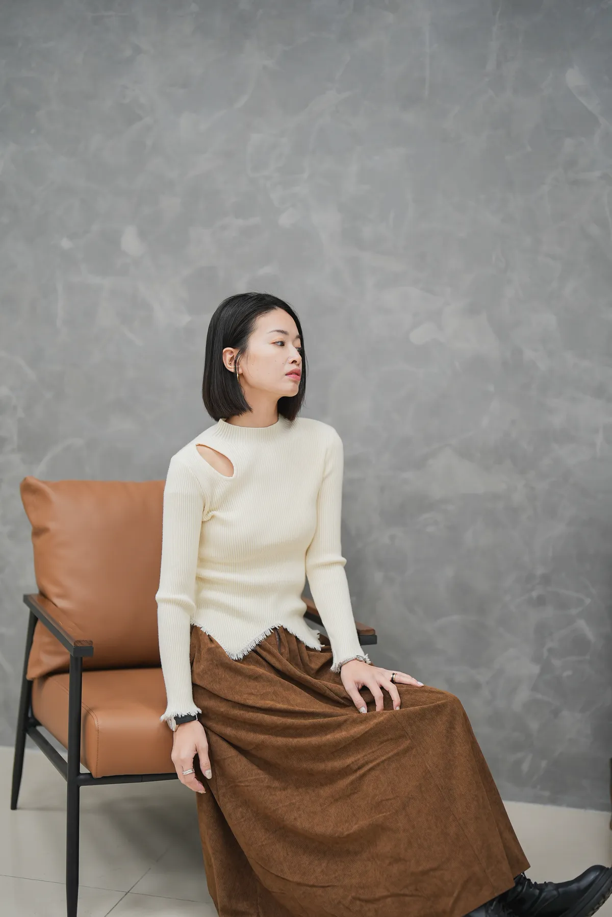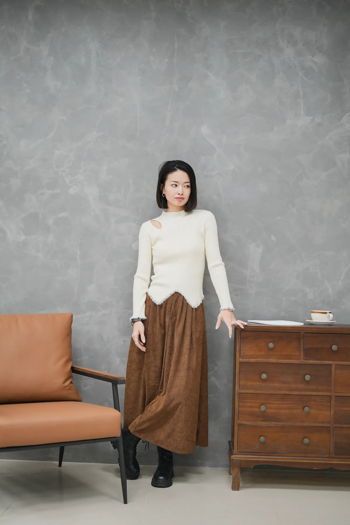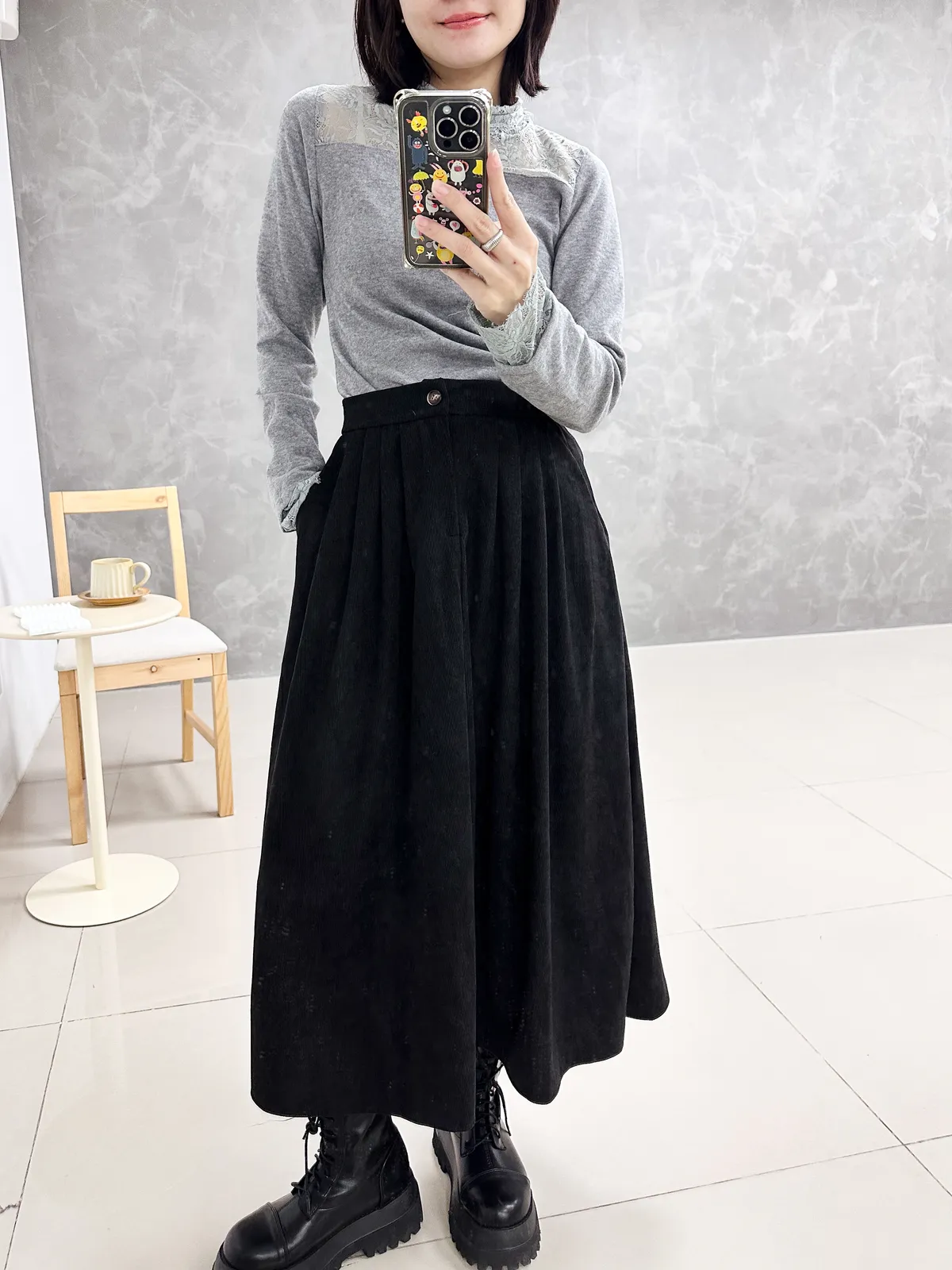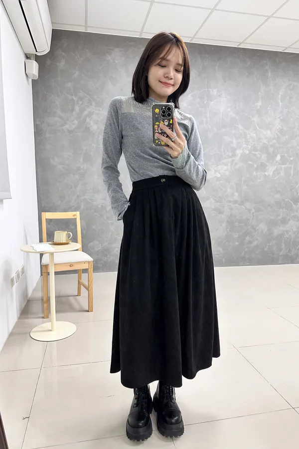 後縮腰燈心絨圓裙