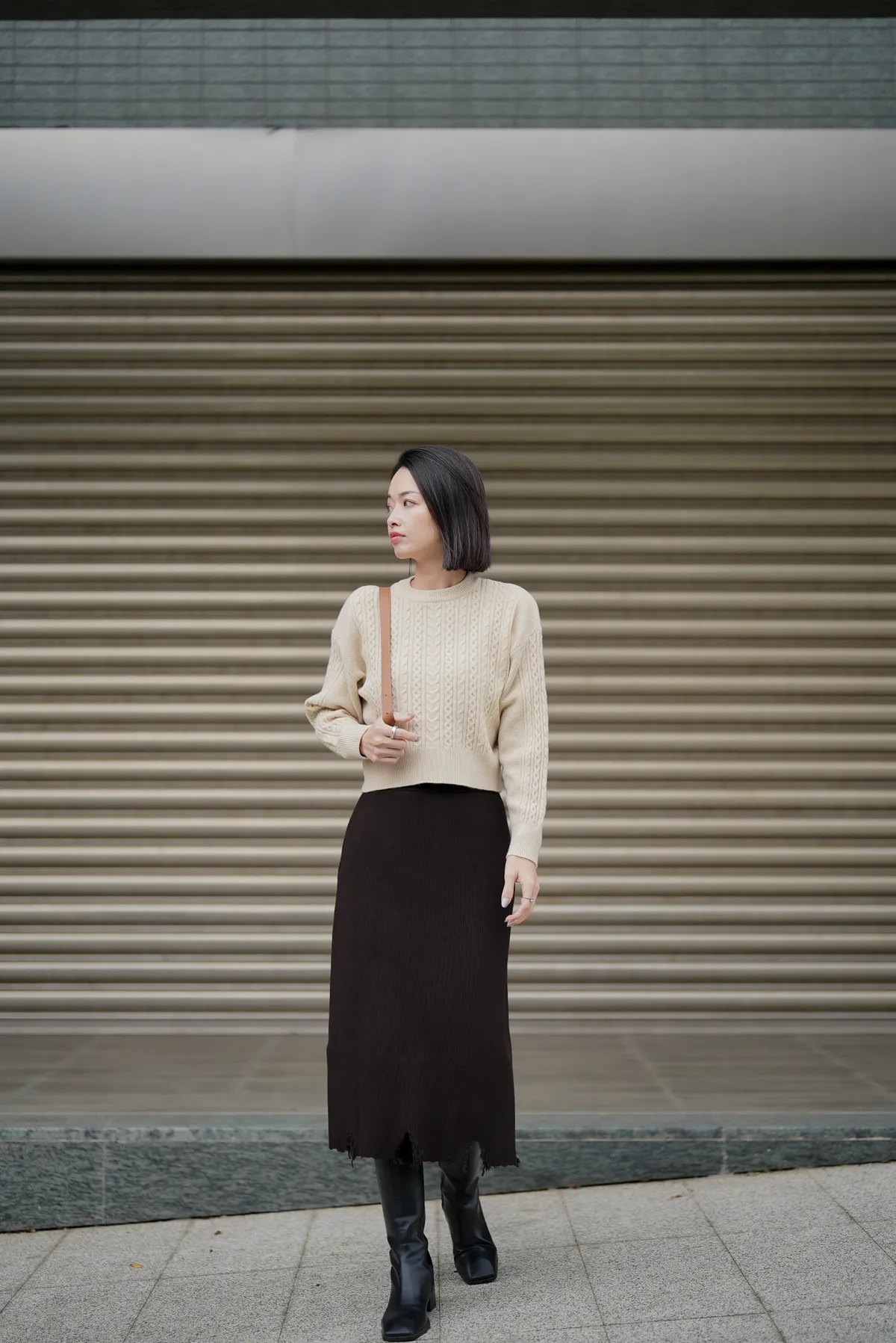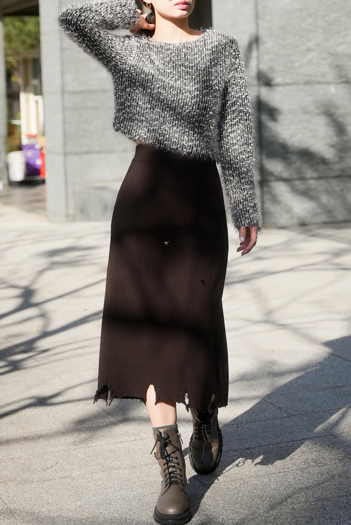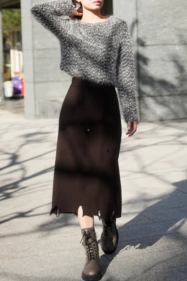 割破造型坑條針織裙