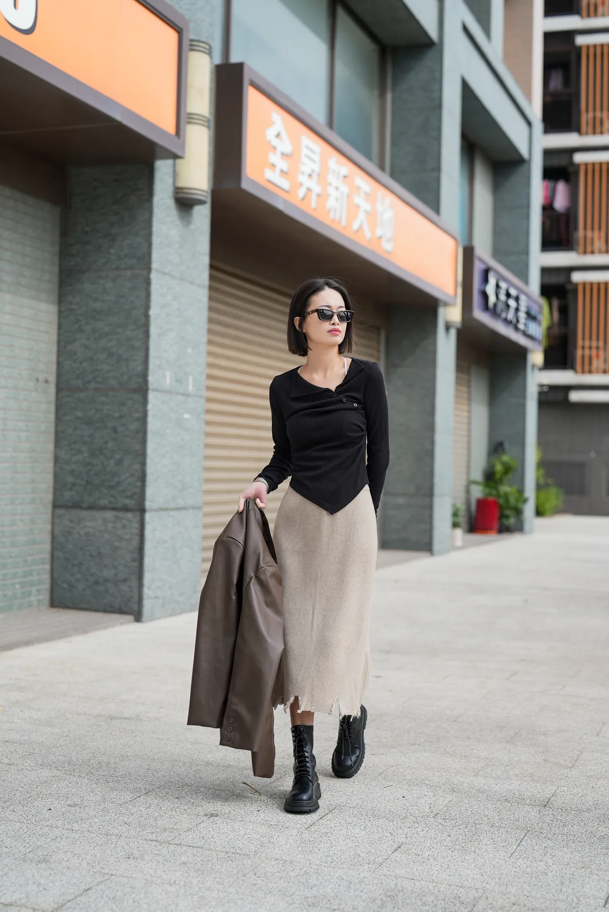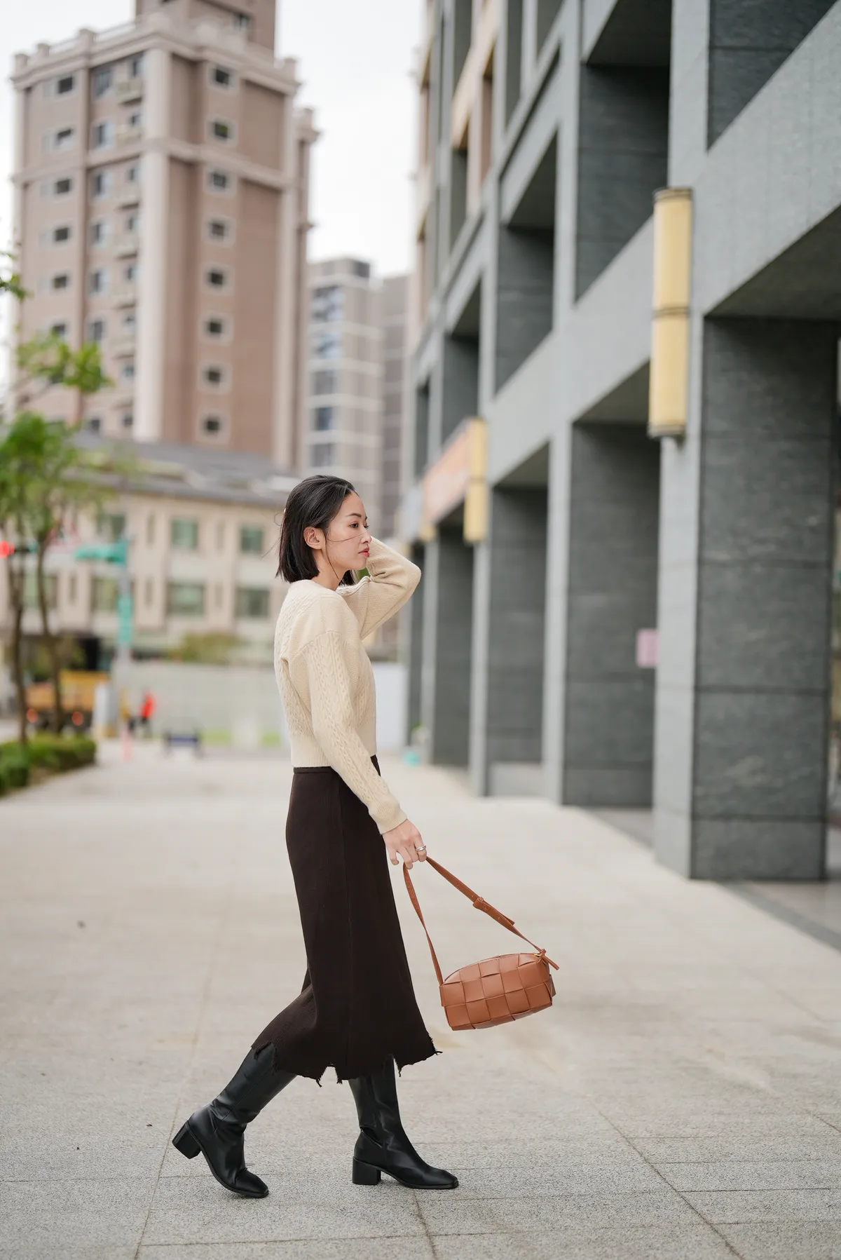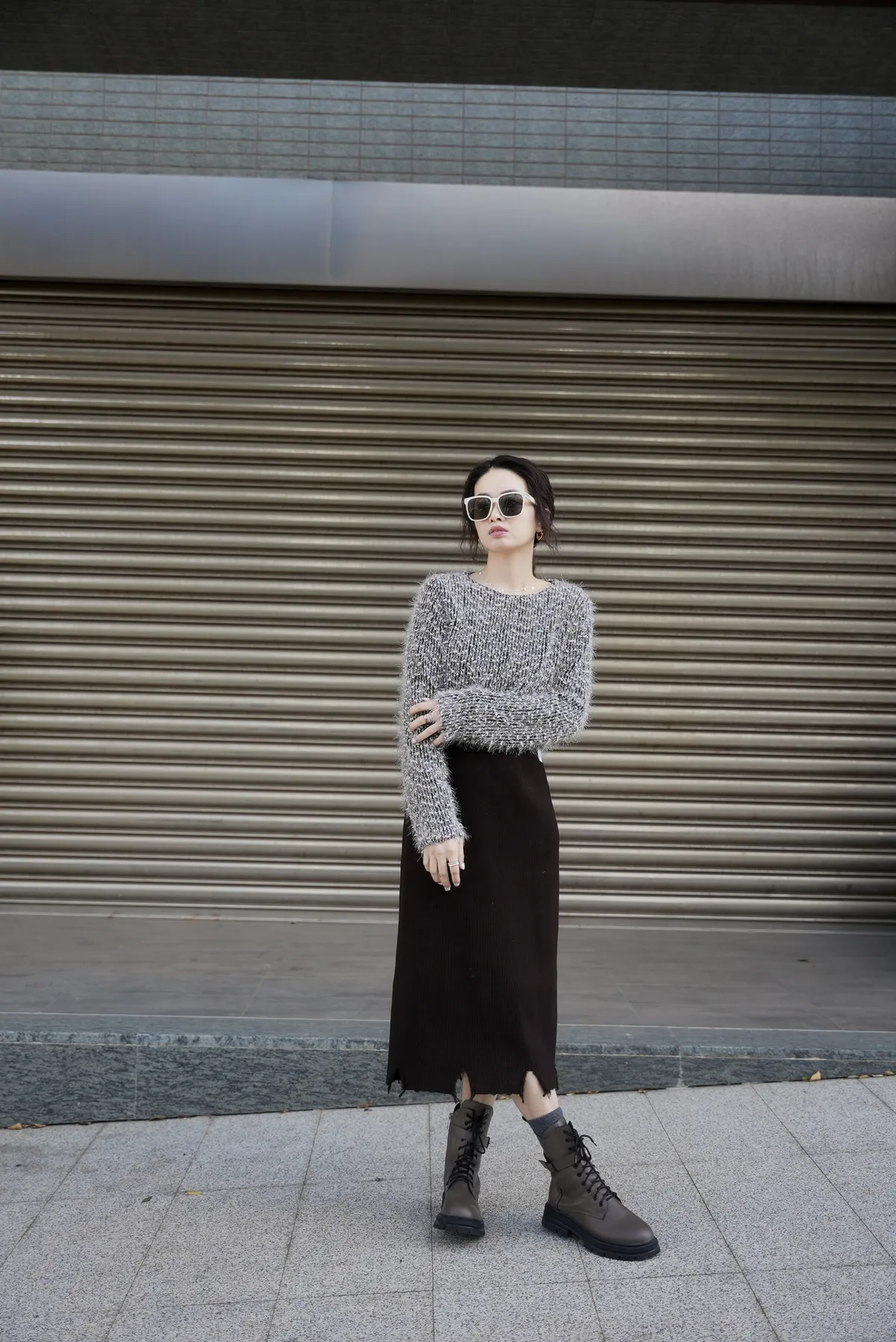 割破造型坑條針織裙