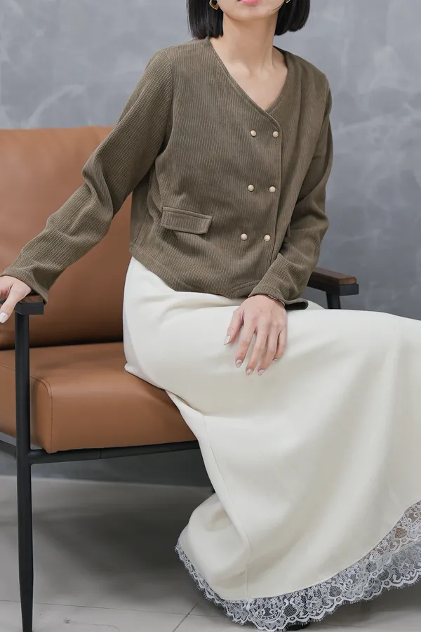 (現貨)燈芯絨假口袋排釦上衣