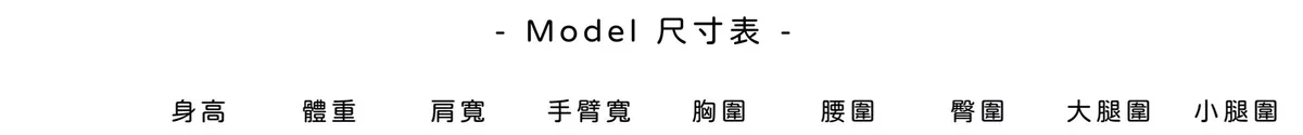 | 肩寬 | 袖寬 | 胸圍 | 腰圍 | 臀圍 | 長度 |