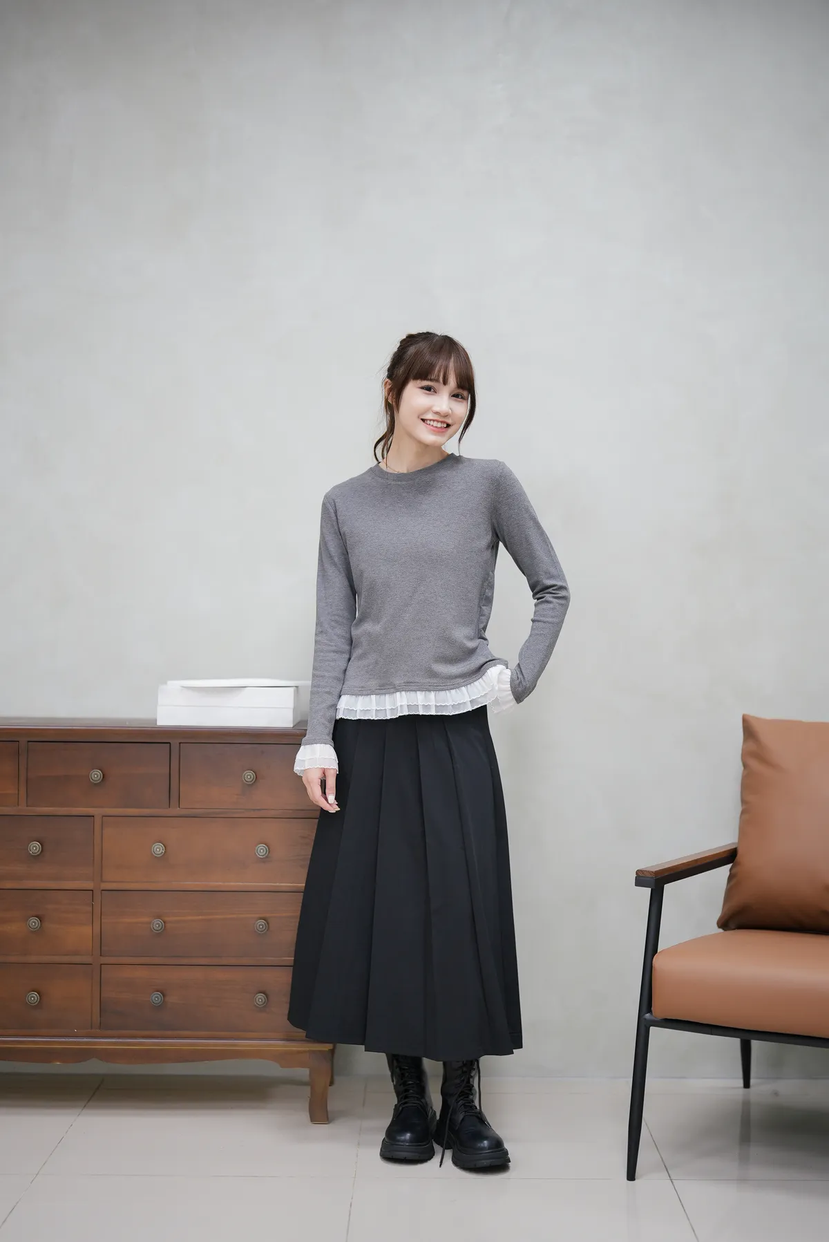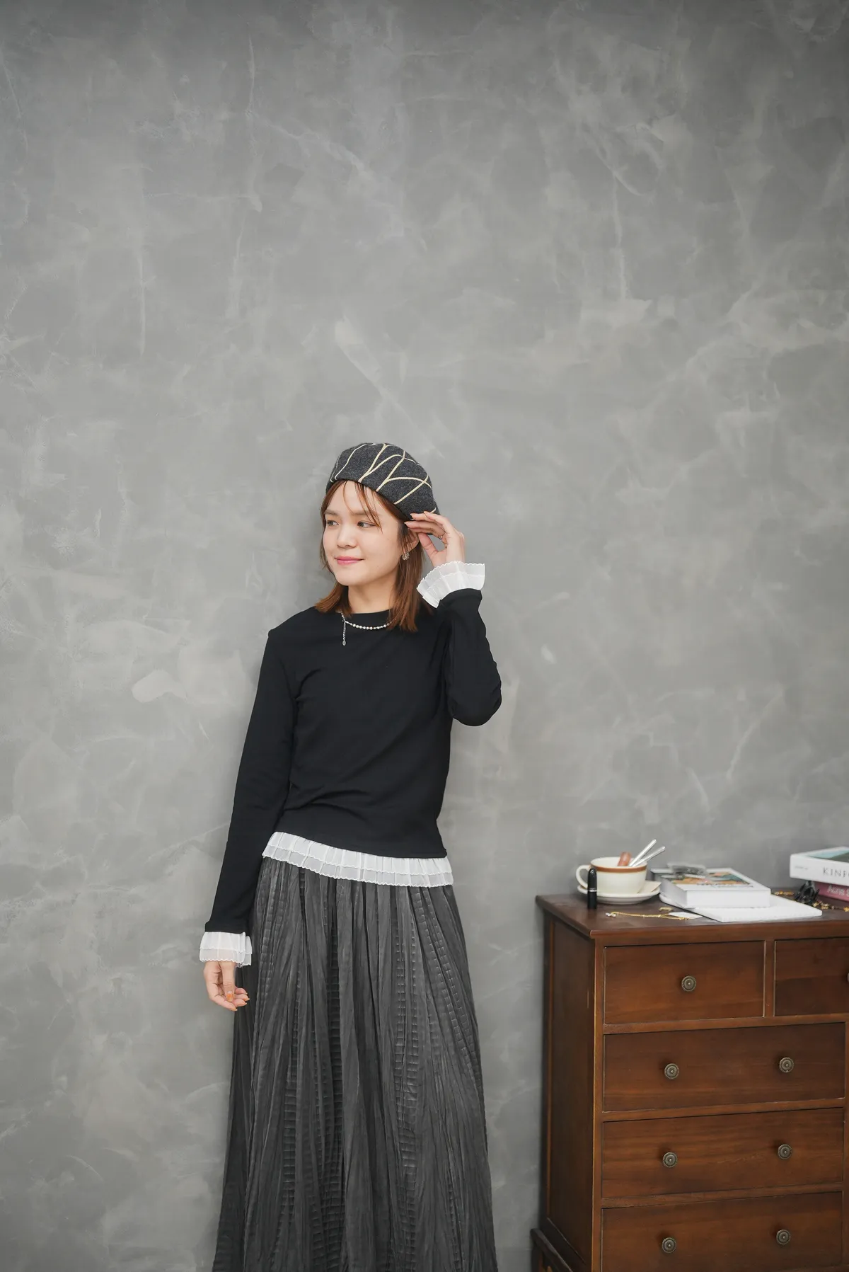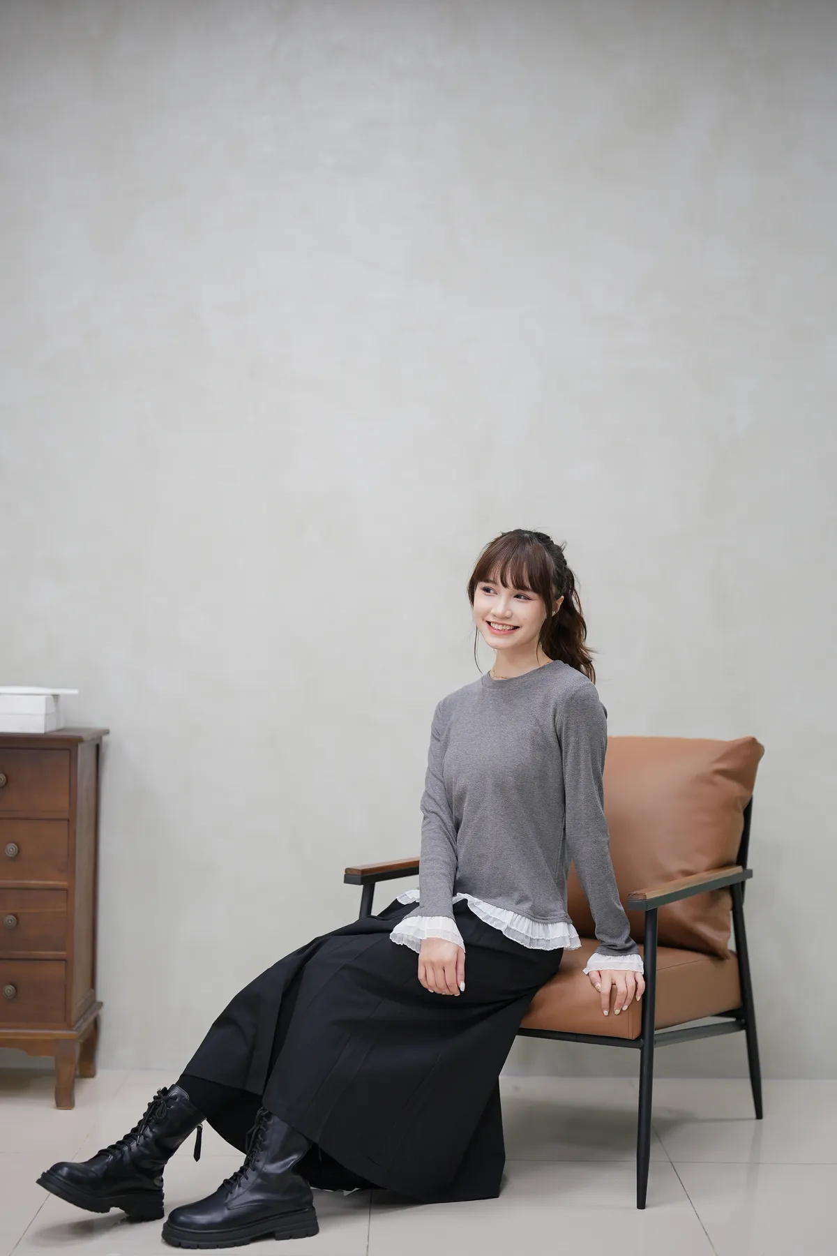 材質沒再隨便 棉雙層荷葉邊圓領上衣