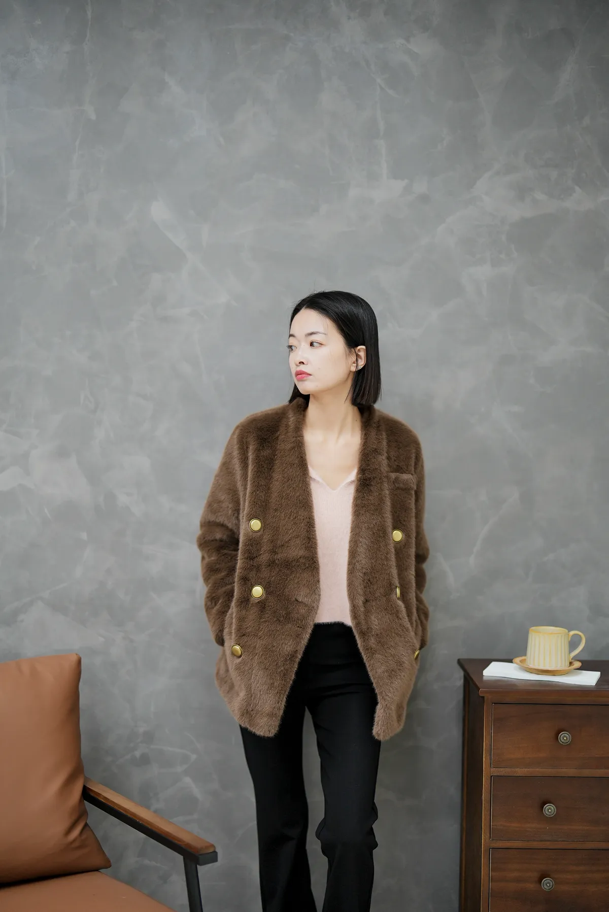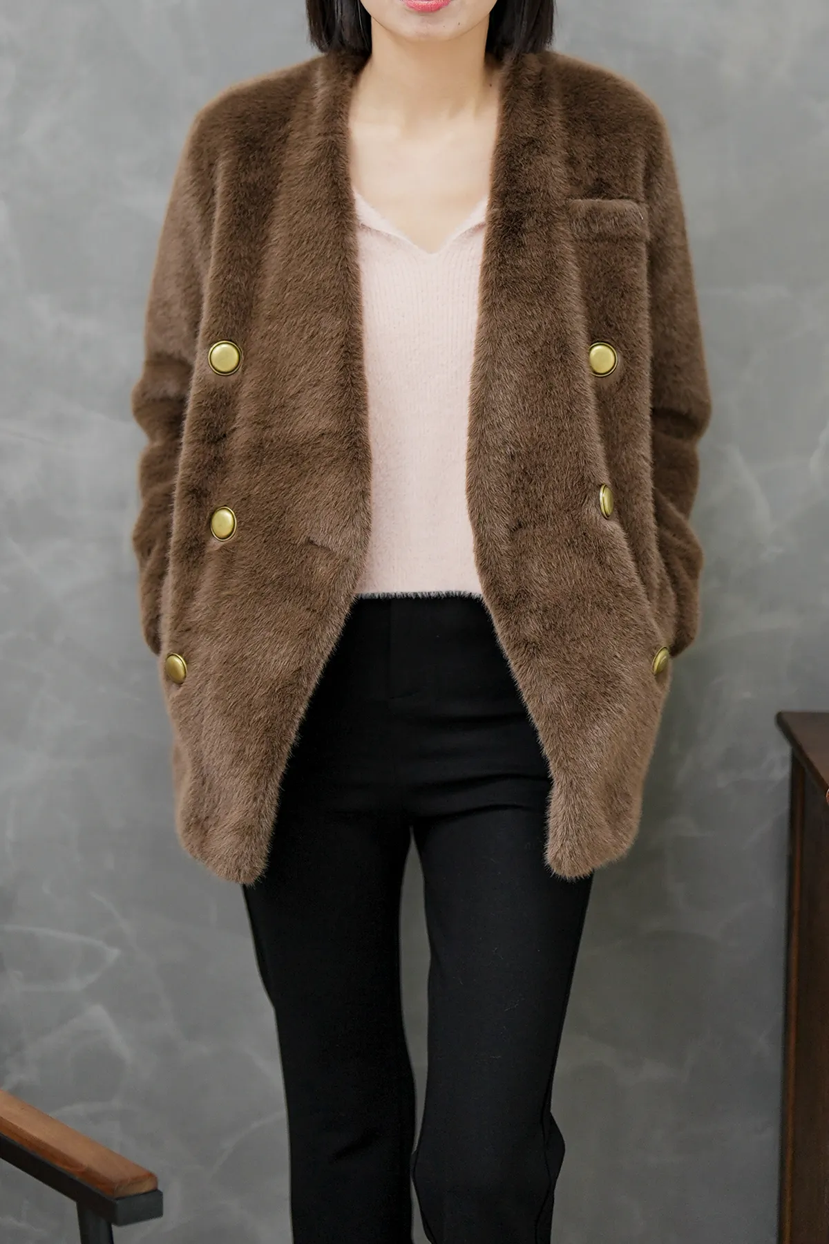金排釦毛毛外套