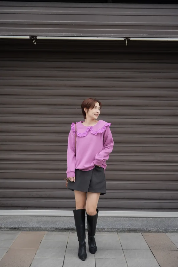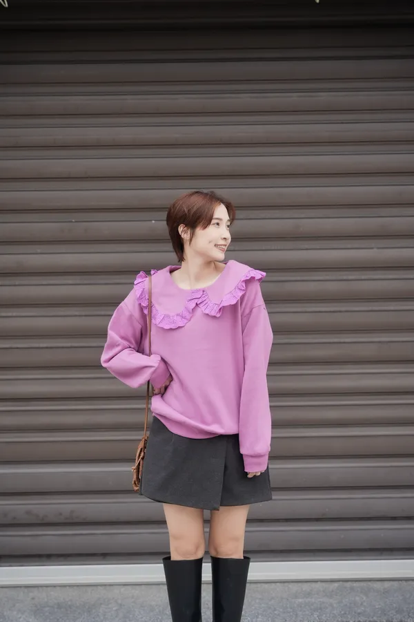 這件超級可愛啊很少見棉質搭配荷葉領混搭的渾然天成薄刷毛整件卻非常輕你摸到材質會愛我XDD灰色是淺淺的灰可愛帶一點俐落很出乎意料的顯白白色甜美可人紫色色溫淺淺的不會過度飽和是好看的色系 📌 穿搭介紹請直接點選連結看直播唷 ▾ 🔗Facebook 🔗Facebook .⚠️ 注意事項請確認好尺寸、款式、顏色再下單若有疑慮都歡迎到粉絲專頁私訊我們我們會幫您建議適合的商品尺寸