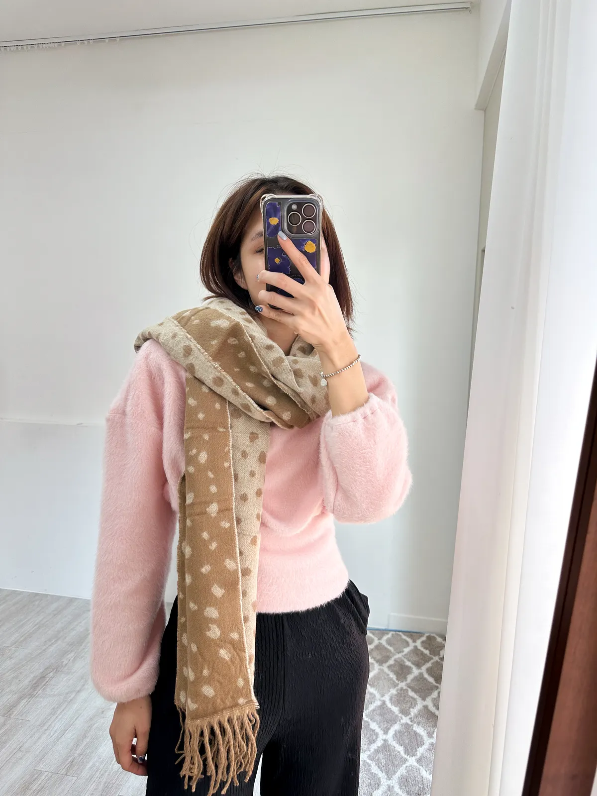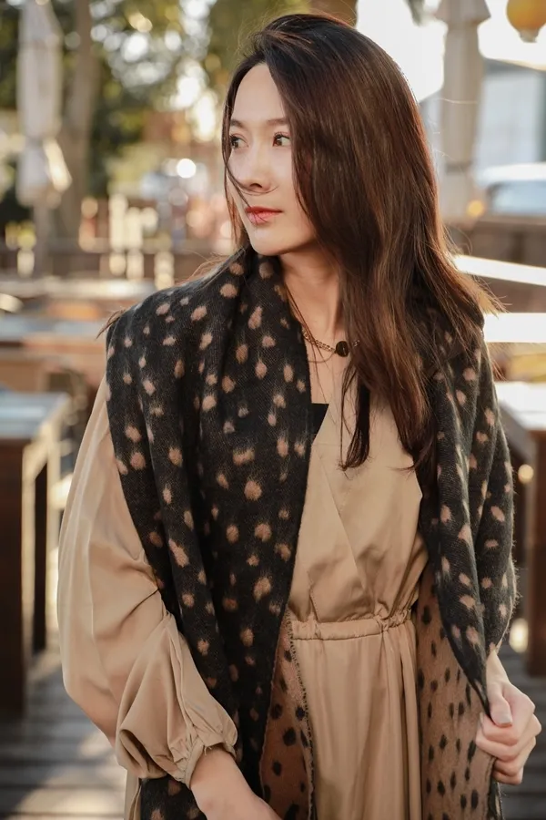 柔和色調的豹紋圍巾