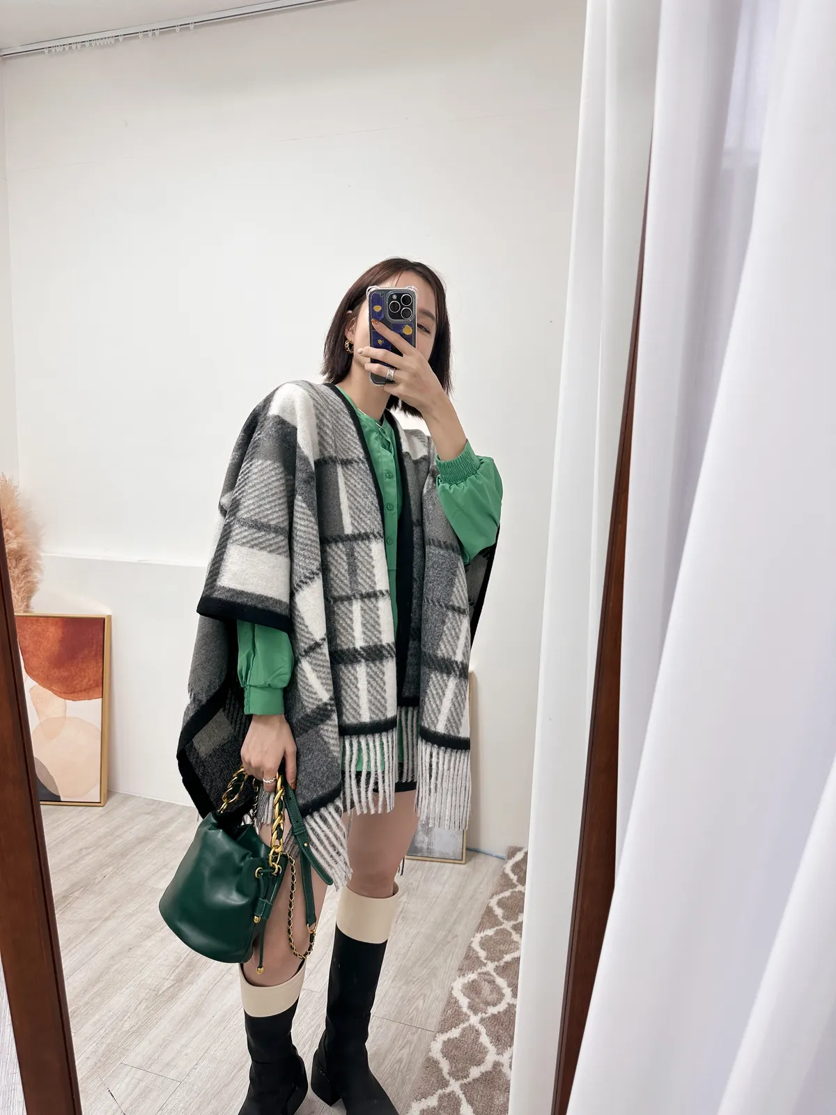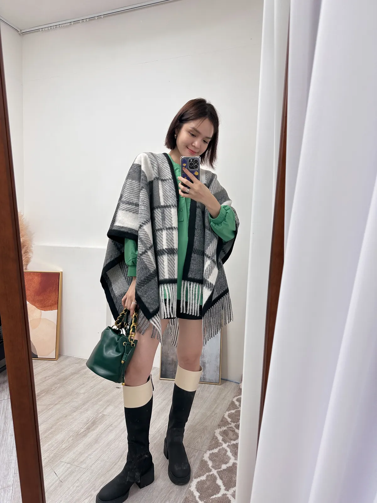 這不是單純的披肩她設計成外套的版型愛不釋手呀可以直接單外套穿本身毛呢手感扎實但軟而且輕再冷一點也可以搭在外套裡面或當圍巾使用聽到價錢時跟本cp值太高 ⚠️ 注意事項請確認好尺寸、款式、顏色再下單若有疑慮都歡迎到粉絲專頁私訊我們我們會幫您建議適合的商品尺寸