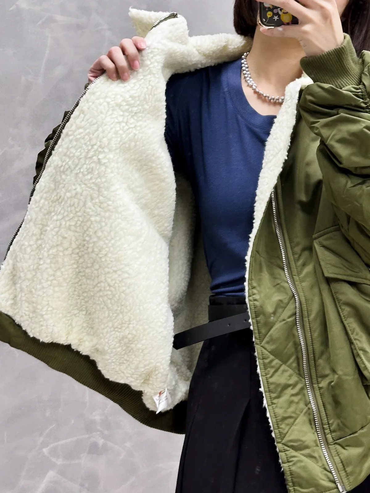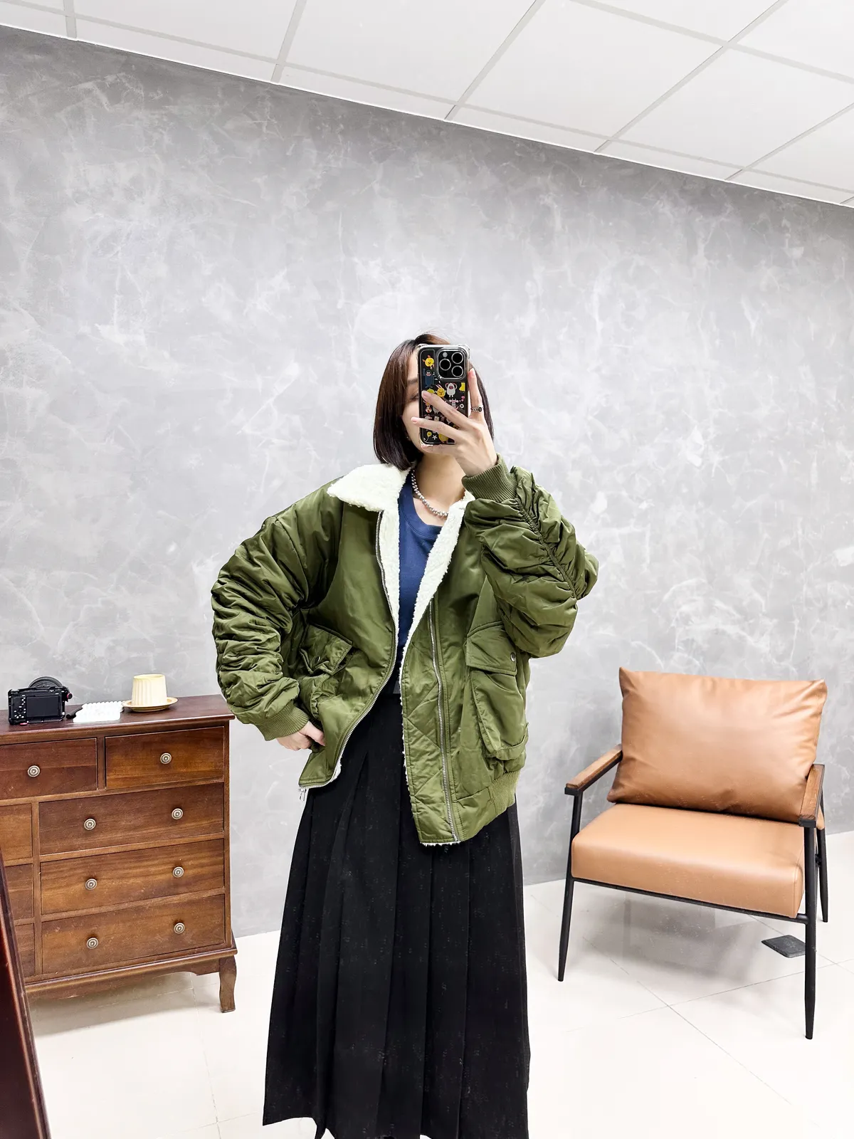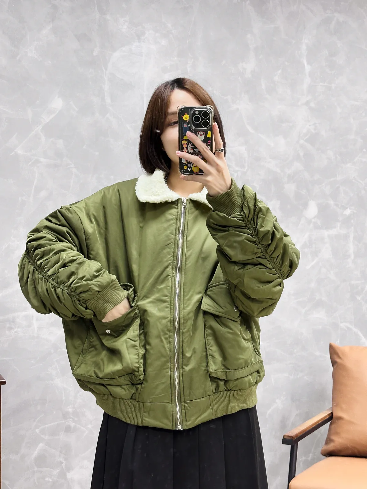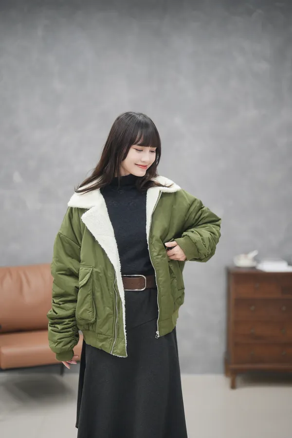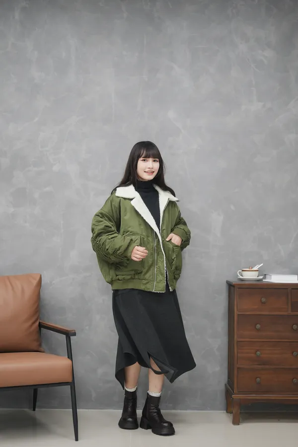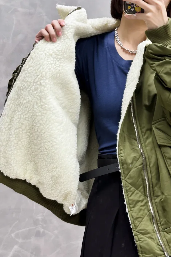 毛毛縮袖飛行外套