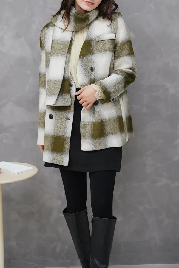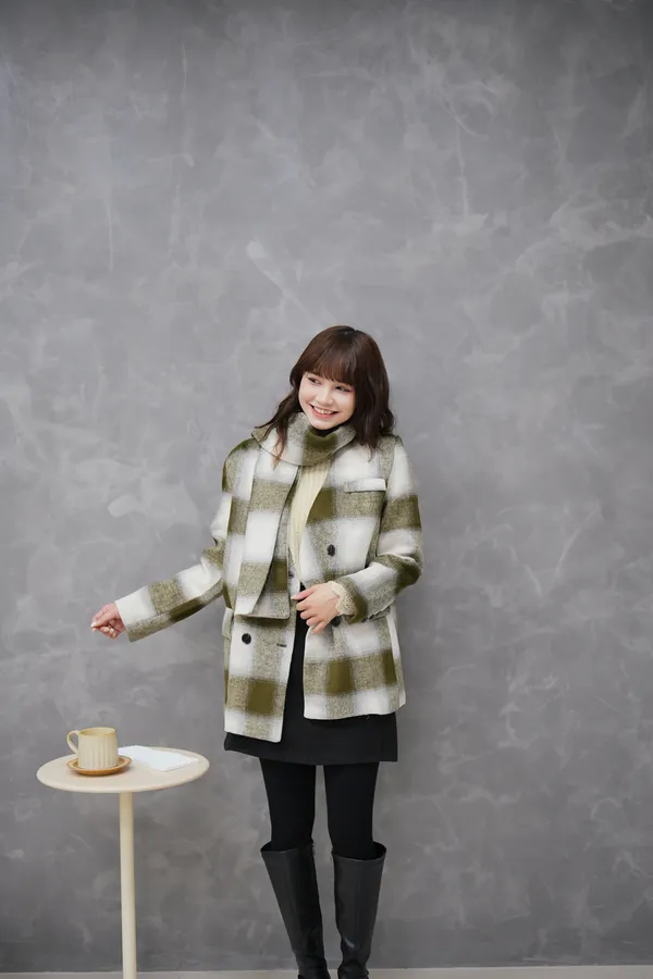 這個超可愛竟然是有附圍巾喜歡無領的設計多了一點俐落感不會很重喔 ⚠️ 注意事項請確認好尺寸、款式、顏色再下單若有疑慮都歡迎到粉絲專頁私訊我們我們會幫您建議適合的商品尺寸.(同色圍巾 屬於附贈單品故不列入瑕疵範圍)