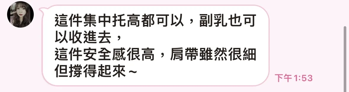 上面是小幫手E罩杯實穿感受托高跟包覆都很讚 很久沒有賣小可愛了這件一穿就決定一定要跟你們分享舒適/包覆/托高都有!側邊有加高把副乳包的非常好另外長度也比較長下面那一截是高丹寧數非常的收肉小幫手E罩杯實穿他說拖高跟包覆性很讚 ⚠️ 注意事項請確認好尺寸、款式、顏色再下單若有疑慮都歡迎到粉絲專頁私訊我們我們會幫您建議適合的商品尺寸.貼身衣物與飾品類因衛生考量商品售出一律不接受退換貨(商品瑕疵例外)
