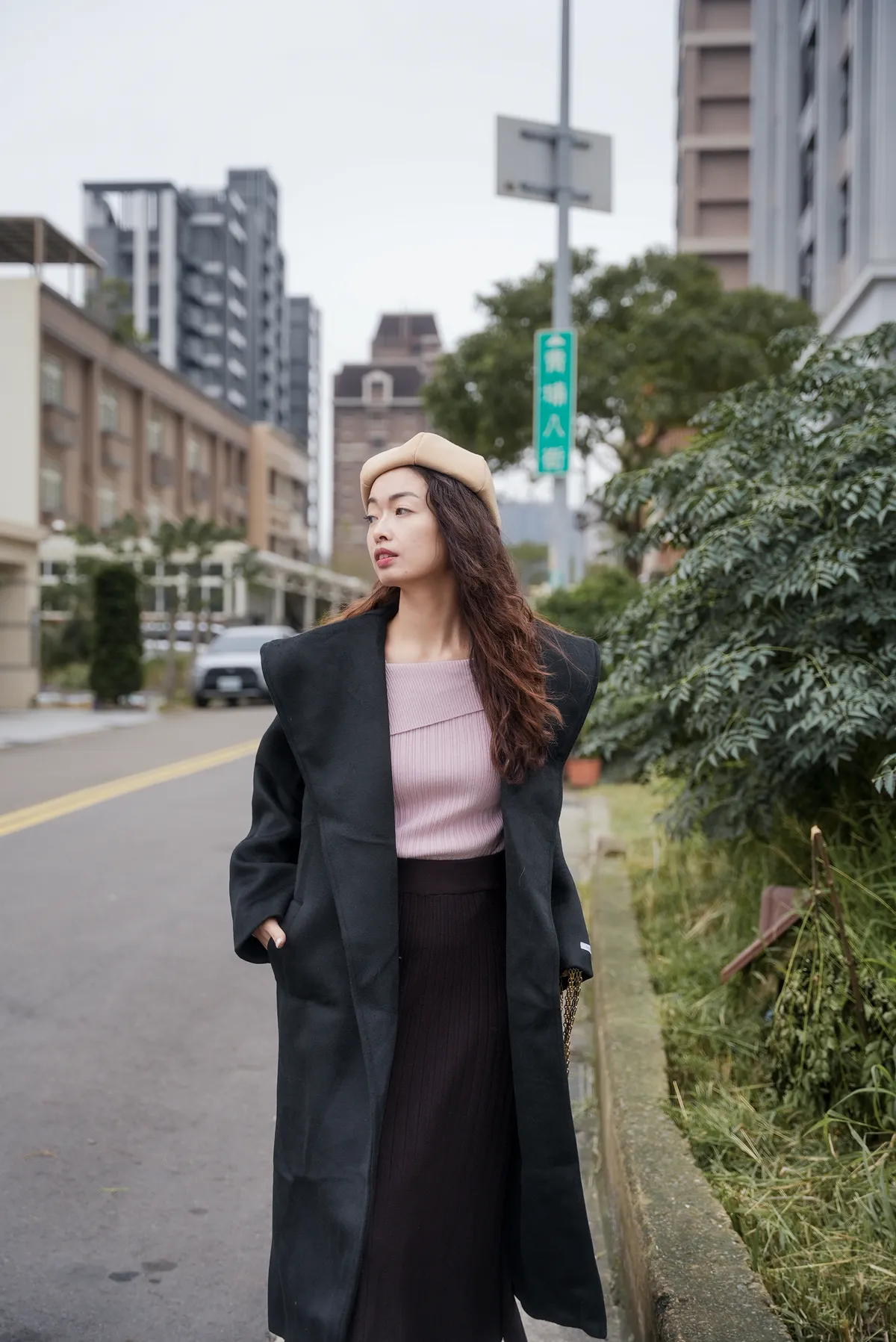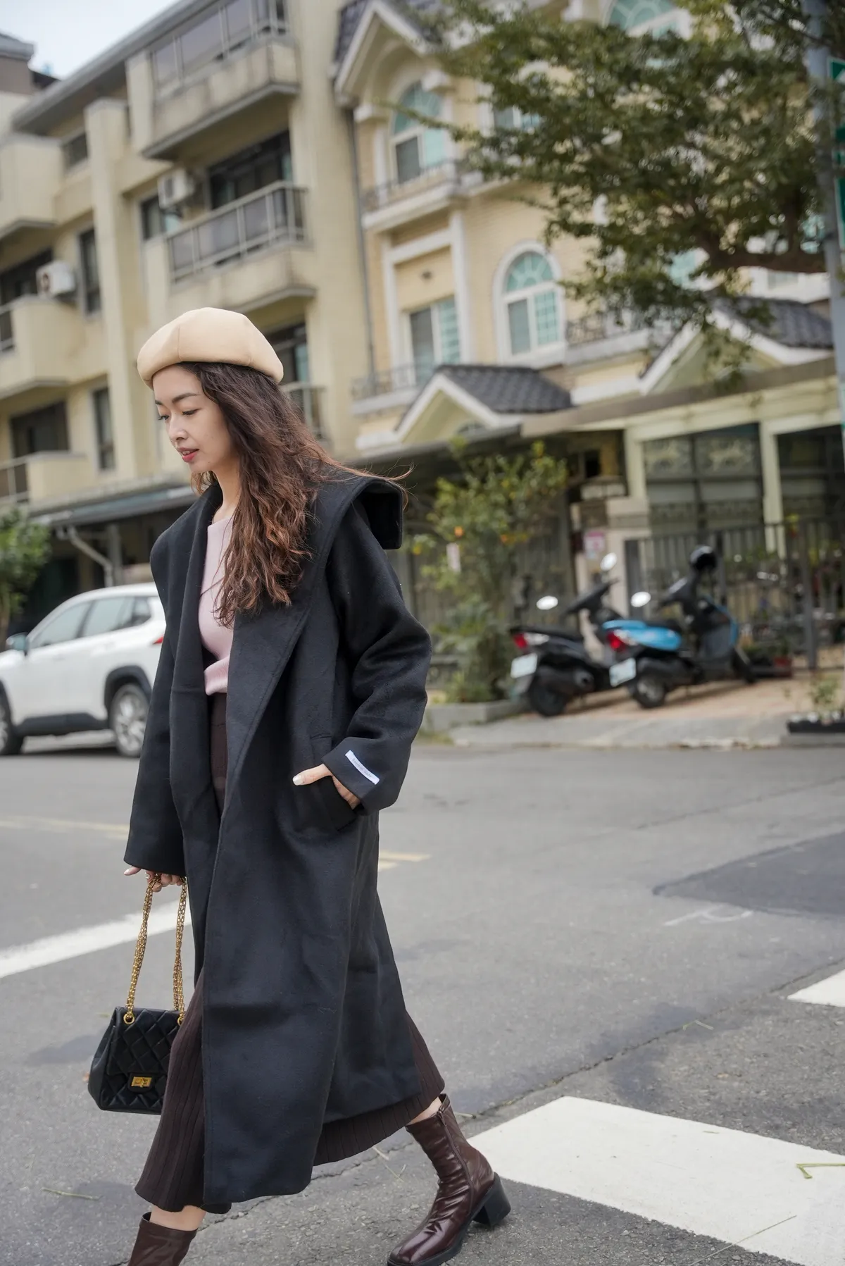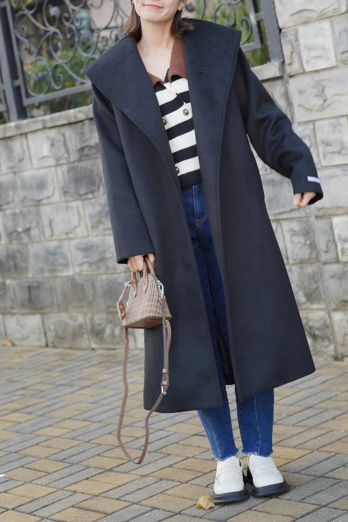高級感 俐落翻領毛呢大衣外套(附綁帶)