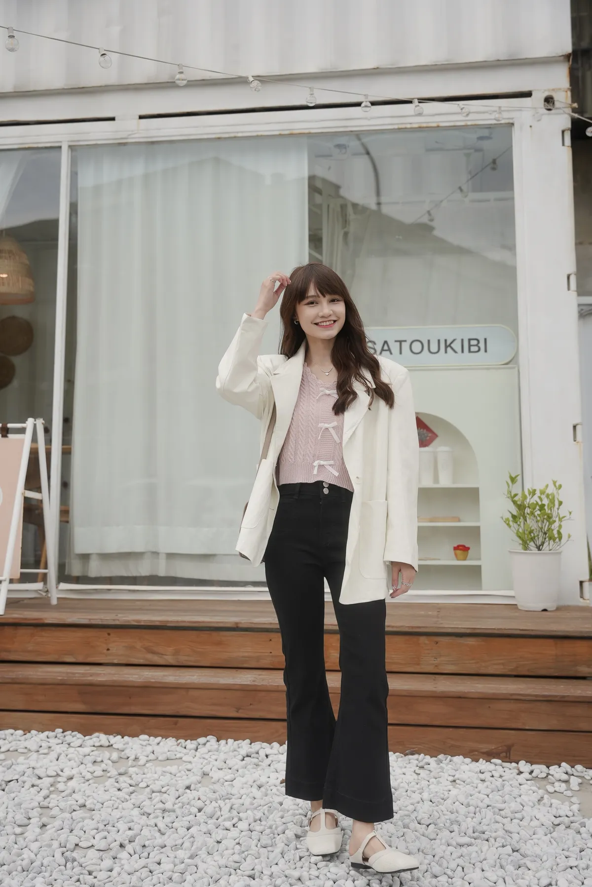 彈力雙釦微喇叭牛仔褲