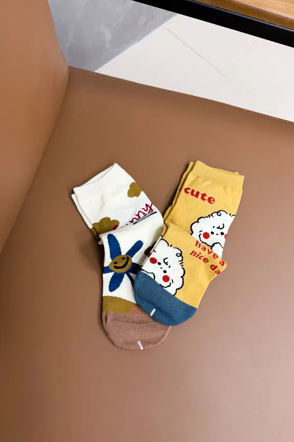 一件你就有好心情 超級可愛圖騰小長襪(兩雙一組)