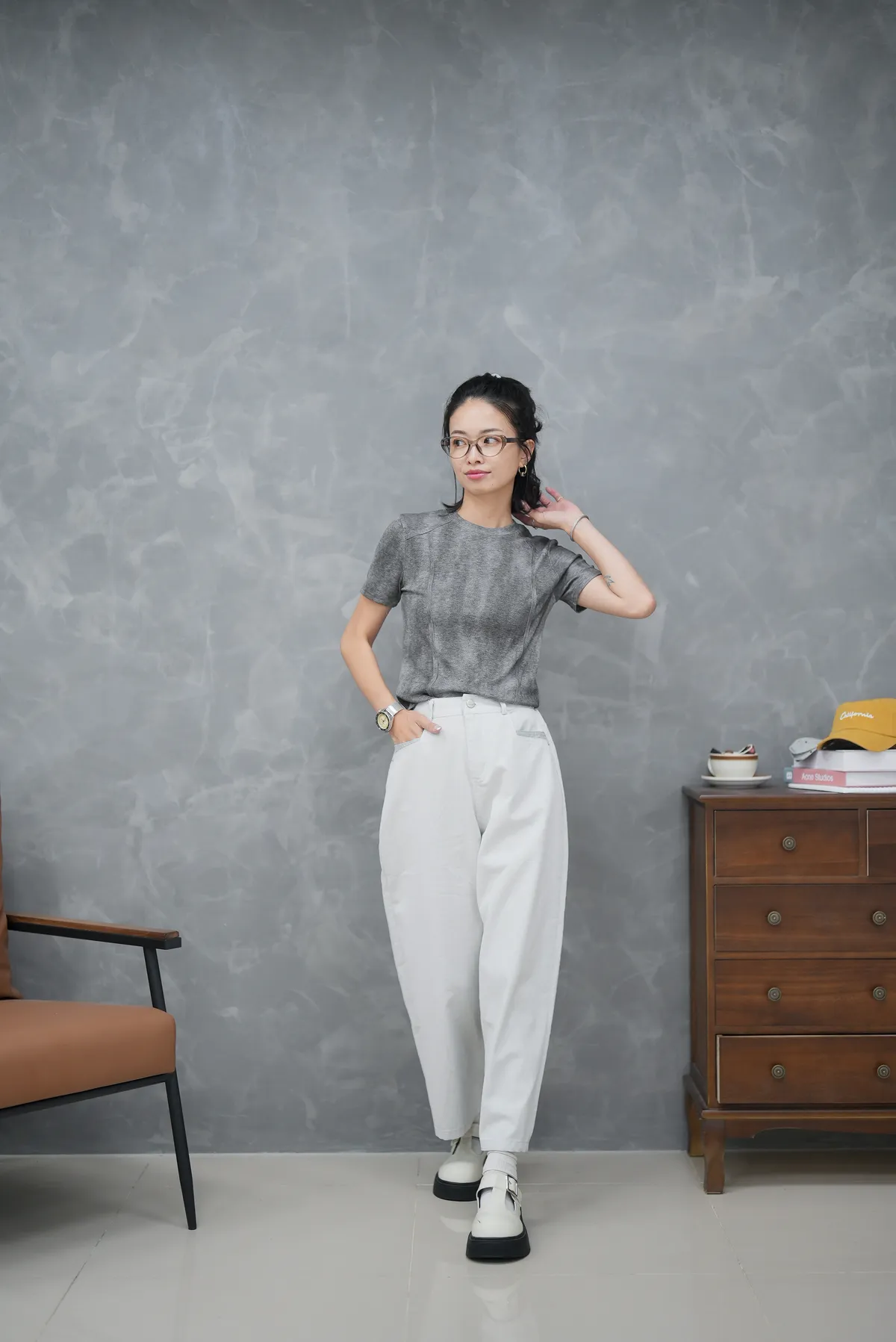 口袋跳色卡其褲