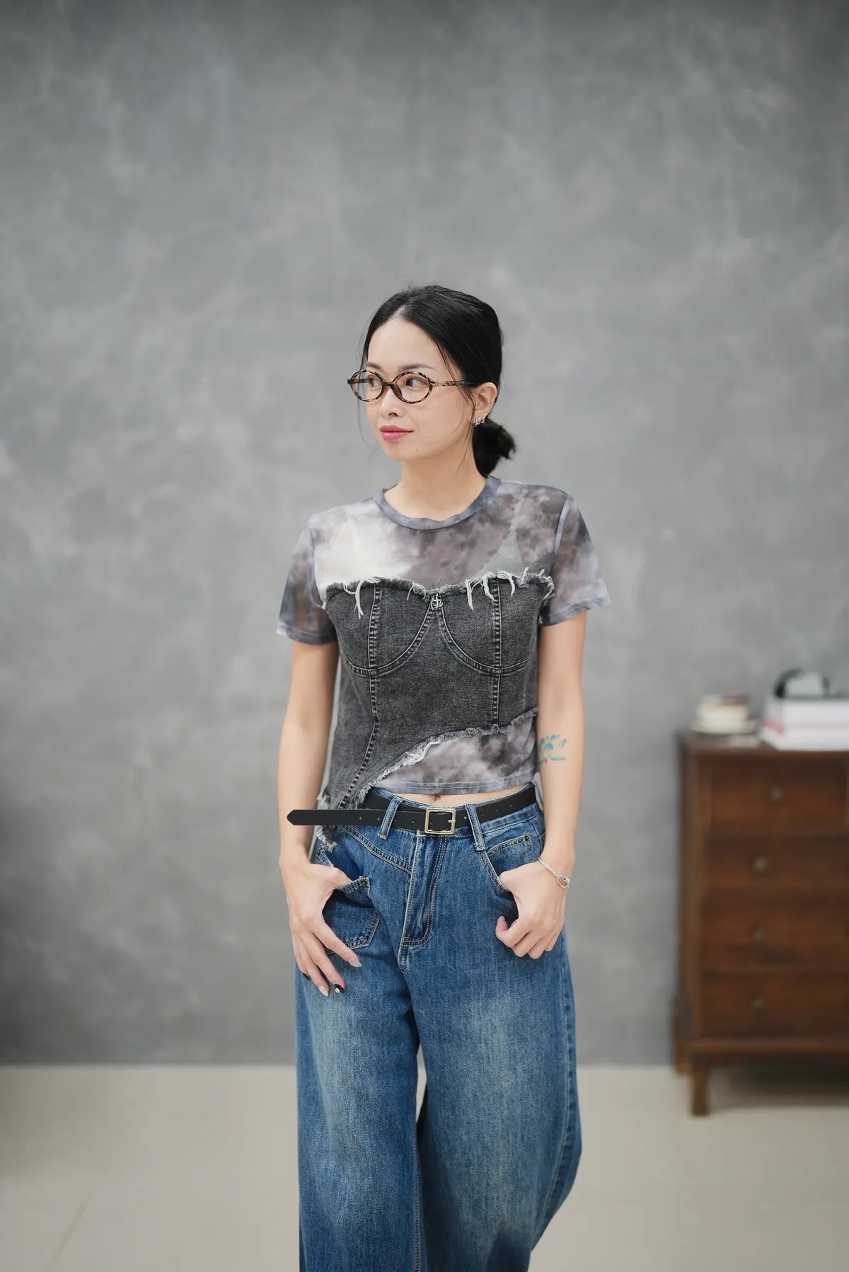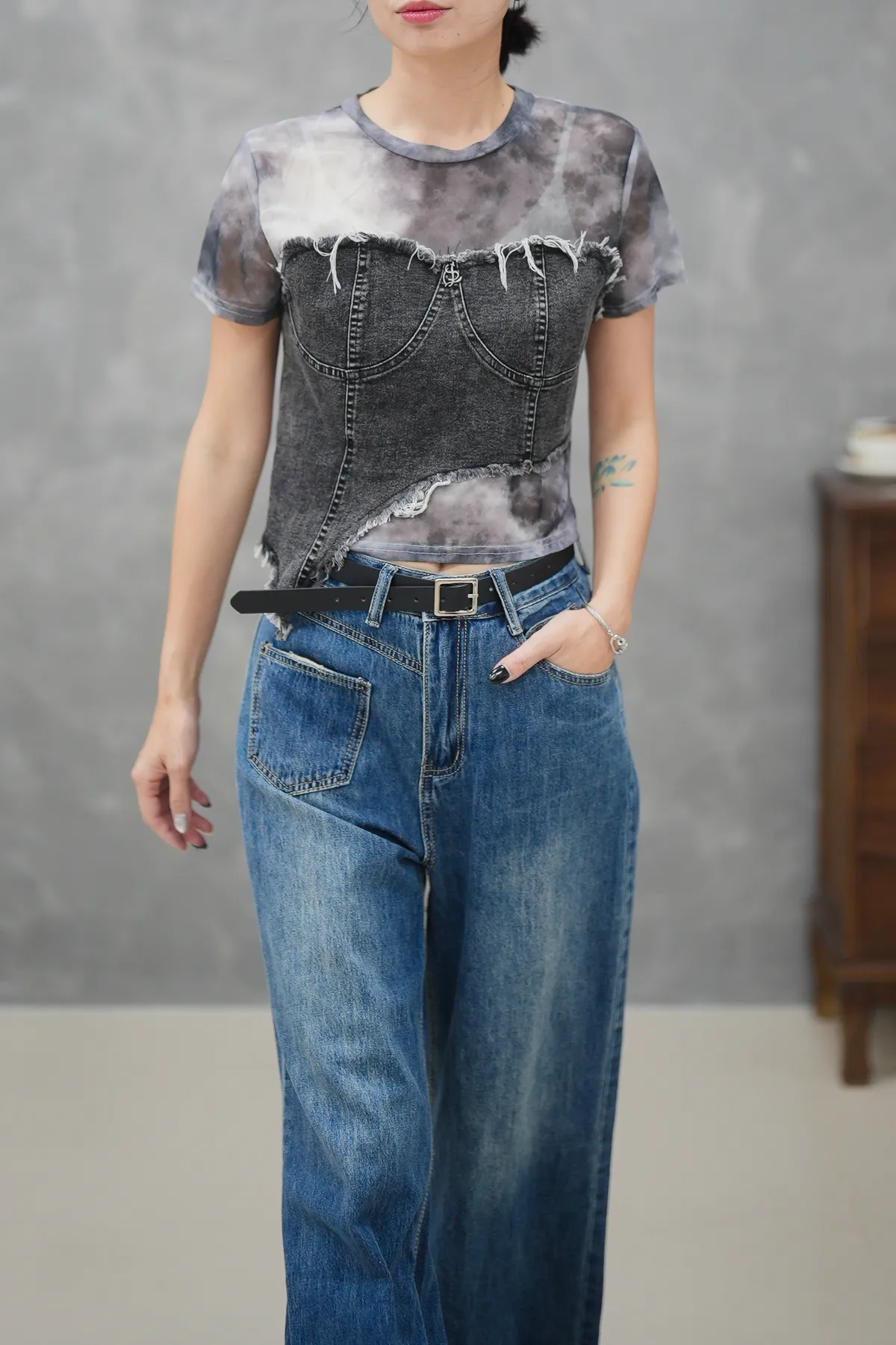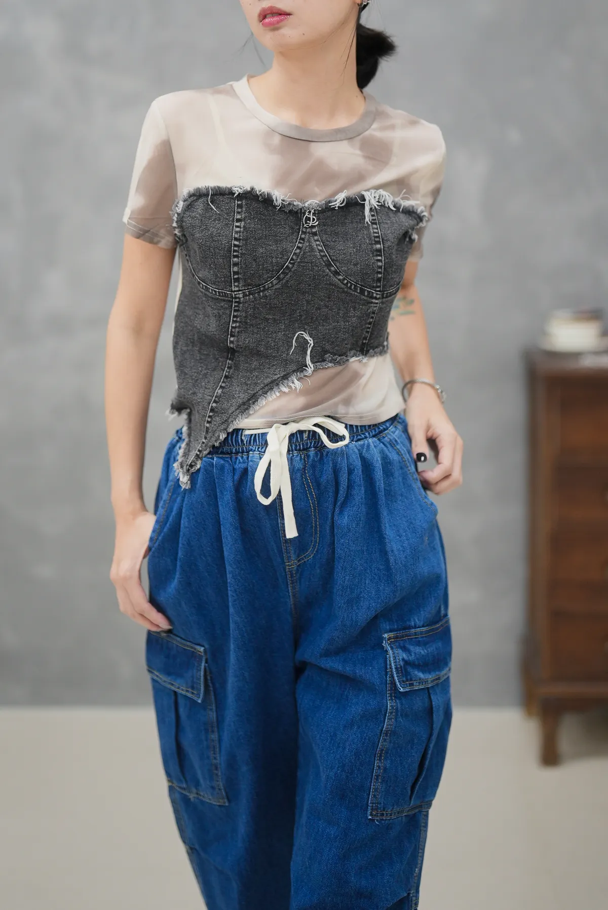 轉換不同風格 簡單的辣一波拼接上衣