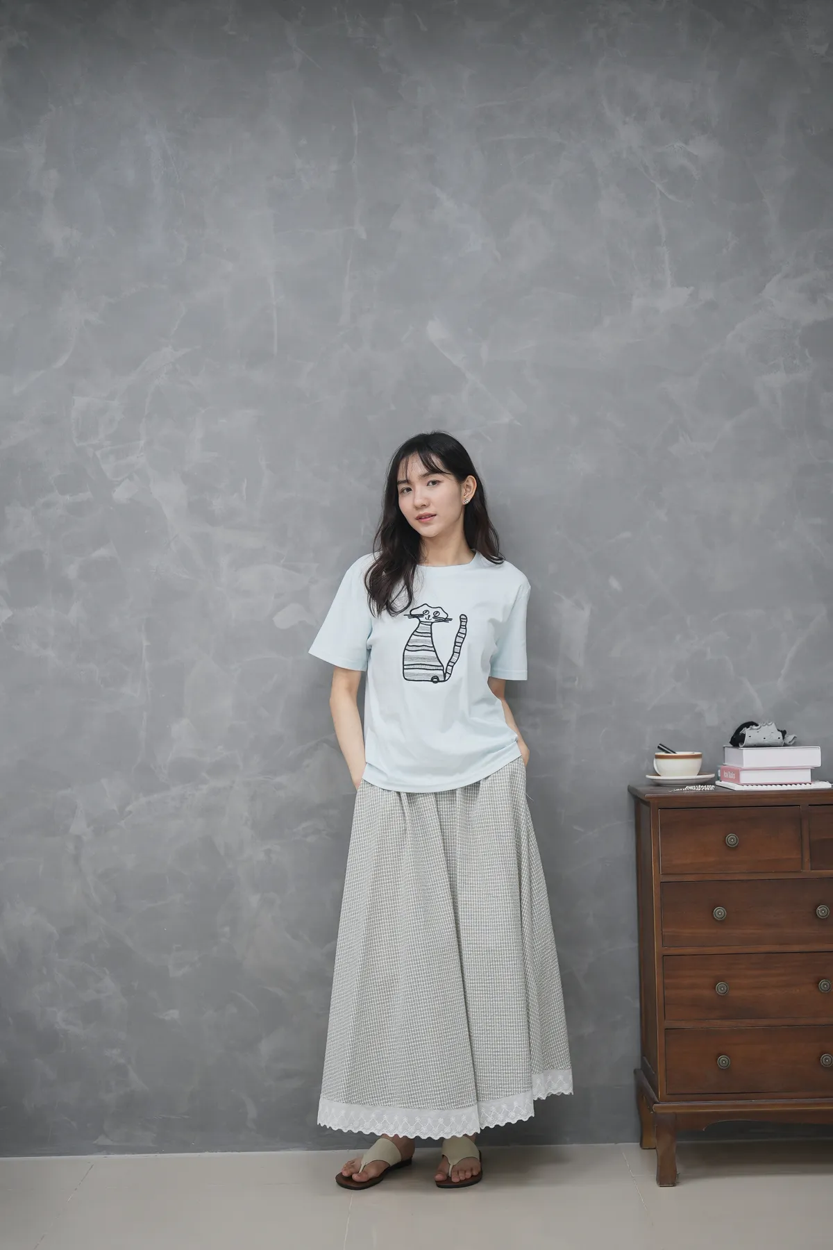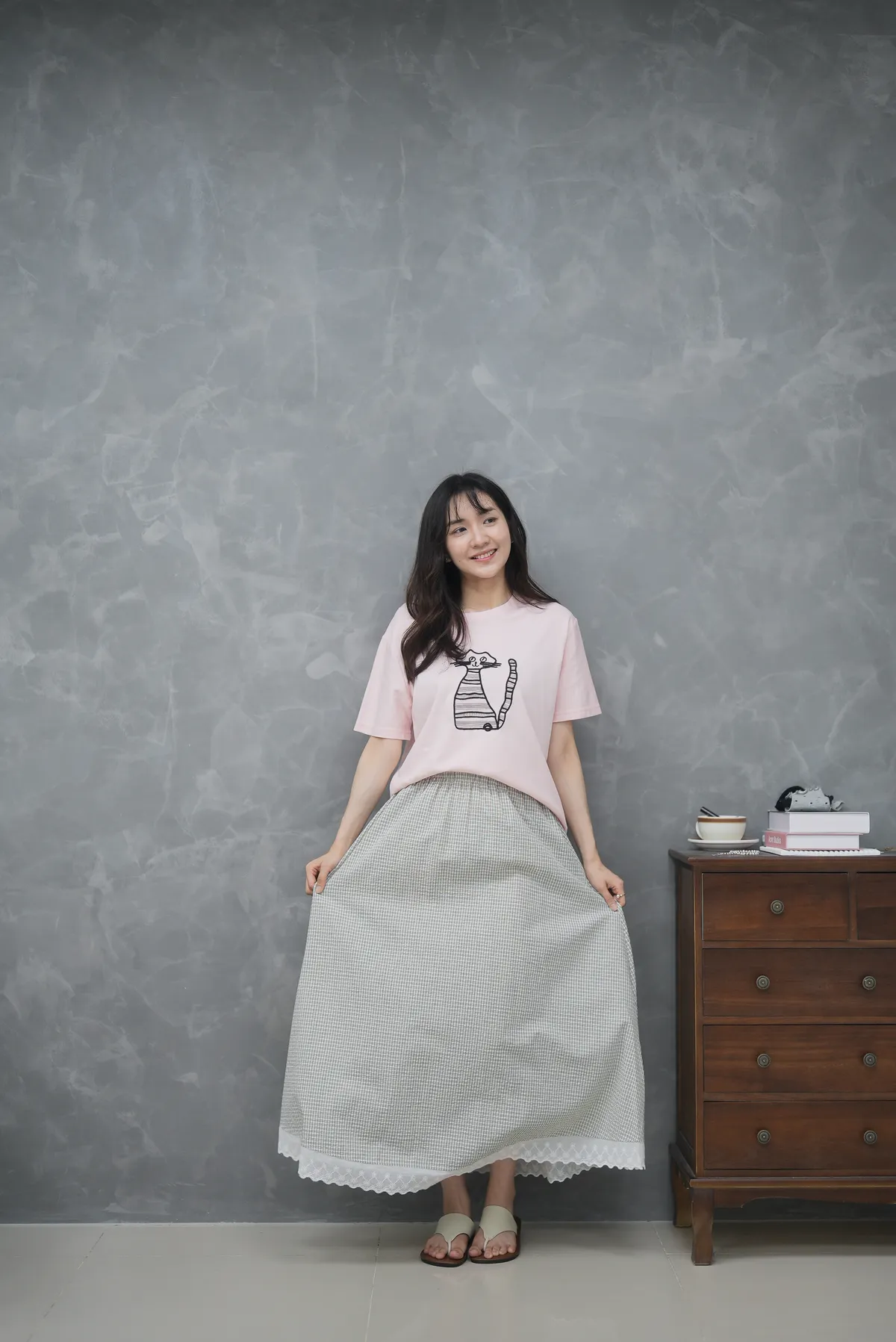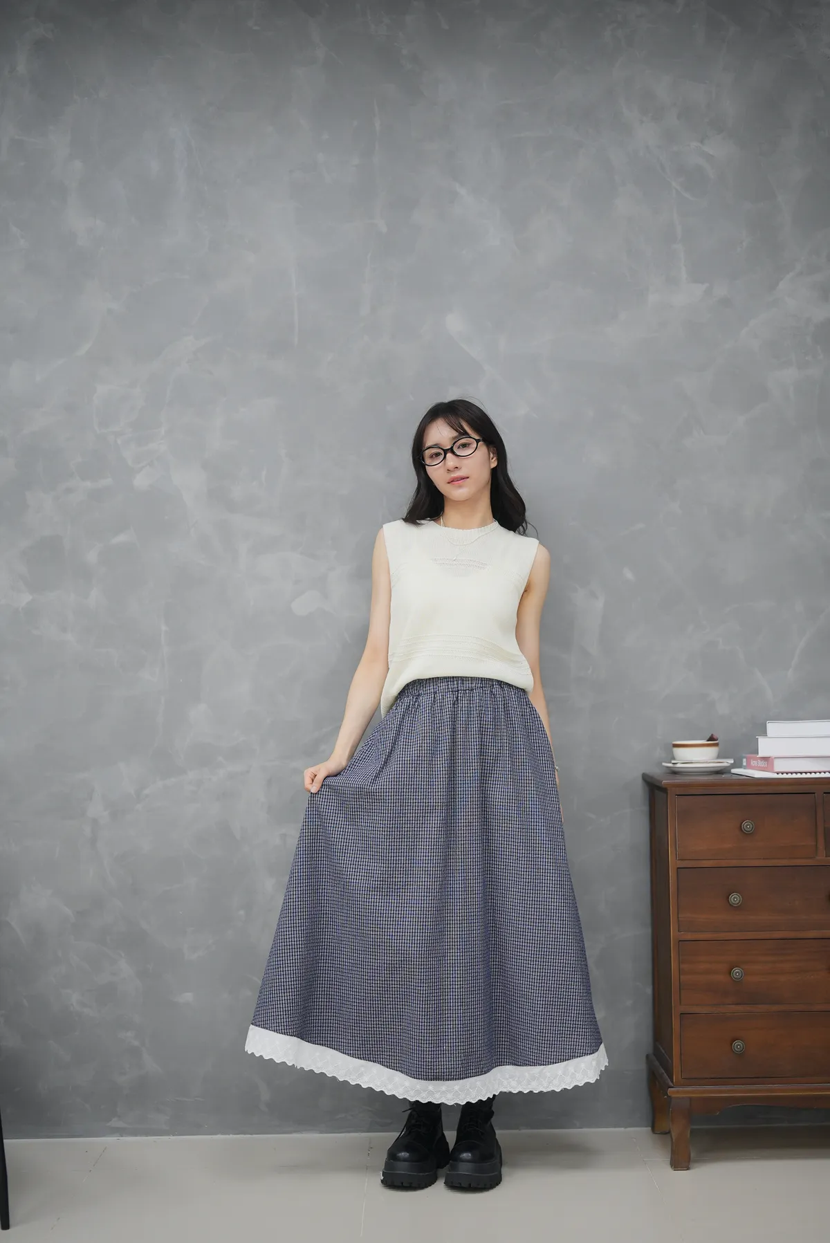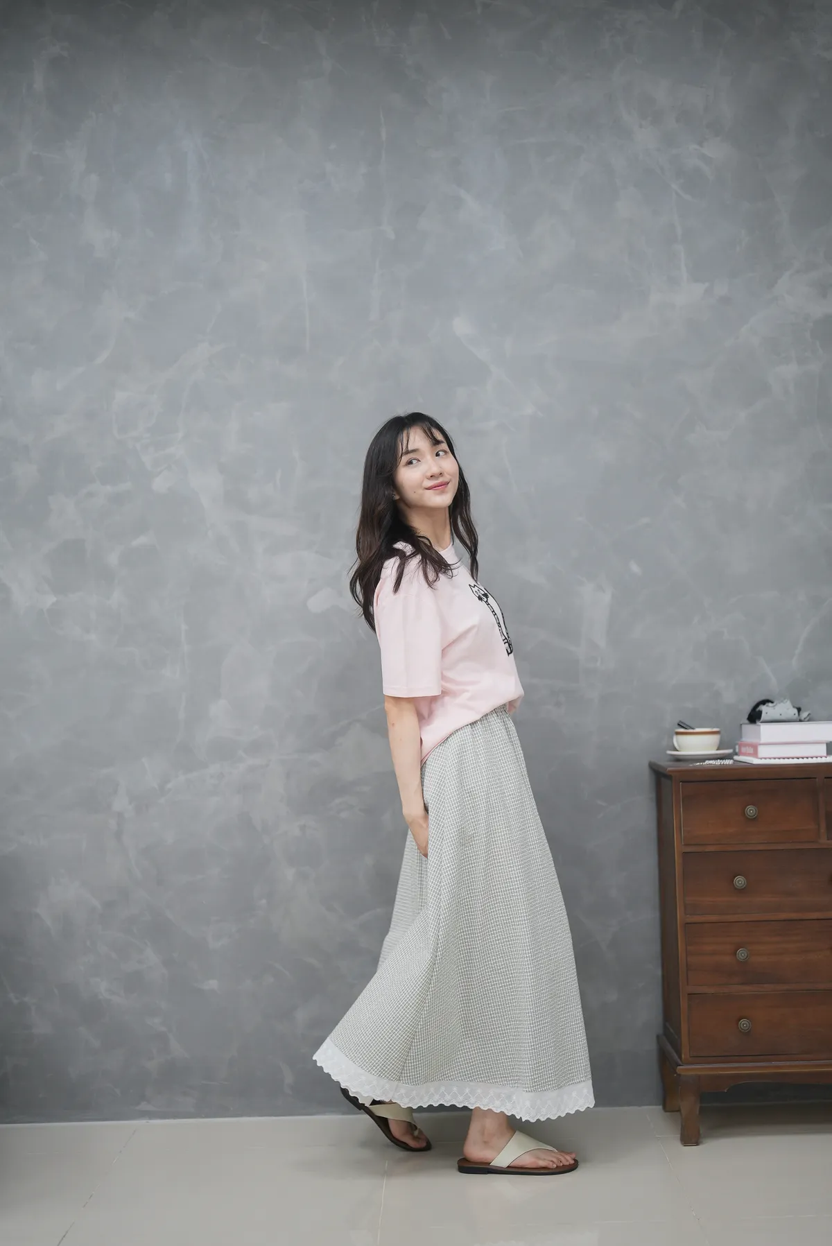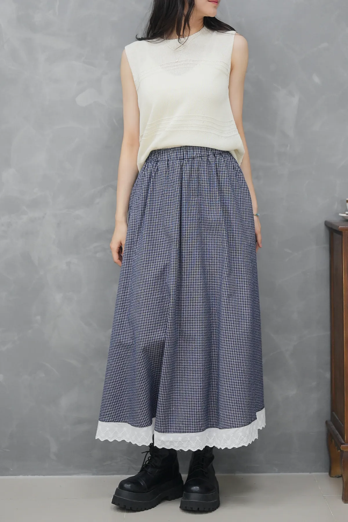 是棉麻材質去混搭蕾絲 很清爽的小格子裙
