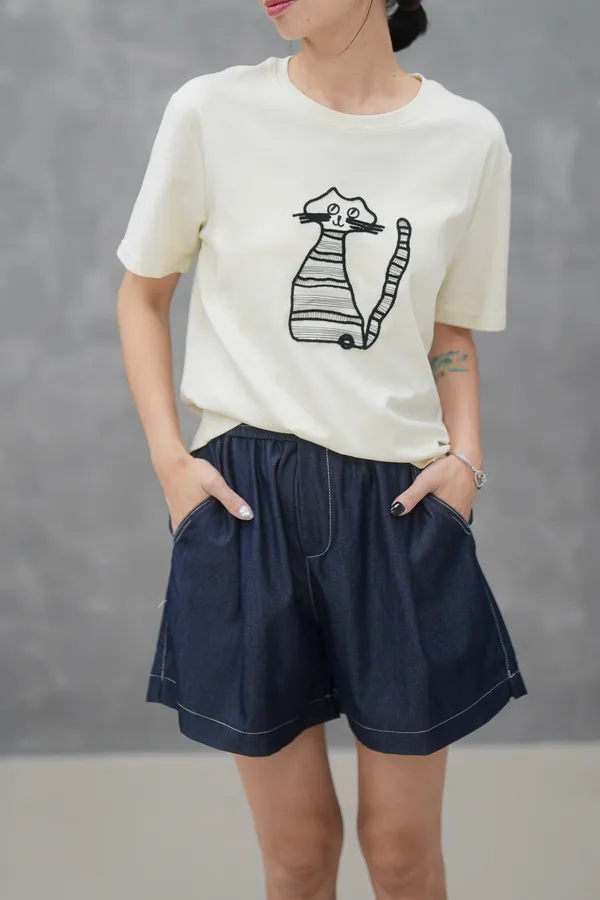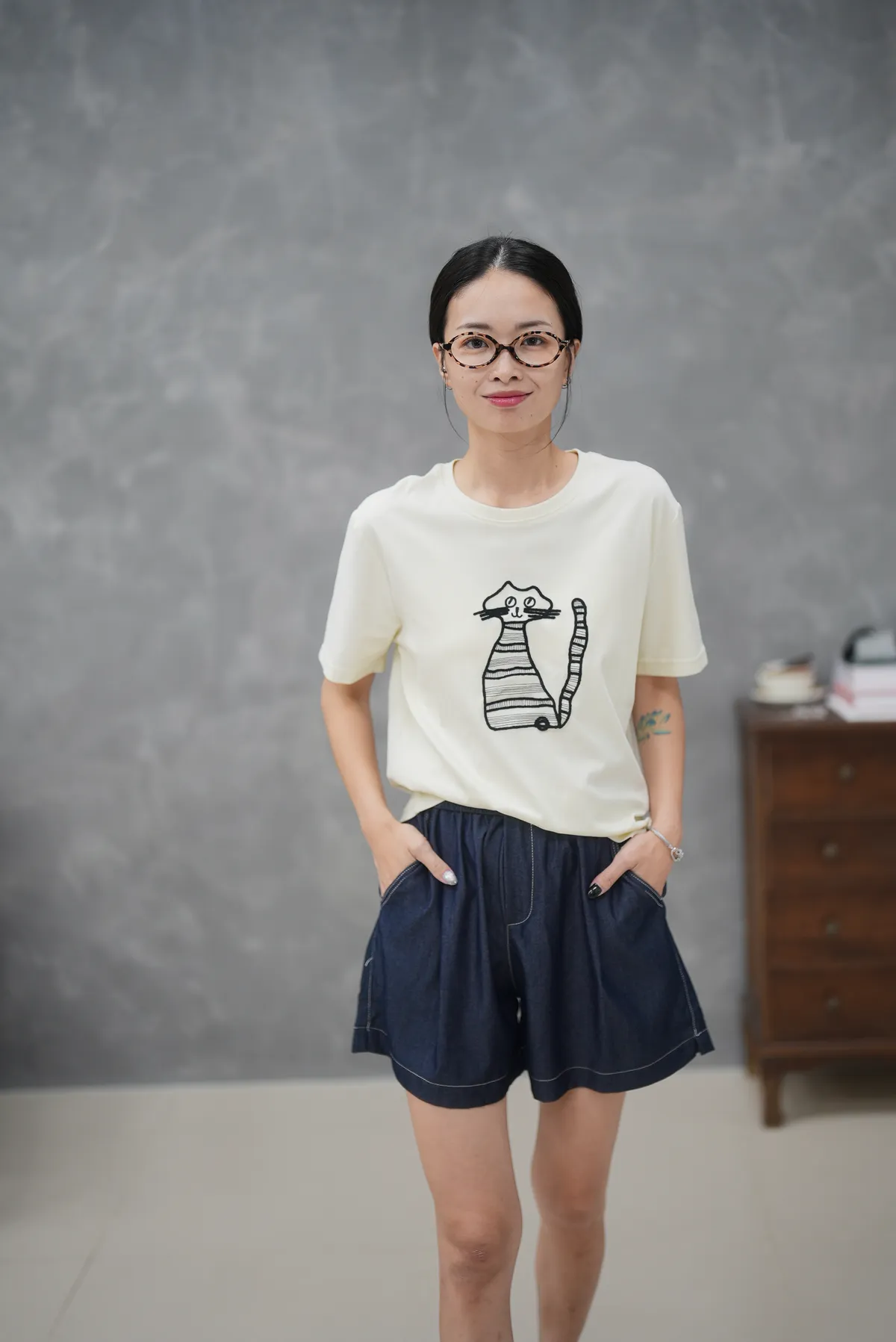 超級療癒的 刺繡棉繩貓咪t(售完沒有喔)