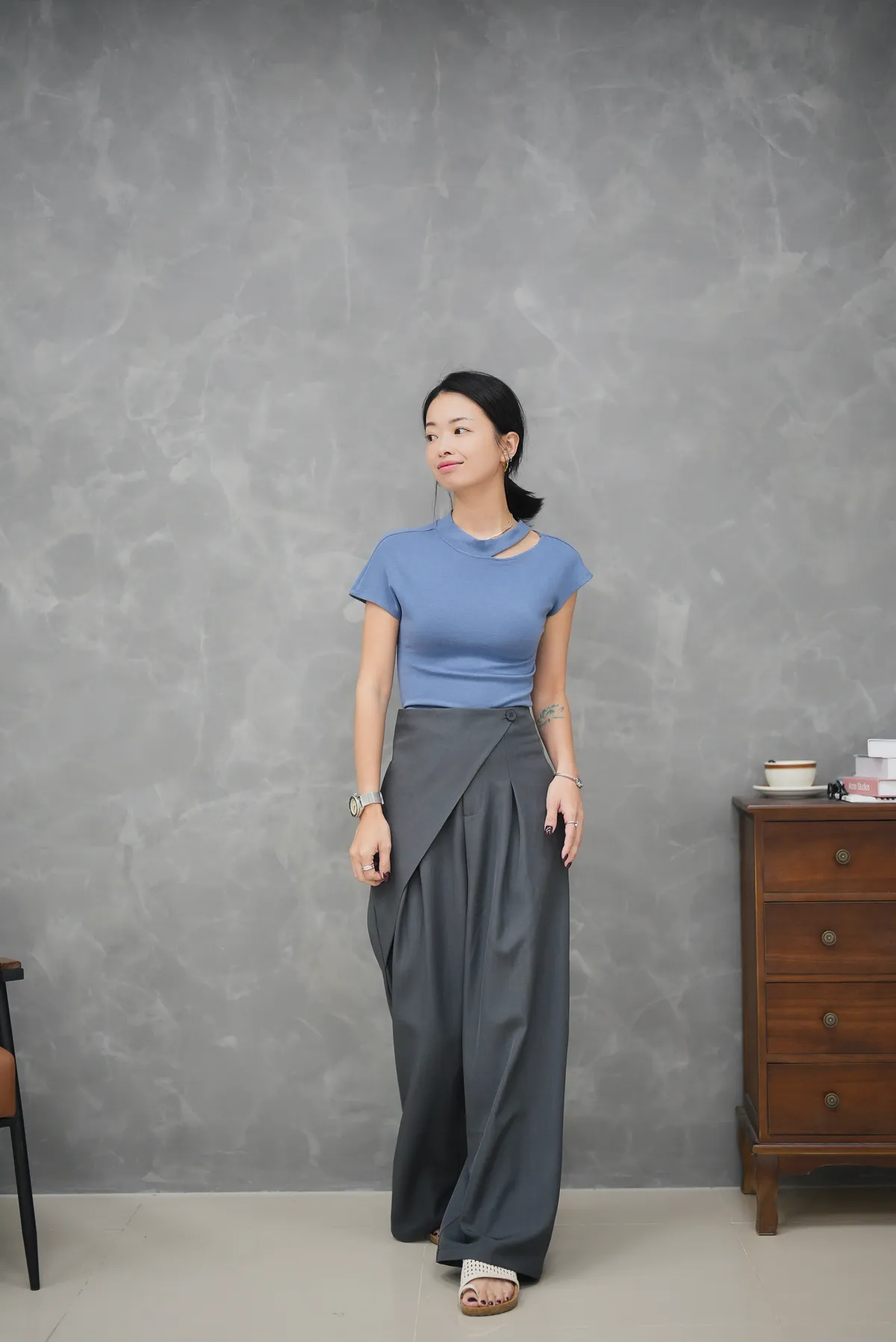 軟QQ的棉質 露出鎖骨真的美一波小綁帶上衣