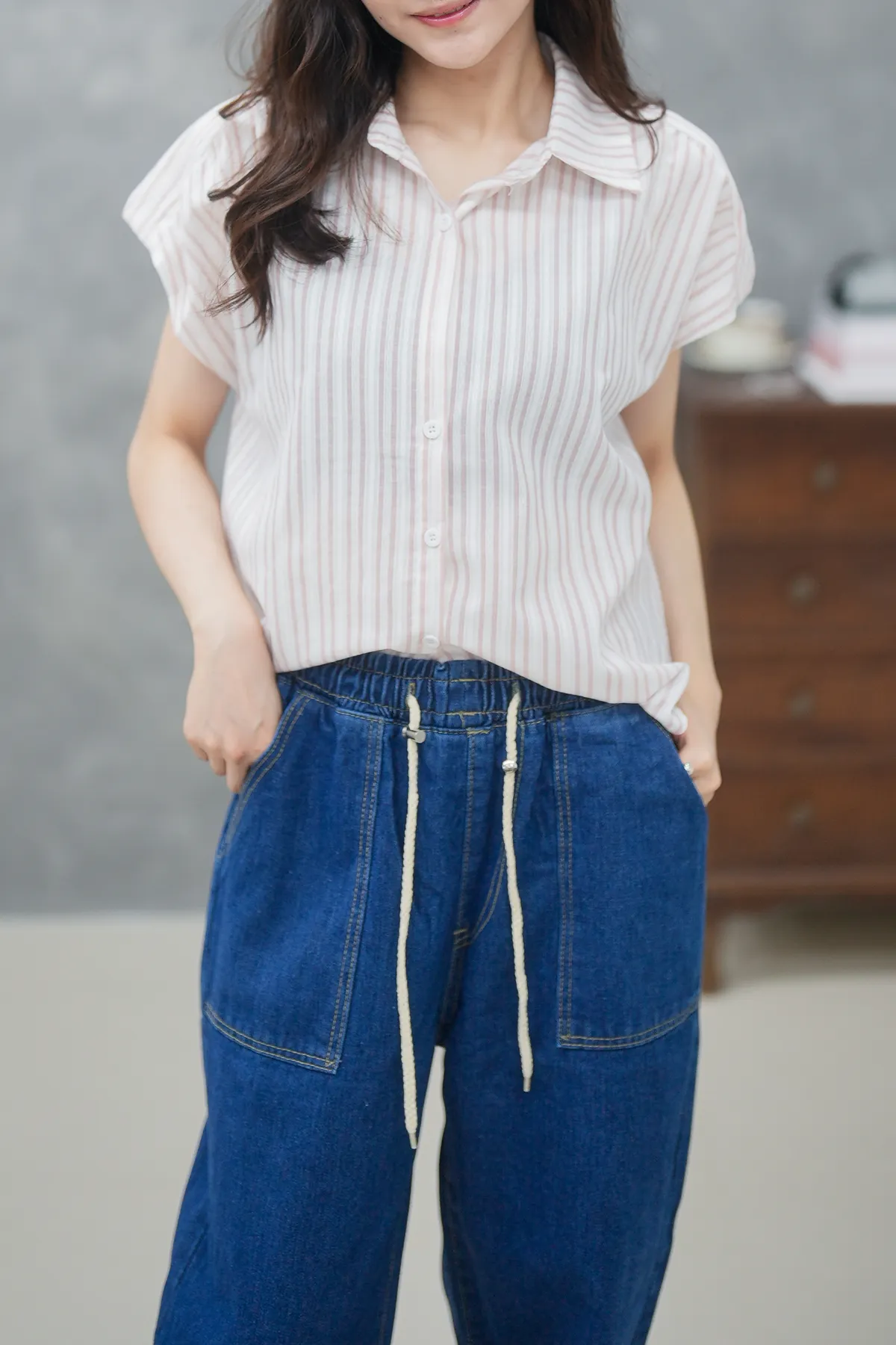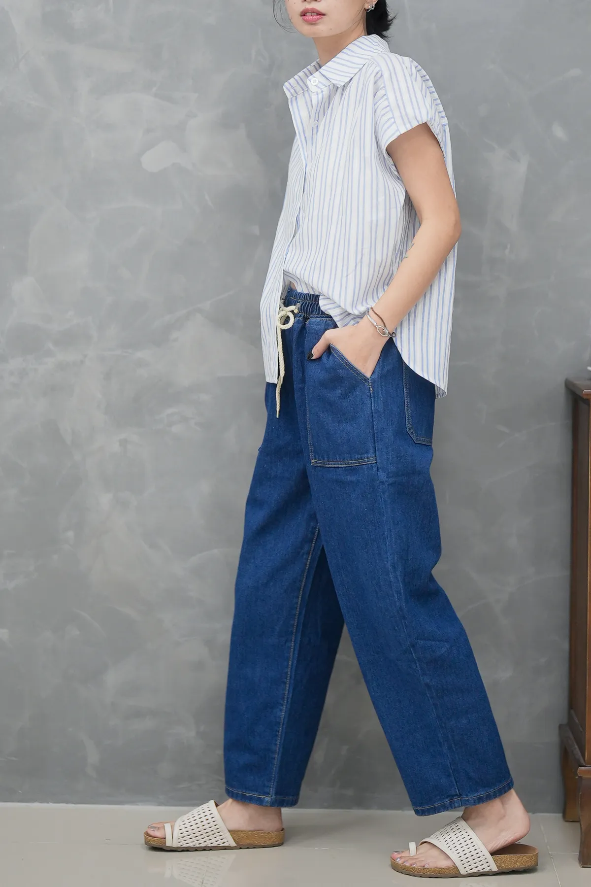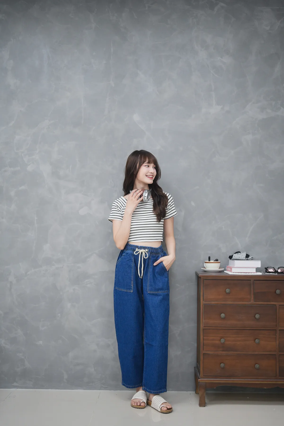 隨性又好穿 腰圍全鬆緊牛仔直筒褲