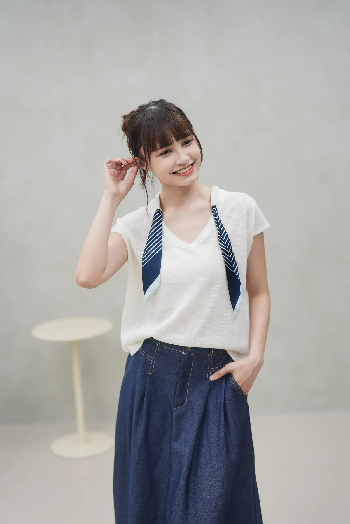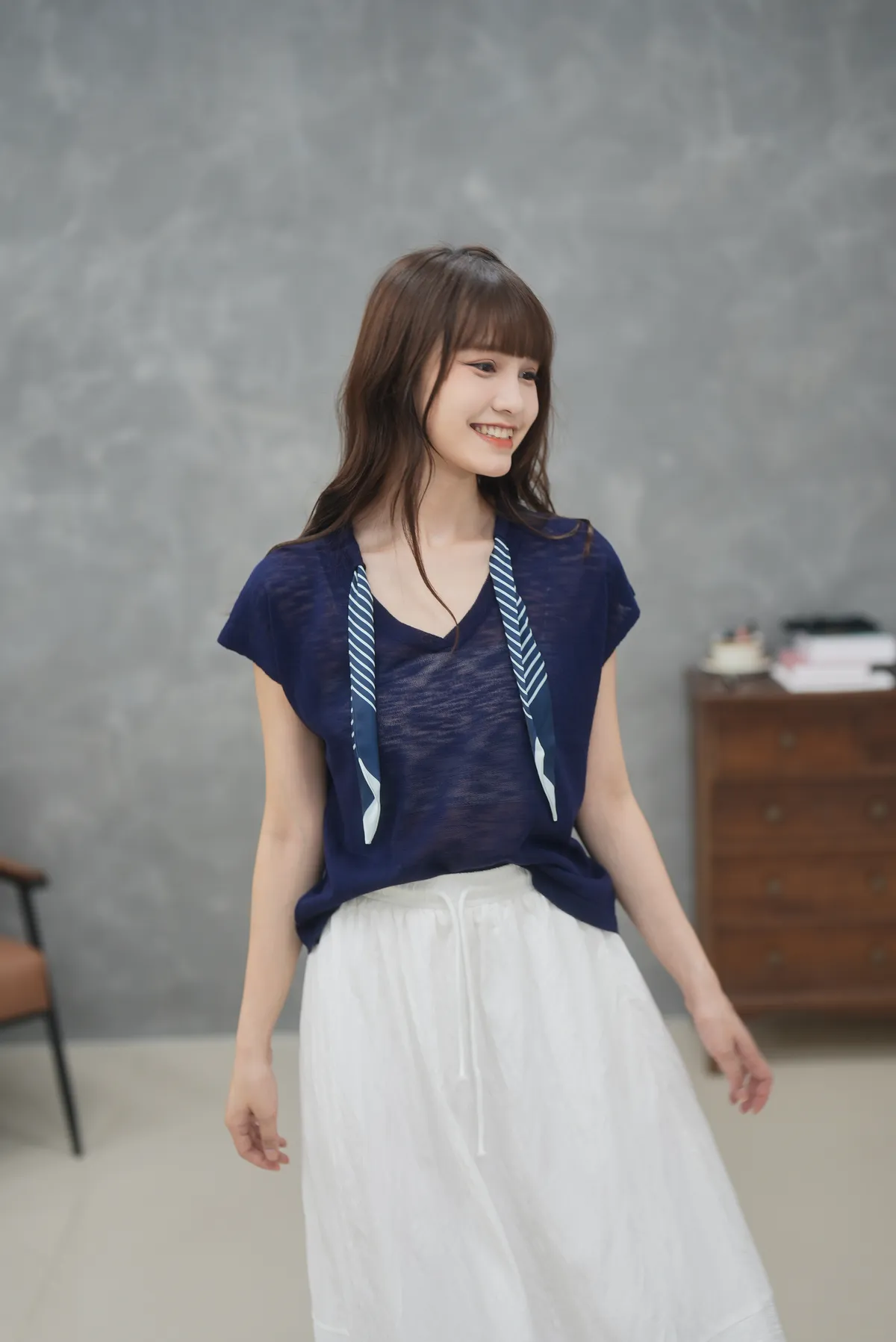 百變女郎是妳 絲巾可拆透氣針織上衣