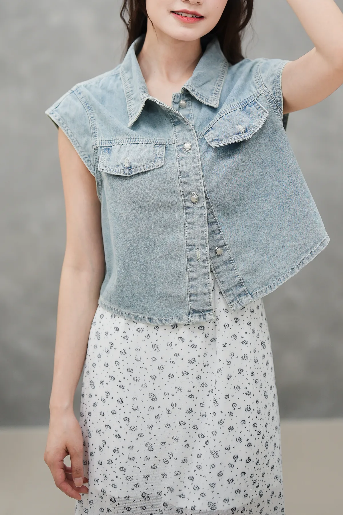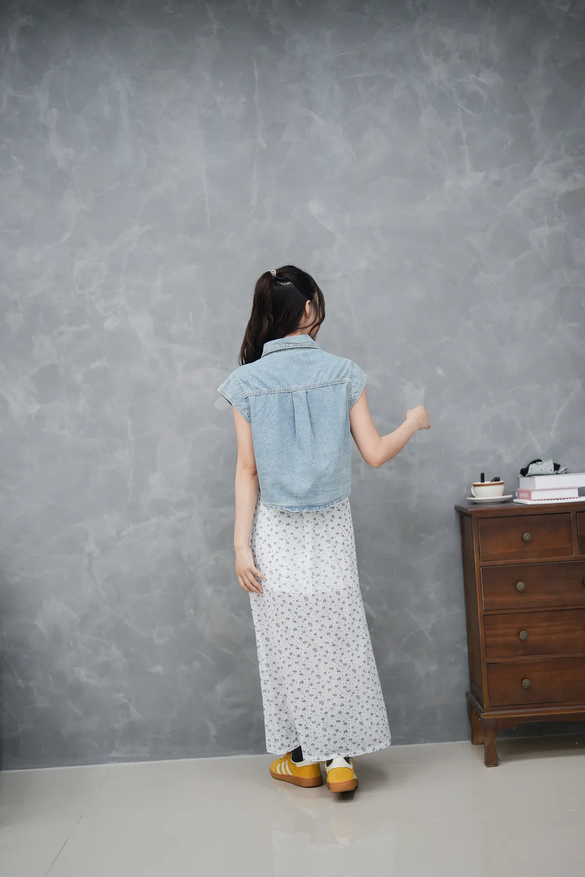 掰掰袖可以收 霧面銀釦牛仔襯衫