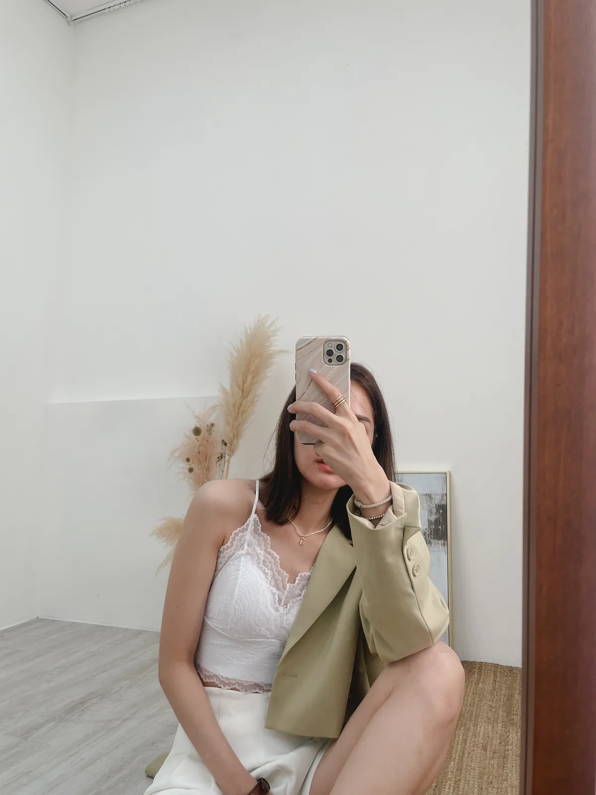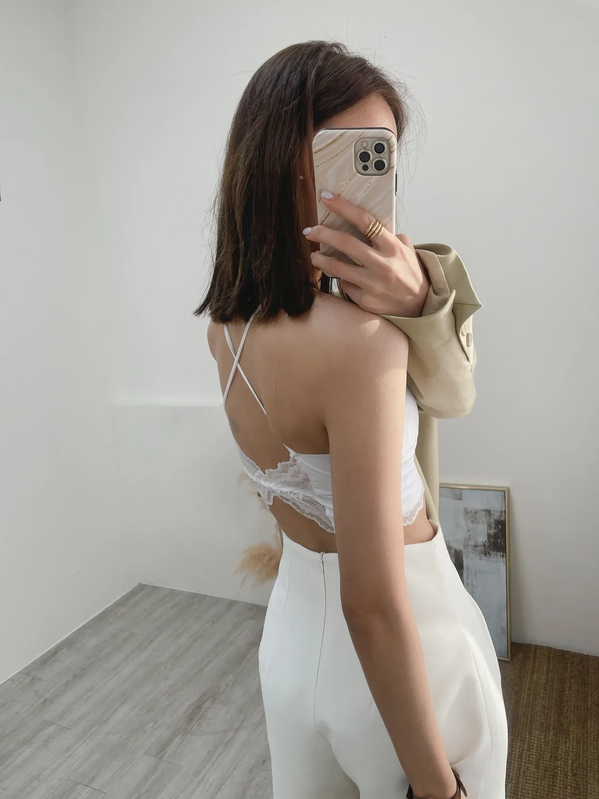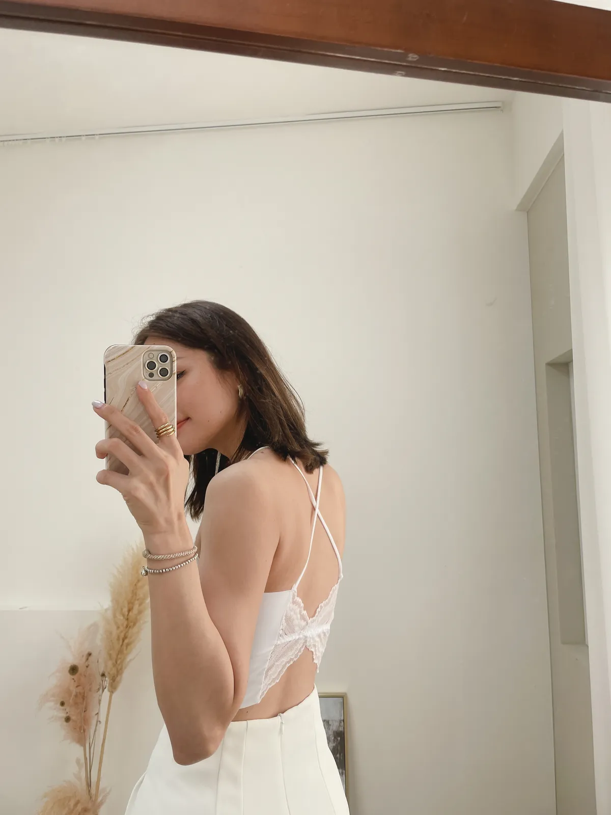 非常喜歡她的露背/ 正面的雙層蕾絲