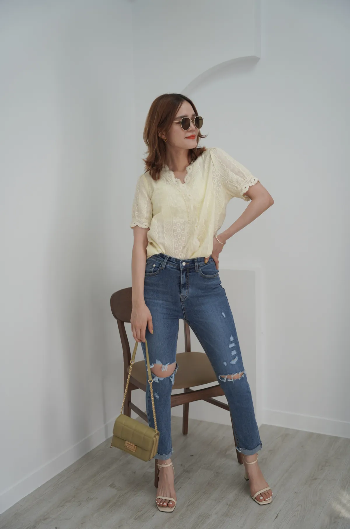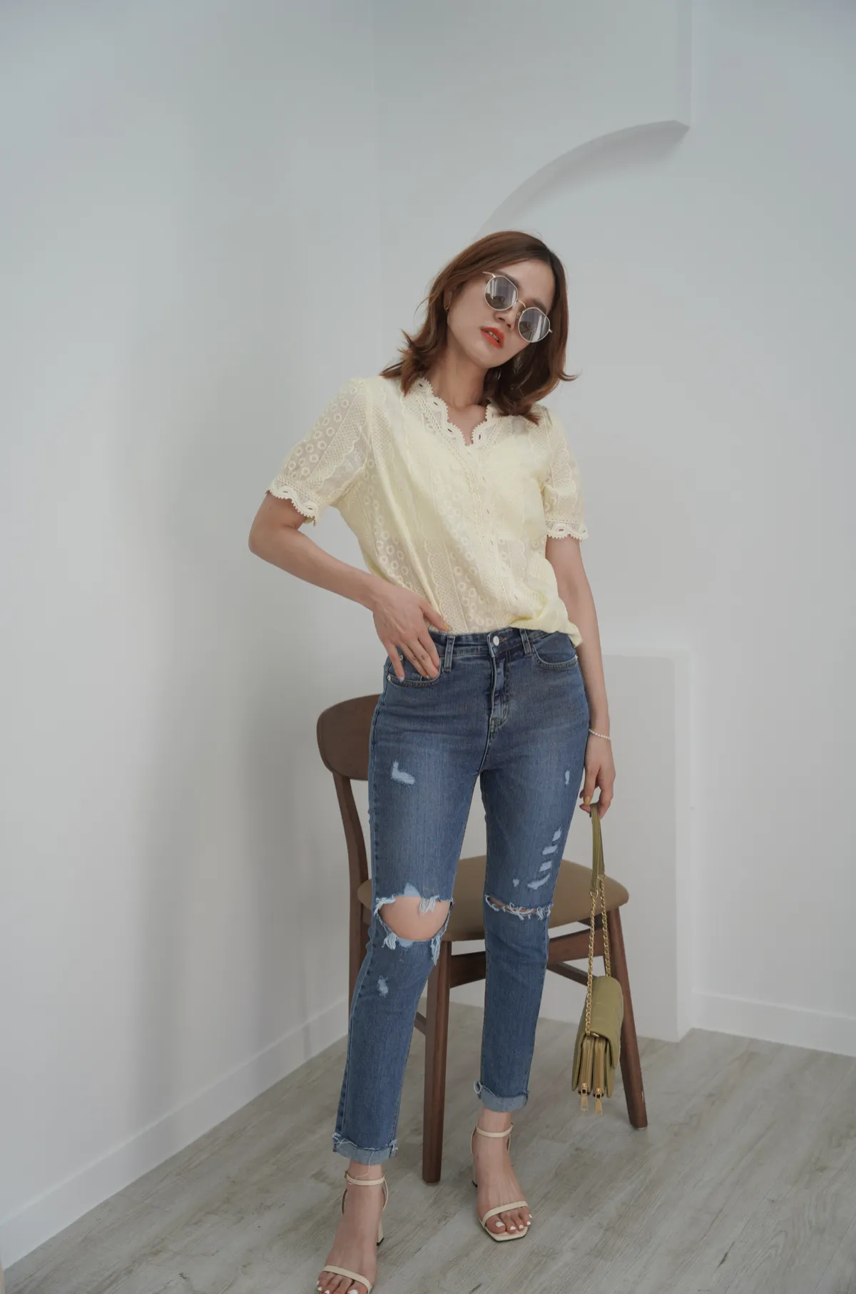 破洞的位置都有錯開膝蓋