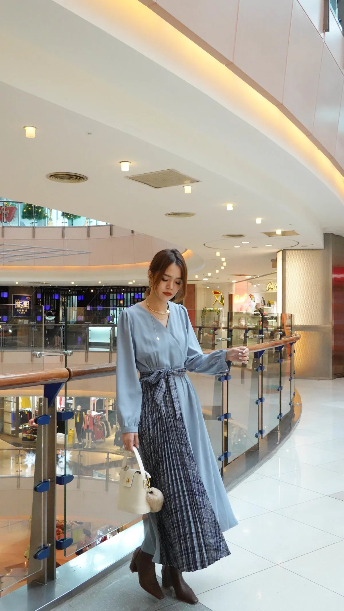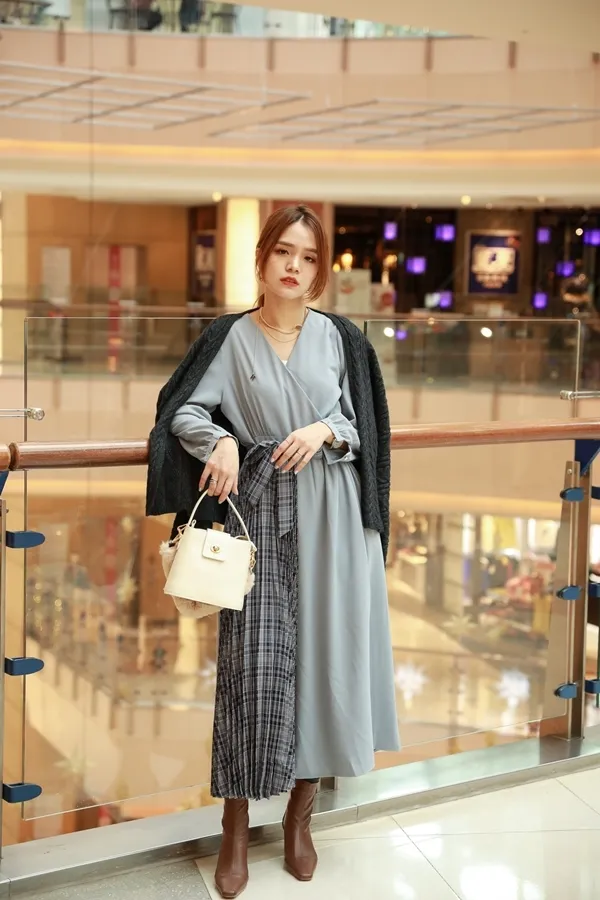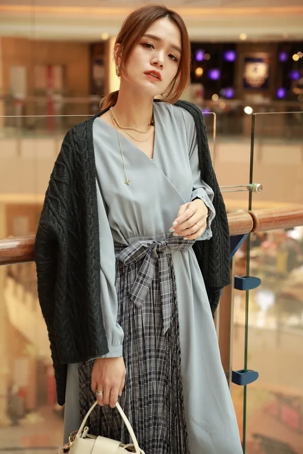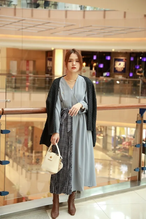 側拼接格紋洋