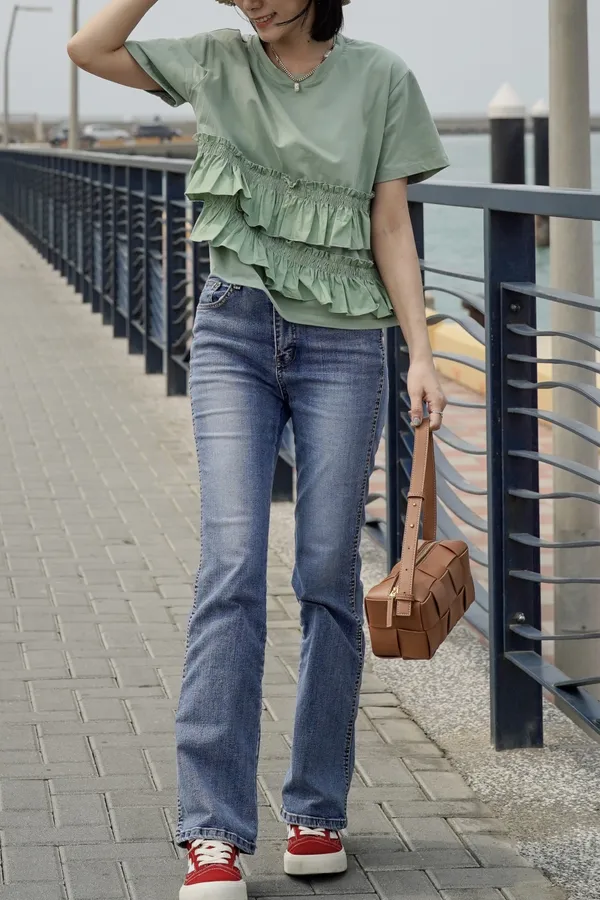 彈力微喇叭牛仔褲