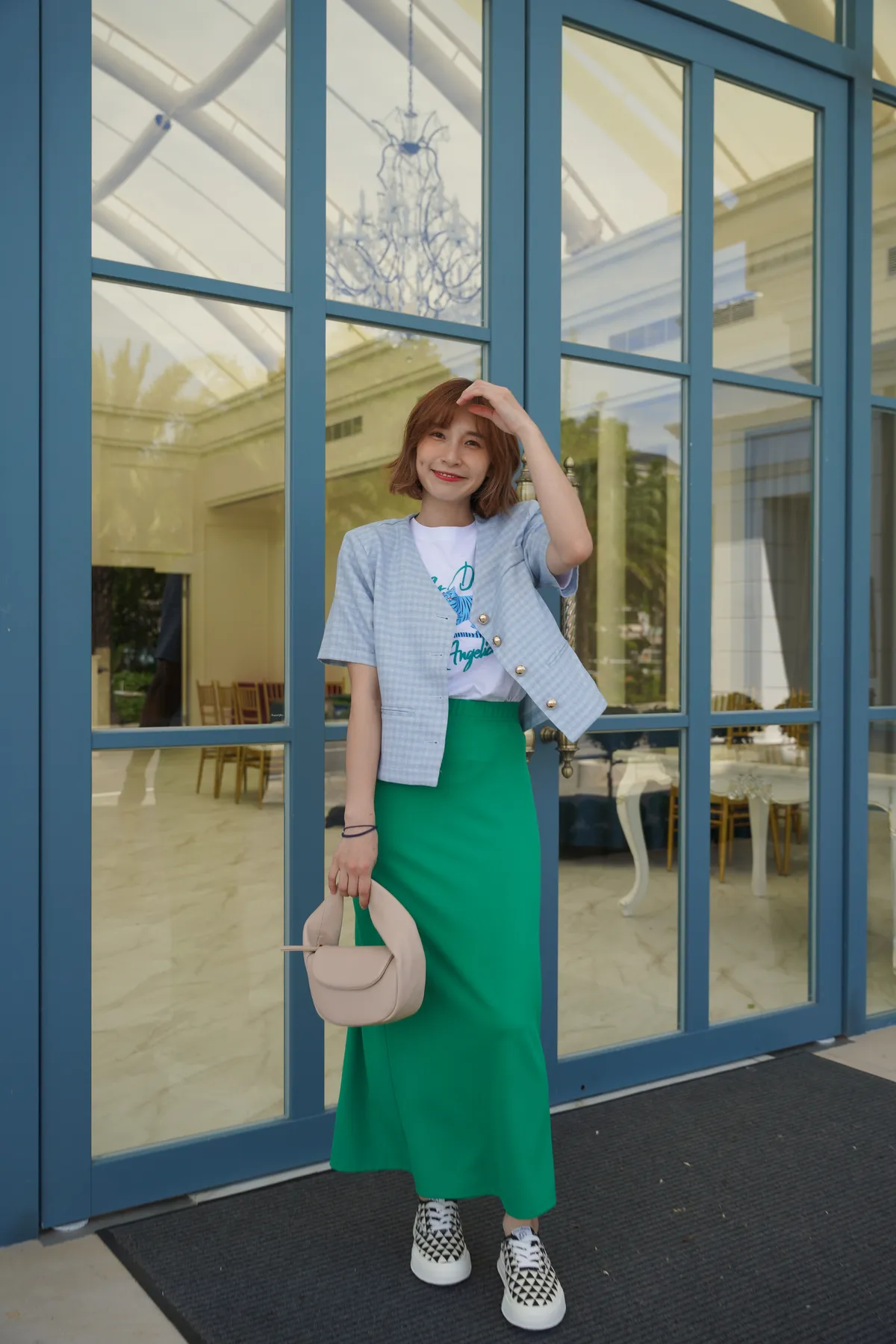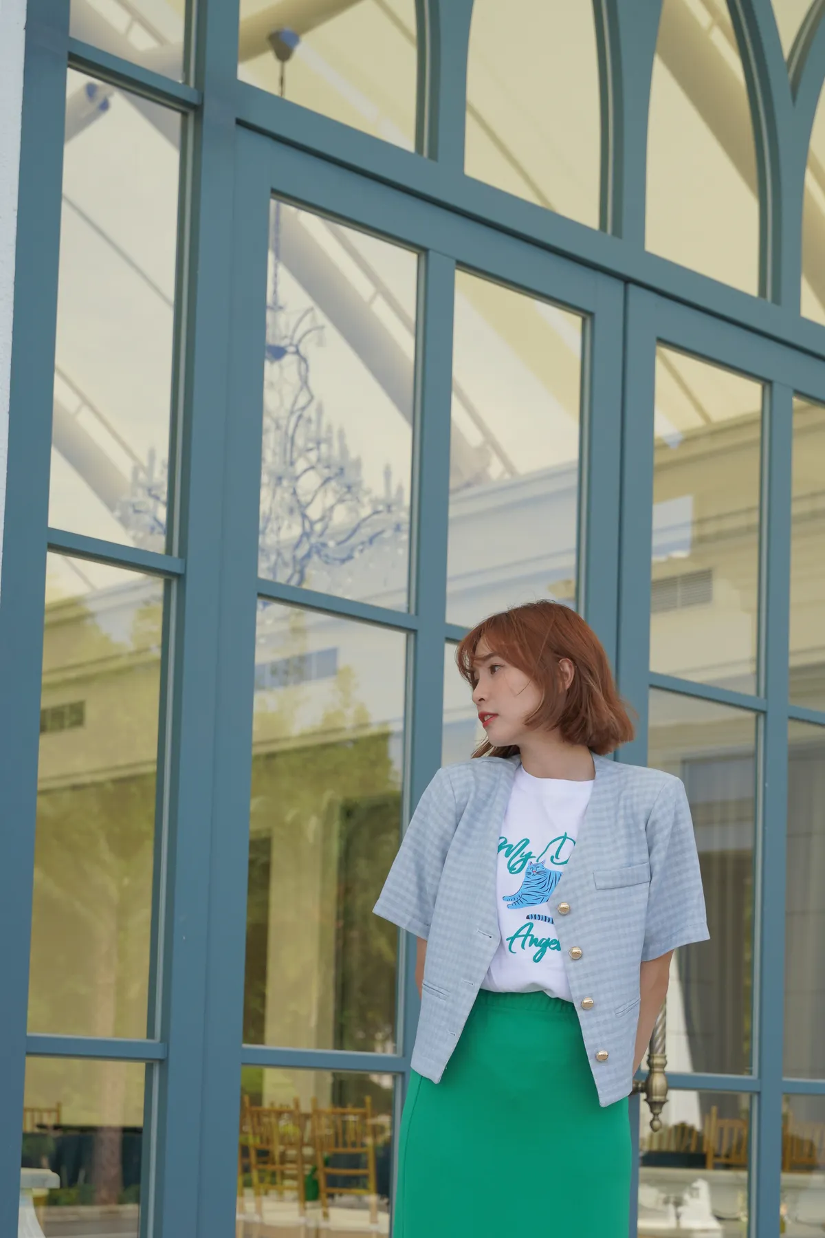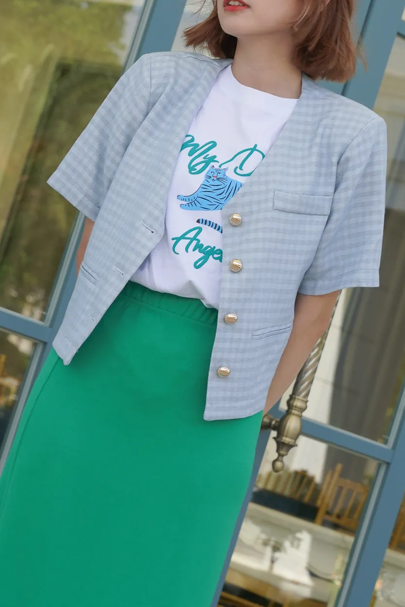格紋墊肩金釦小香外套