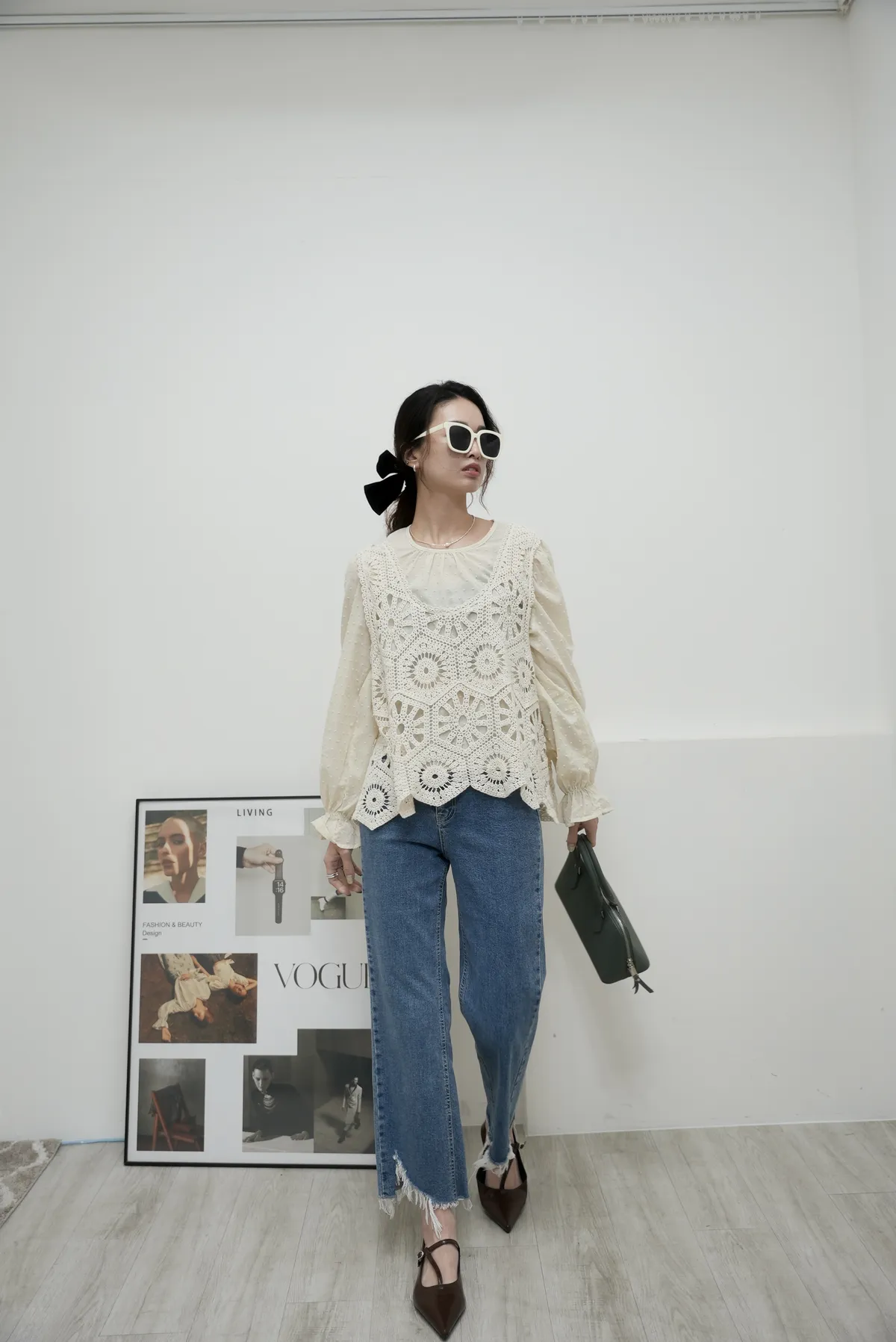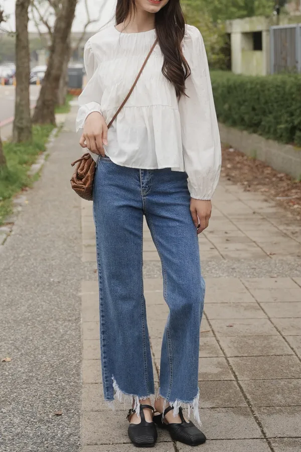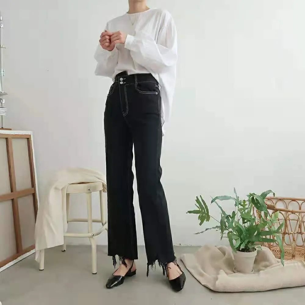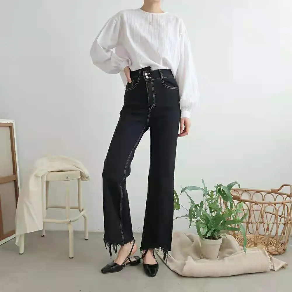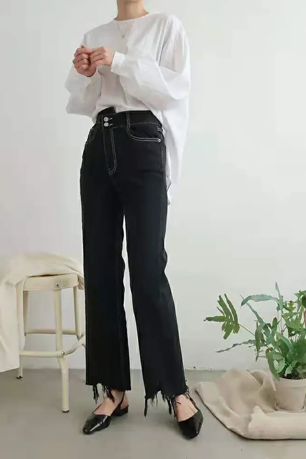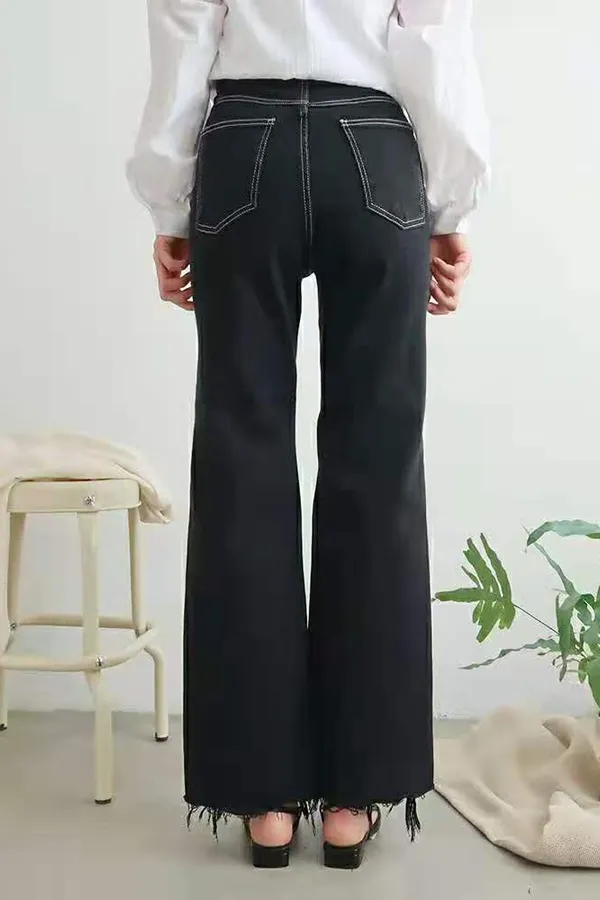 不規則褲頭抽鬚牛仔褲