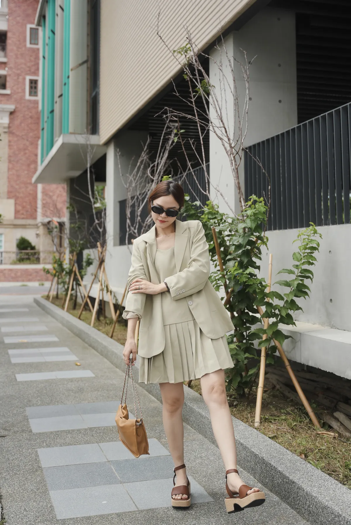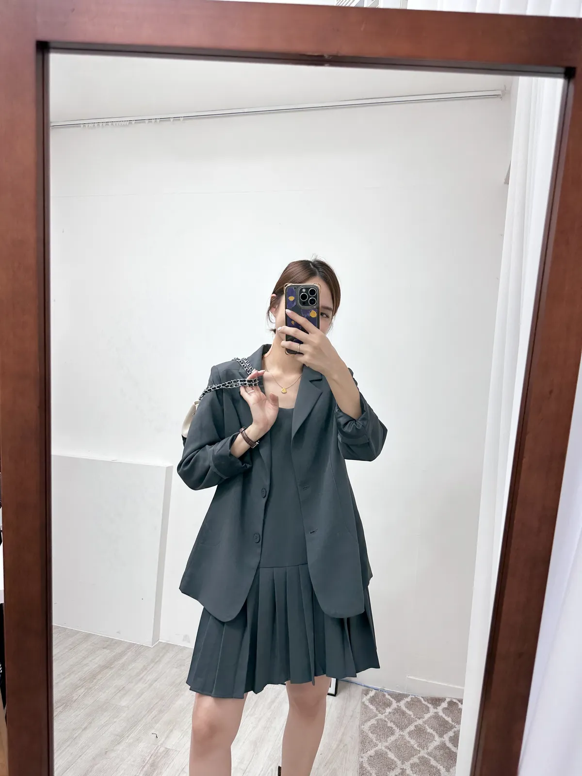 買一送一的概念 質感很棒兩件式 西裝百摺洋