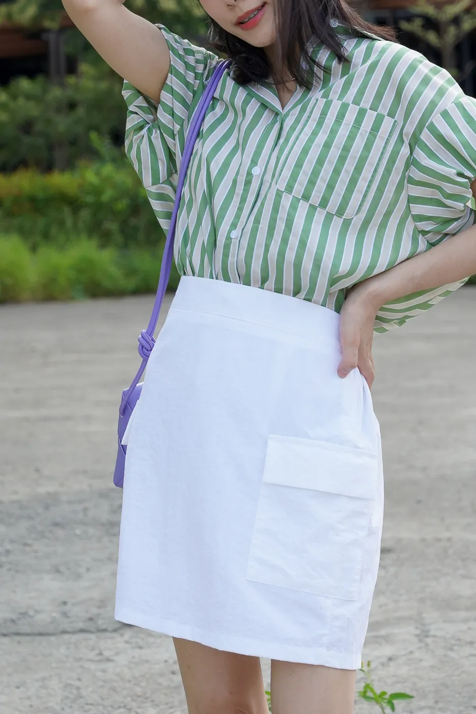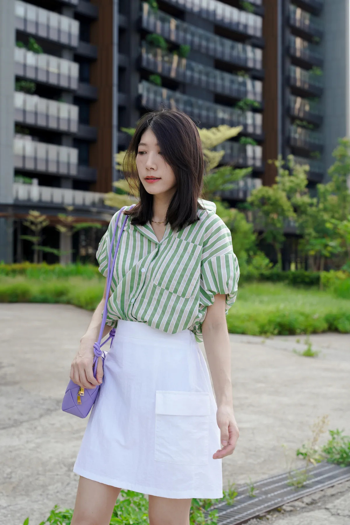 這件是裙子喔但長度不會太短穿起來不會沒安全感我被顏色吸引XD寶寶藍跟白色都好清爽就是屬於夏天材質是很涼爽的防水布今年韓國這種料子很受歡迎因為很涼阿今年涼真的很加分 ⚠️ 注意事項請確認好尺寸、款式、顏色再下單若有疑慮都歡迎到粉絲專頁私訊我們我們會幫您建議適合的商品尺寸