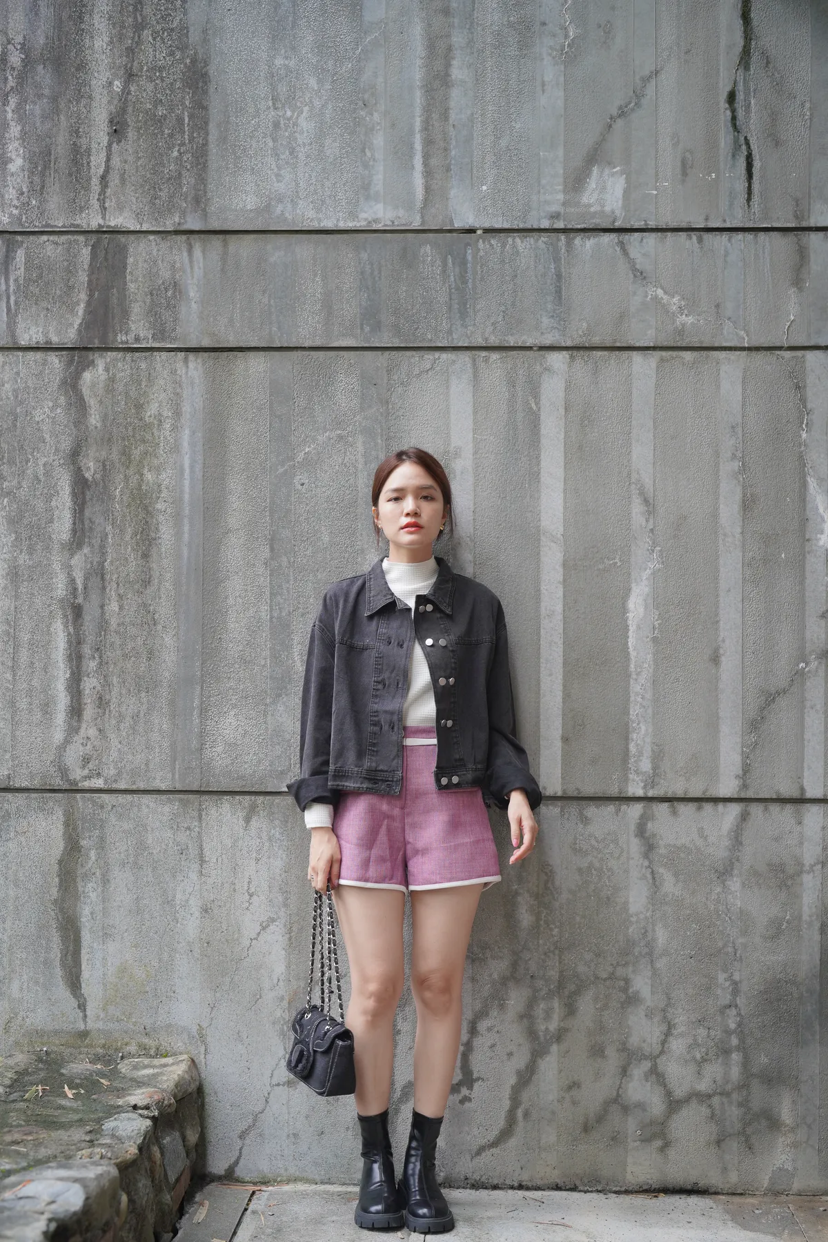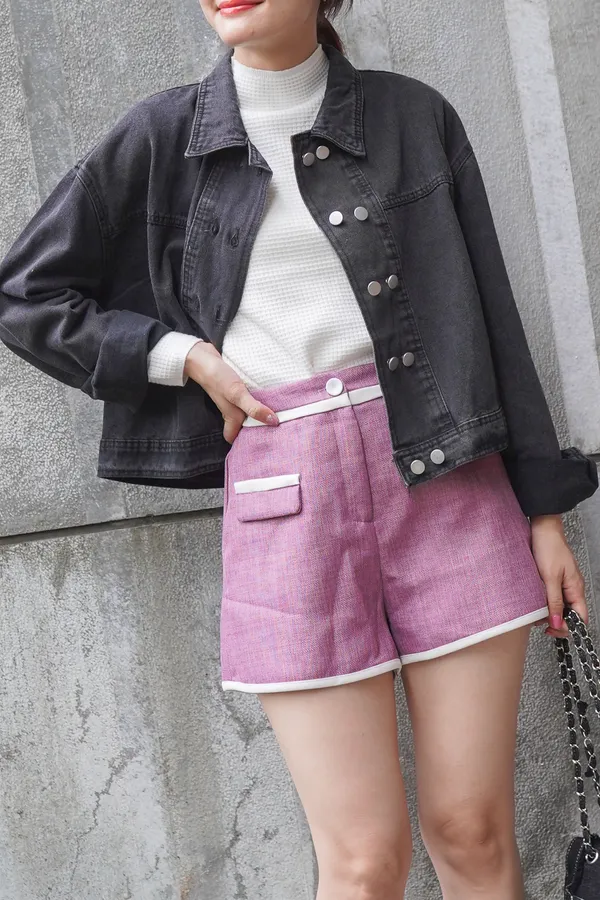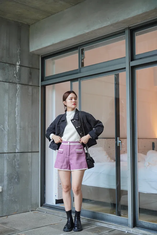 即可愛的跳色元素冬天裡很少見布料是挺的麻料直接搭配大學t或毛衣露出一點跳色車線很加分呀下身有肉可以參考闆娘臀圍98公分的實穿顯瘦度很可以喔 ⚠️ 注意事項請確認好尺寸、款式、顏色再下單若有疑慮都歡迎到粉絲專頁私訊我們我們會幫您建議適合的商品尺寸