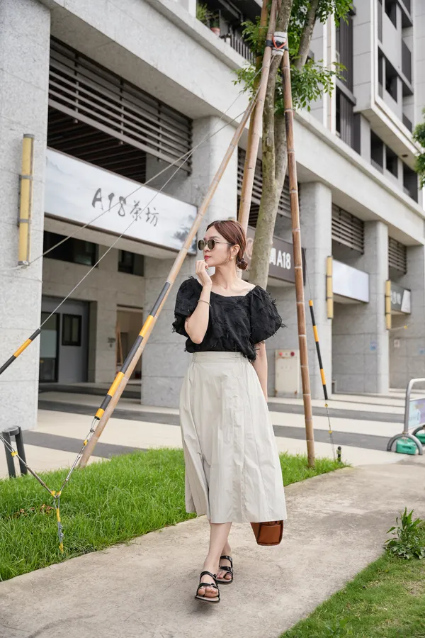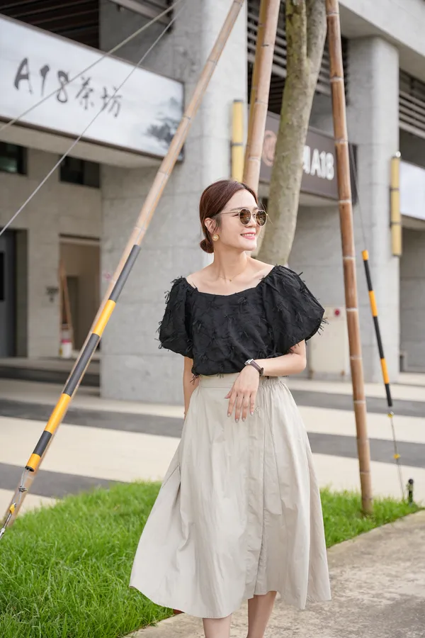 涼感滑料三釦傘裙