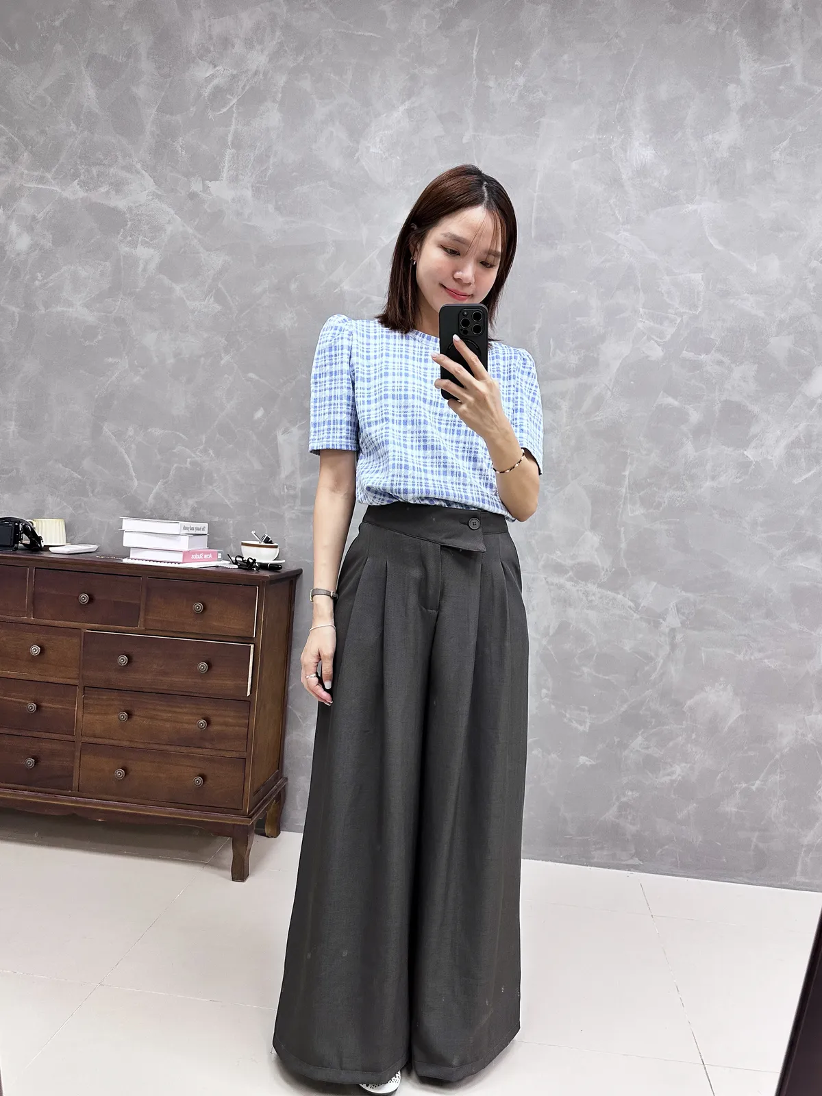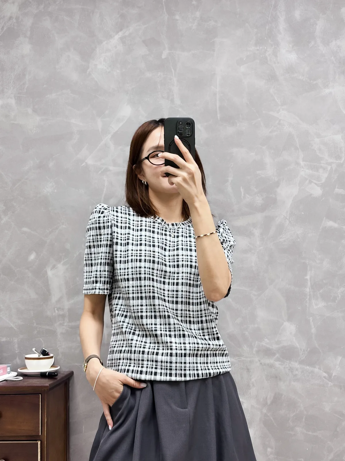 圓領格紋棉質上衣