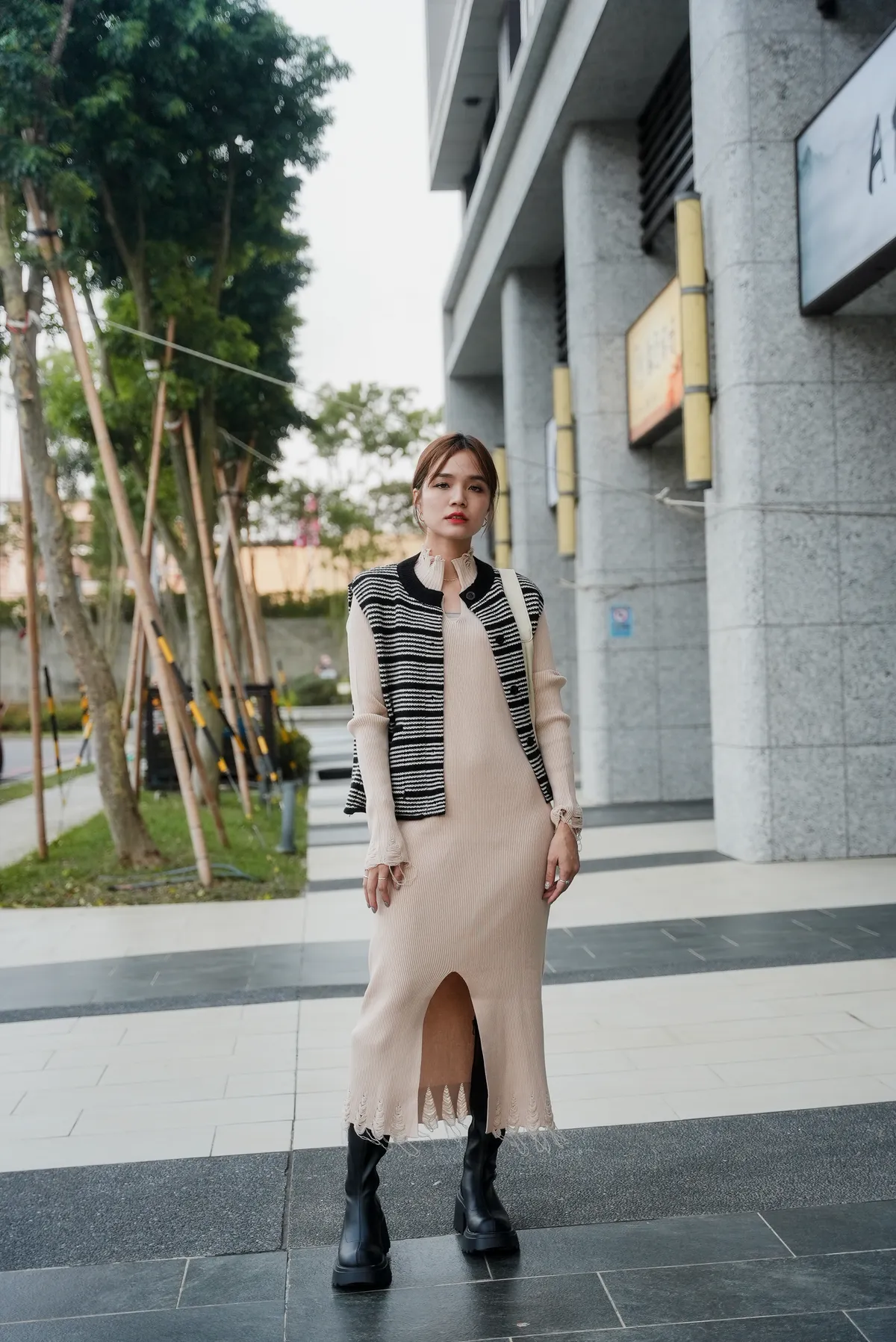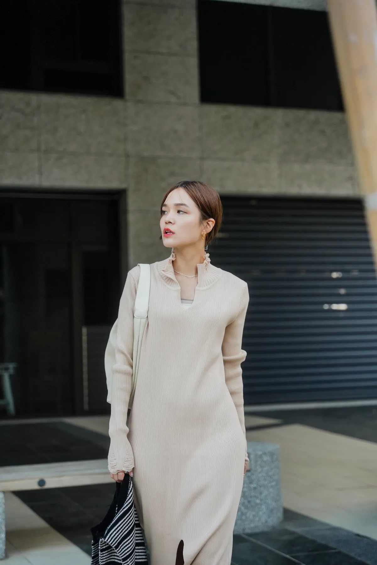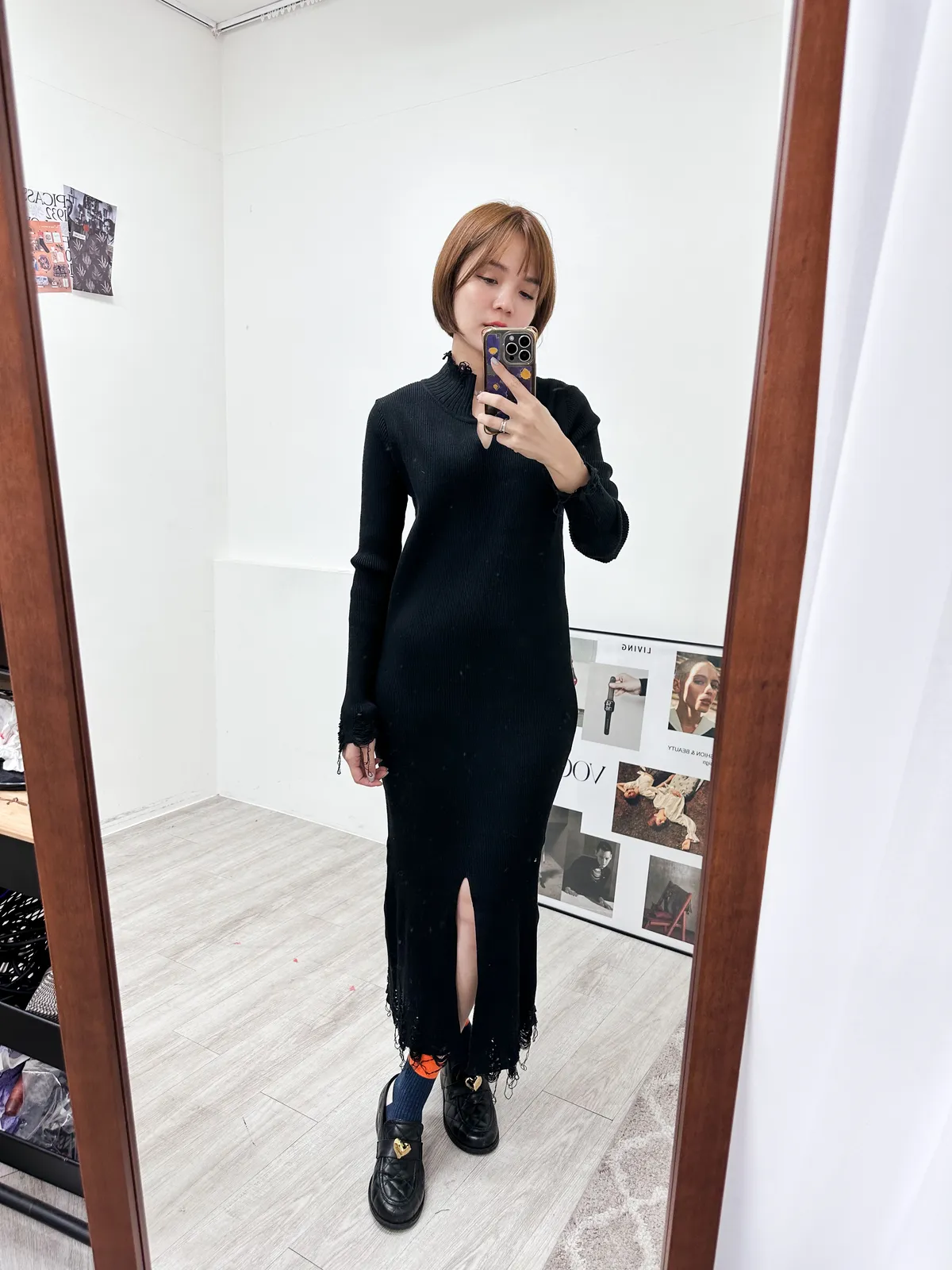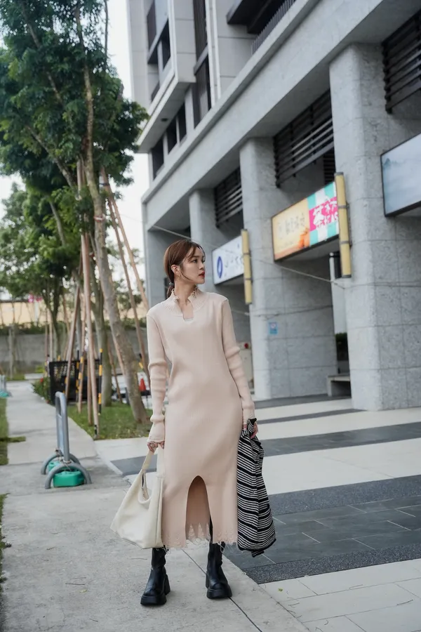 有馬鞍也可以辣一波 很瘦v領破損開衩針織洋