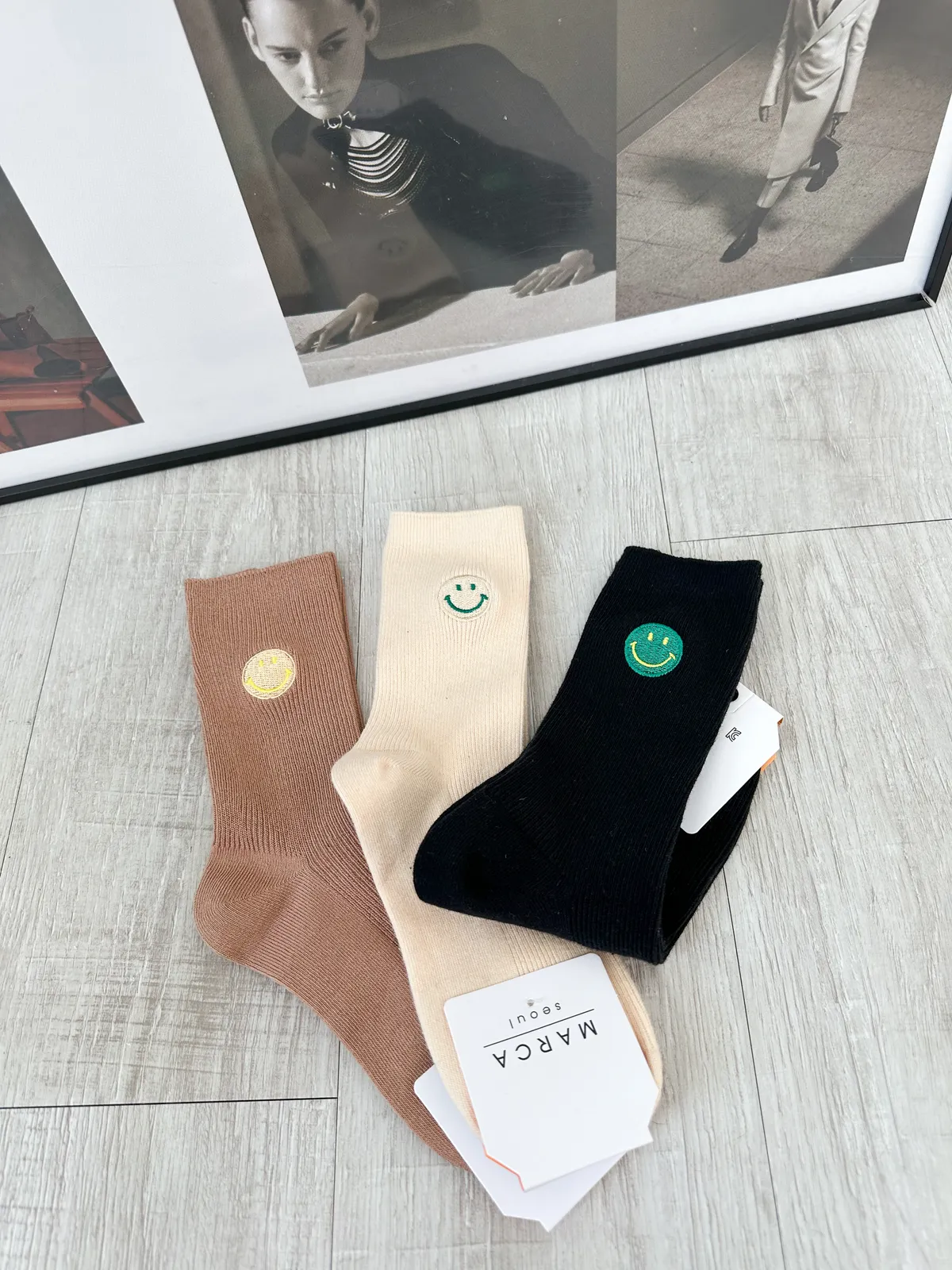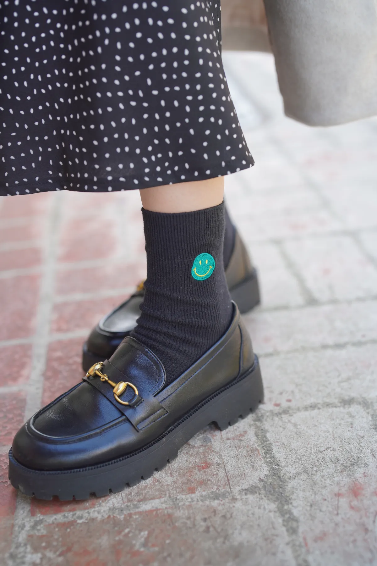 刺繡笑臉素色長襪