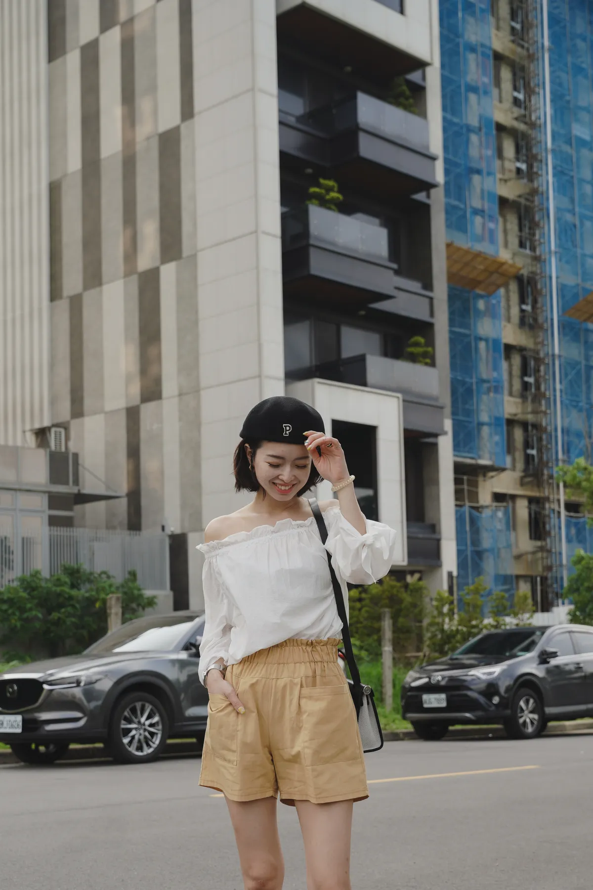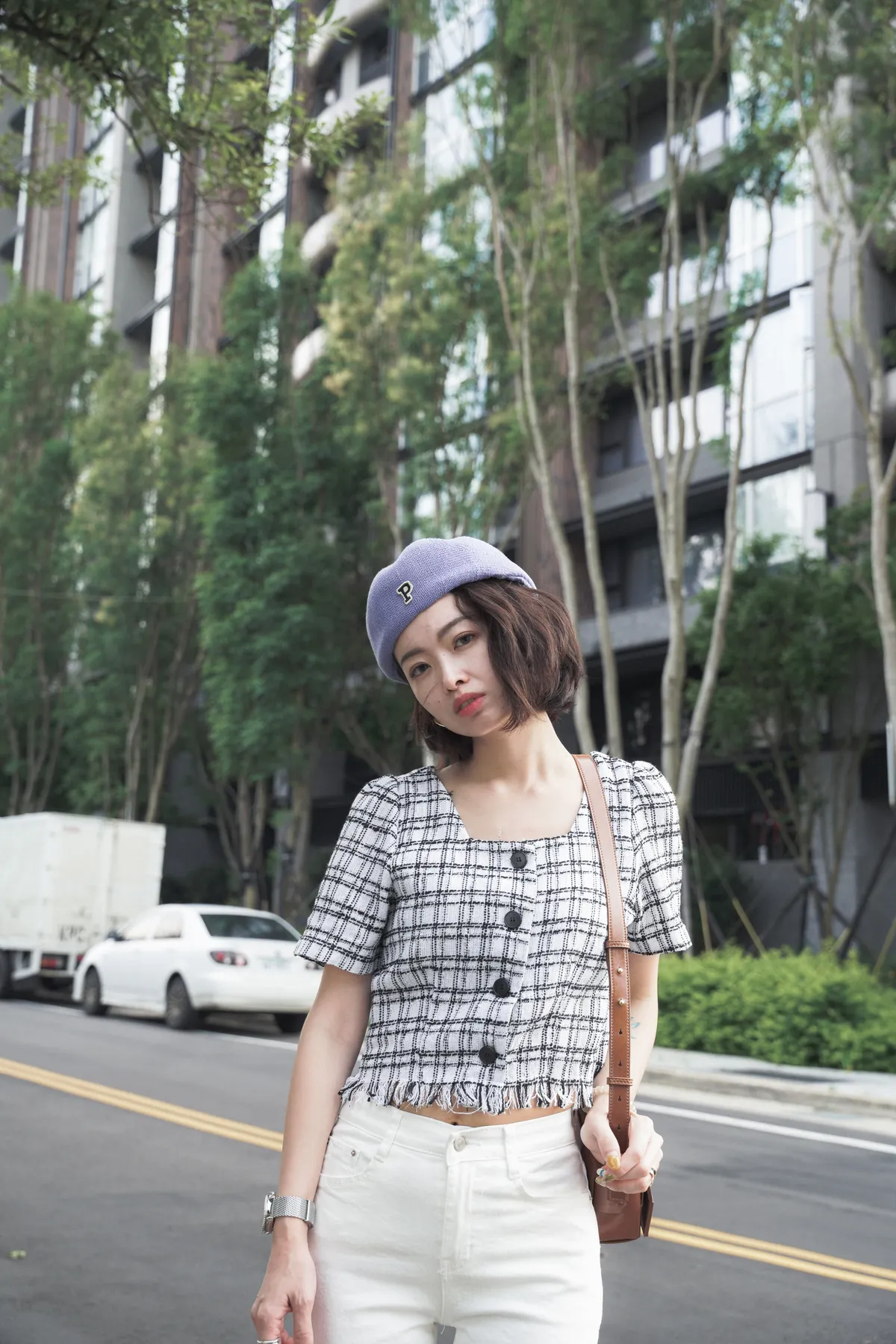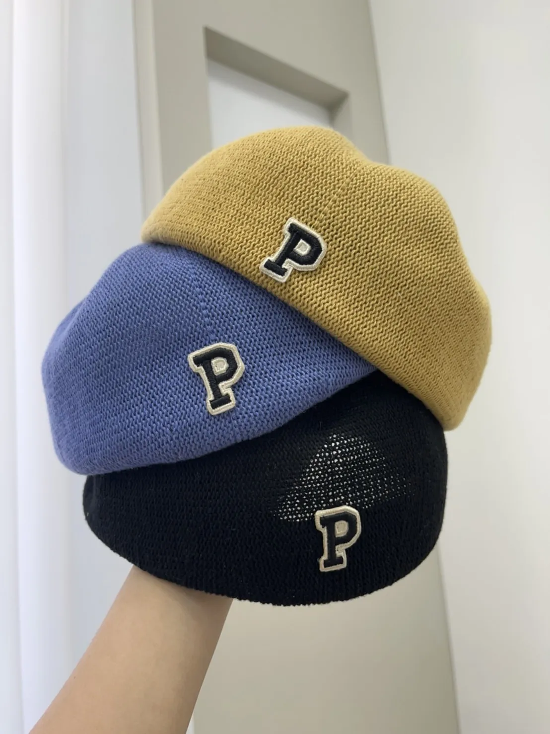 字母P針織報童帽(帽圍可調整)
