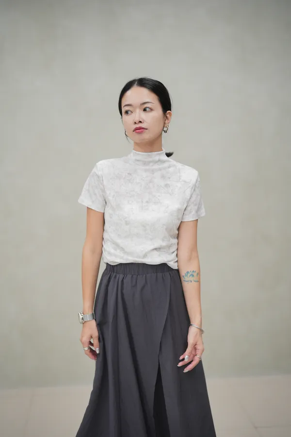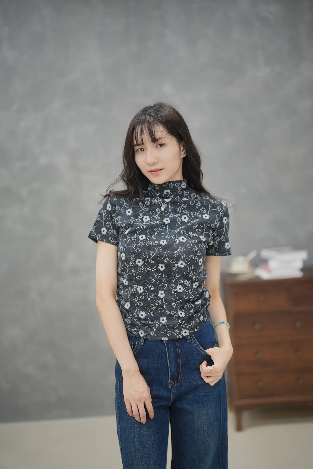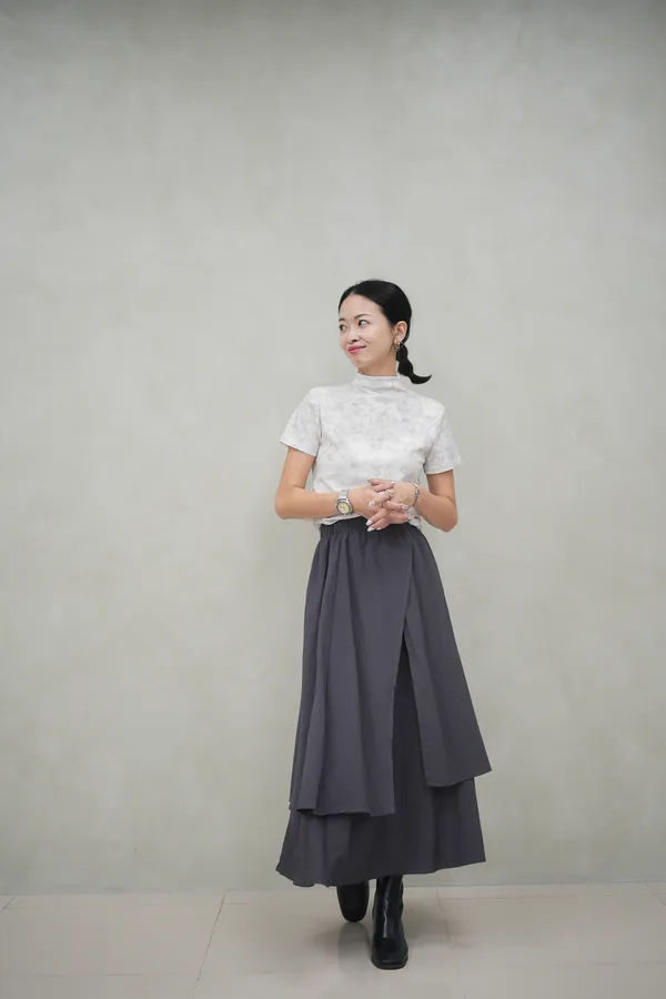 秋天的徐風很迷人 立領小花刺繡上衣