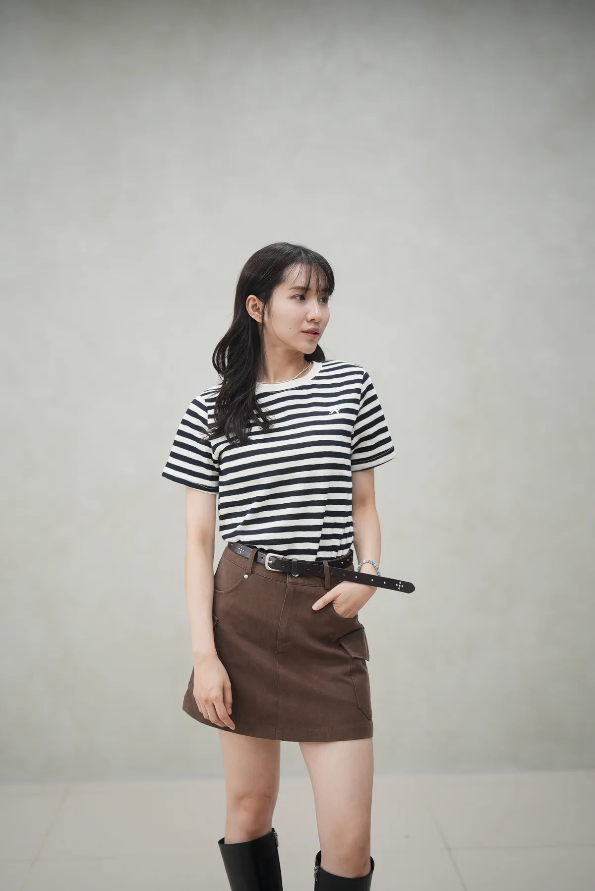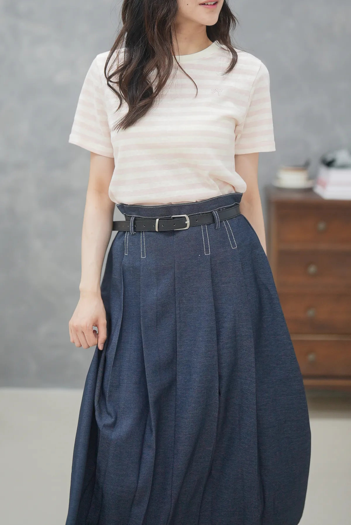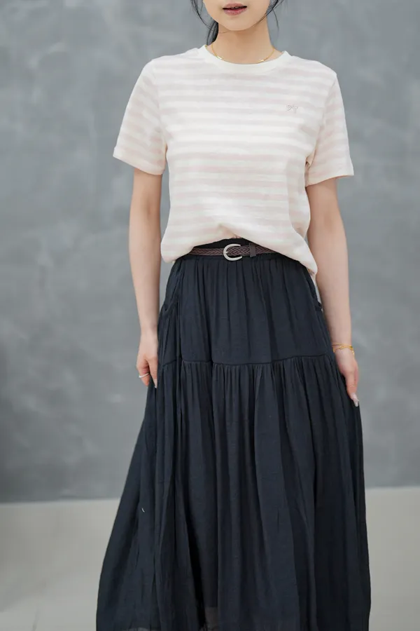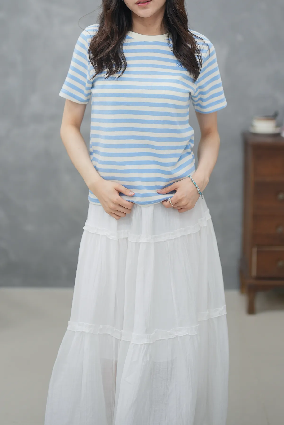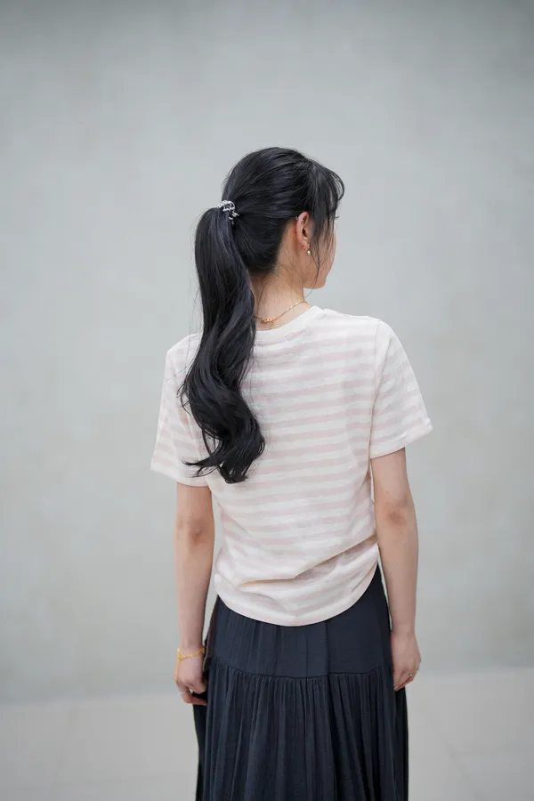 蝴蝶結刺繡條紋上衣