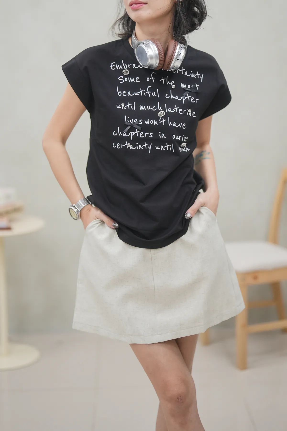 立體珠寶 涼感棉質上衣
