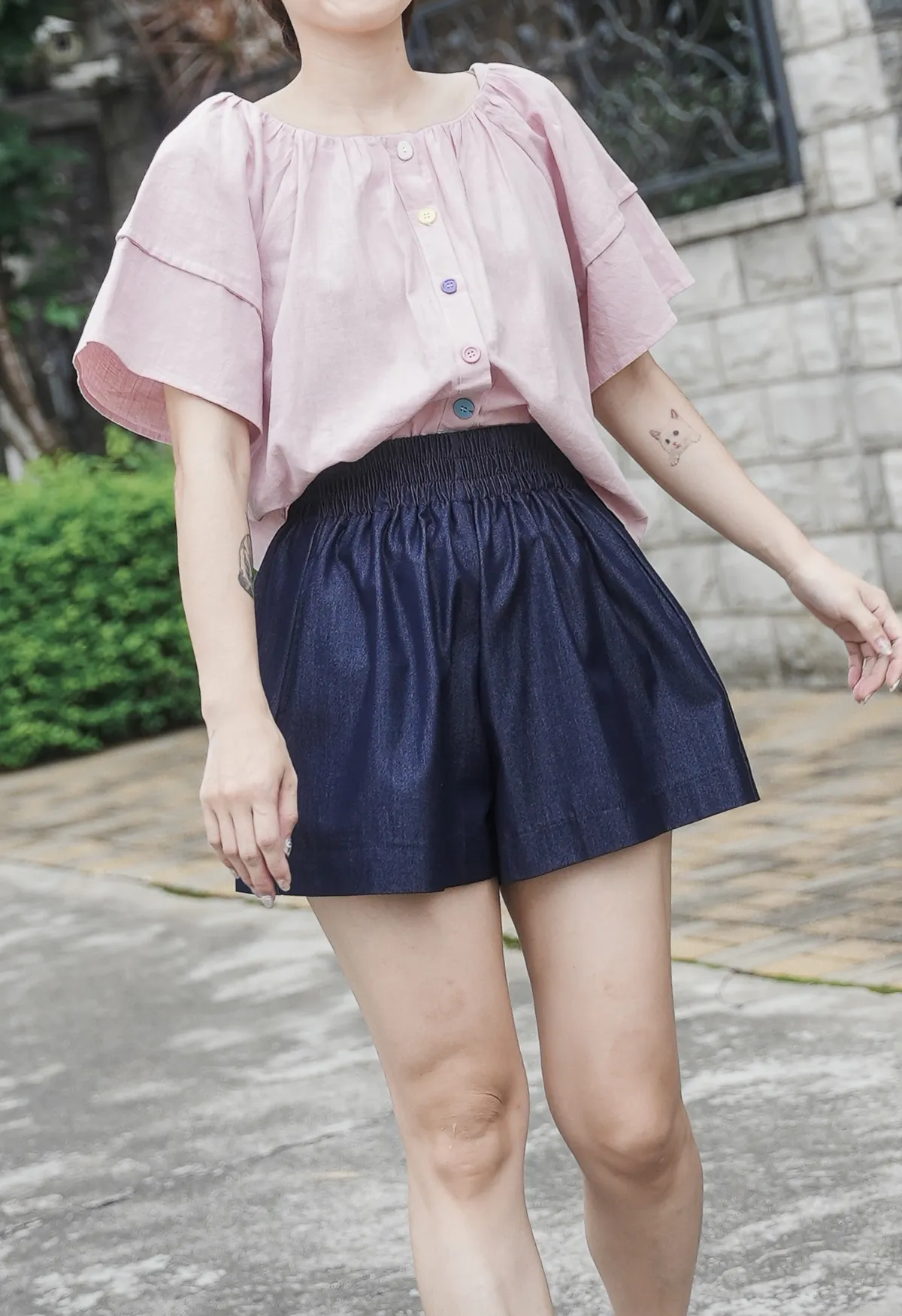 第一眼就被布料的材質吸引看起來像牛仔布料其實是涼感材質腰圍全鬆緊馬鞍是a line就是要給你視覺詐騙有分尺碼喔 ⚠️ 注意事項 請確認好尺寸、款式、顏色再下單若有疑慮都歡迎到粉絲專頁私訊我們我們會幫您建議適合的商品尺寸