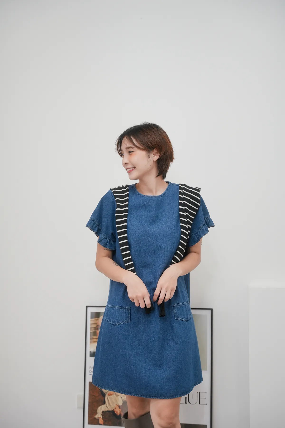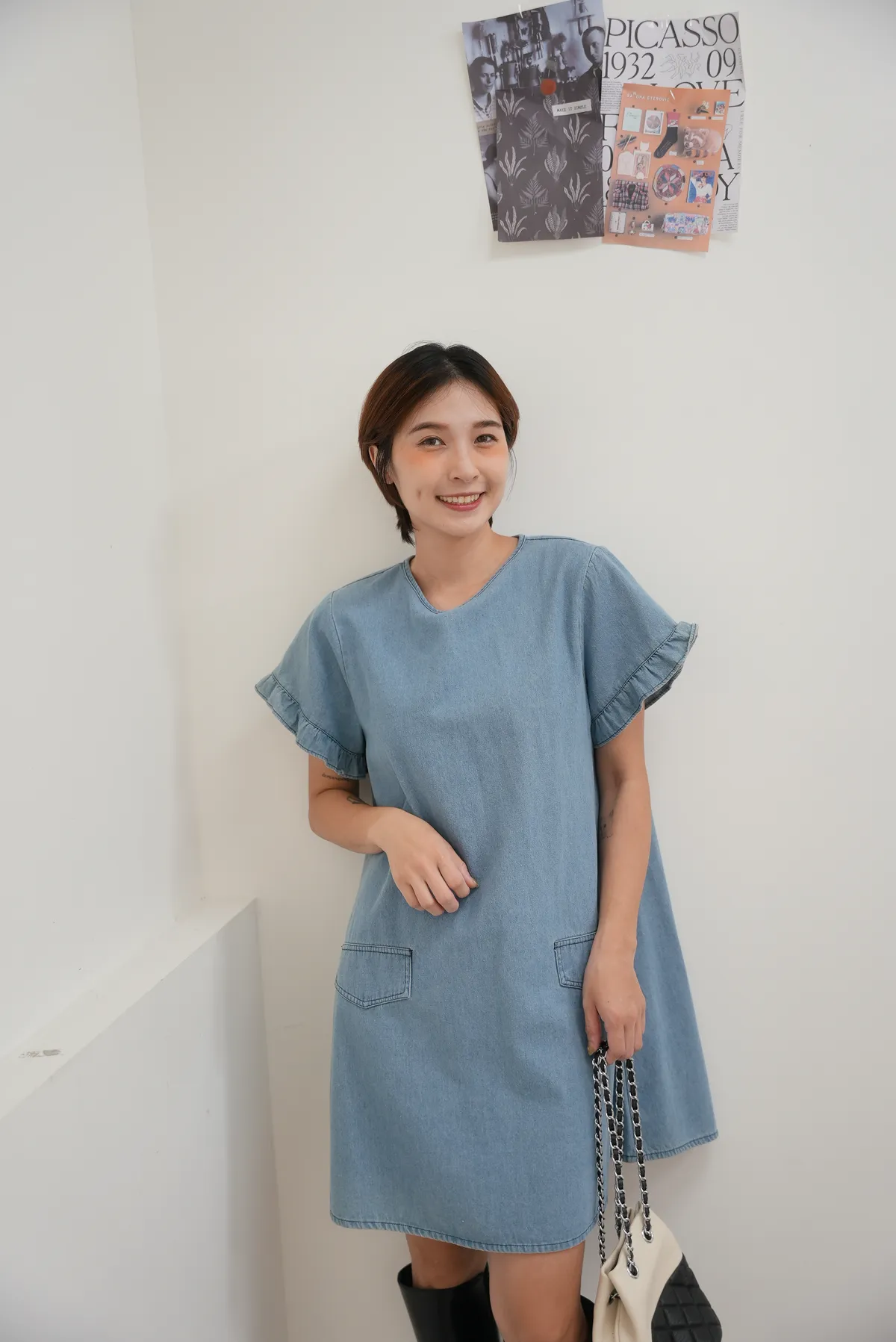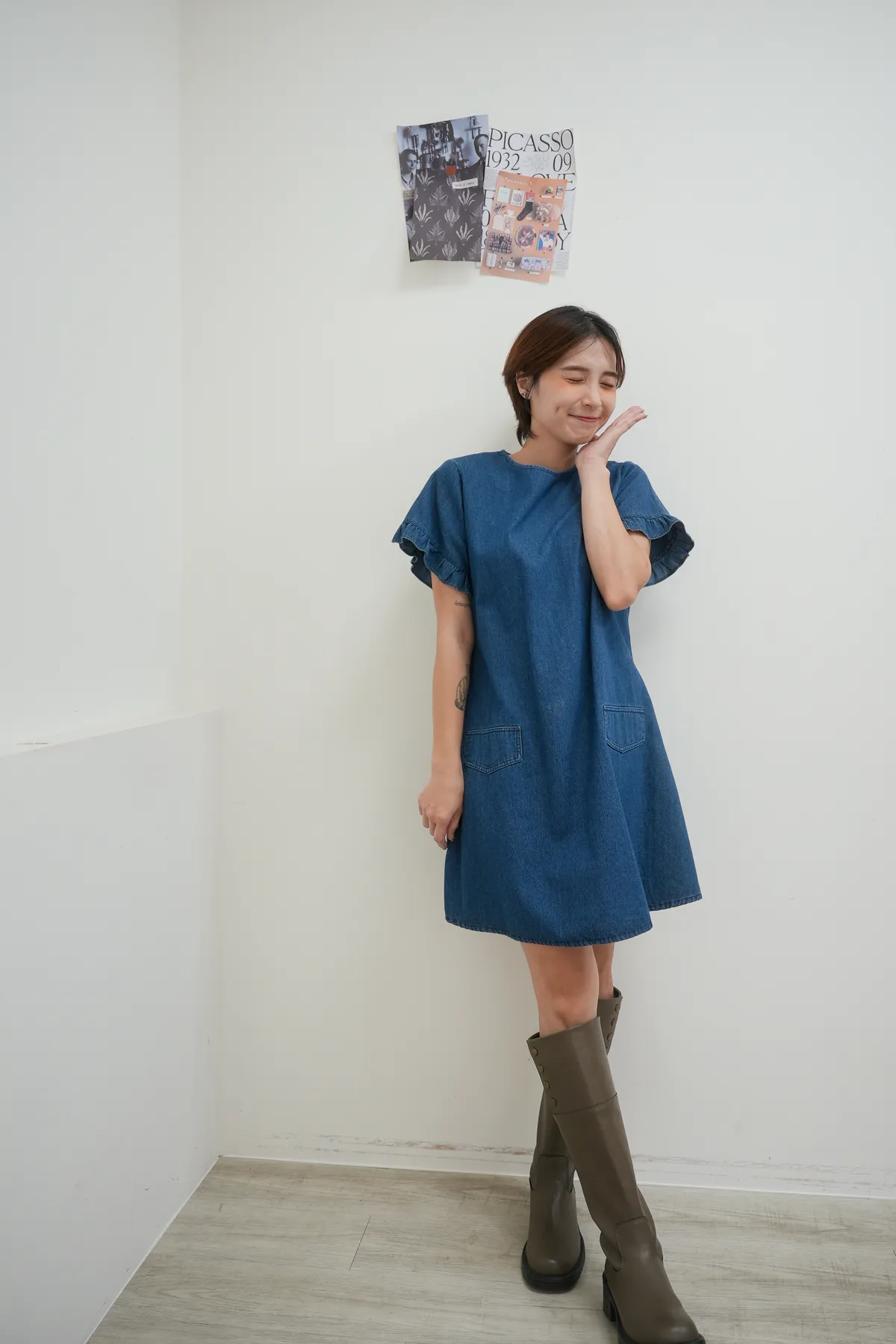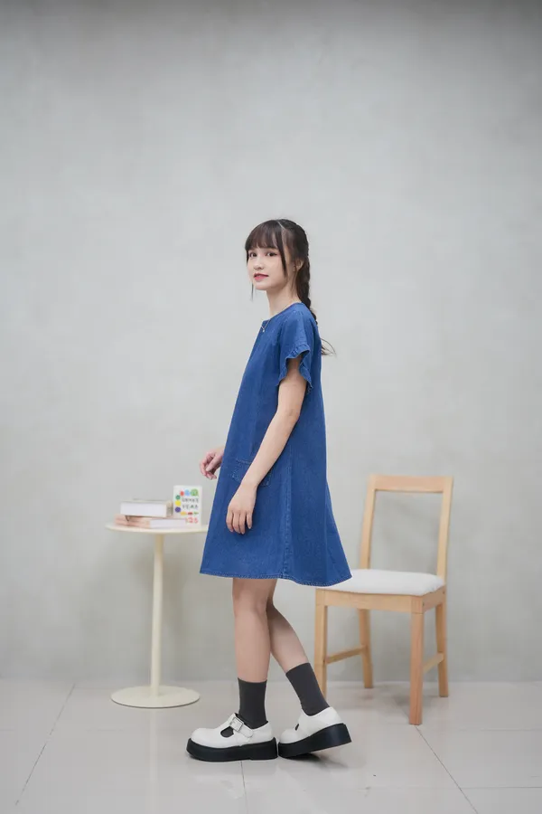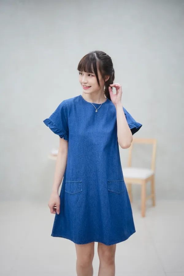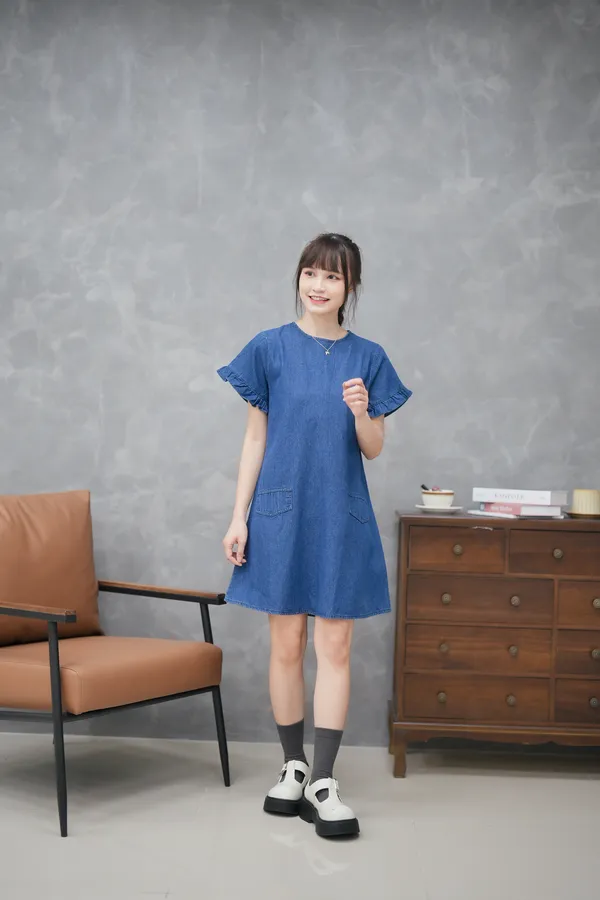 最遮肉的短洋 荷葉袖牛仔短洋