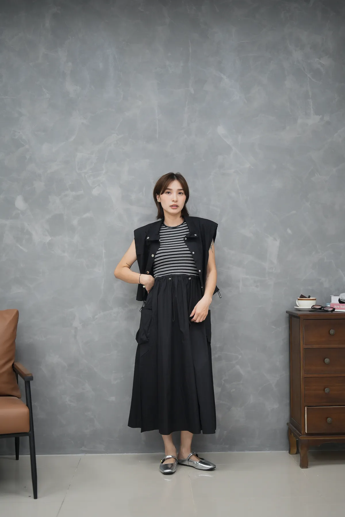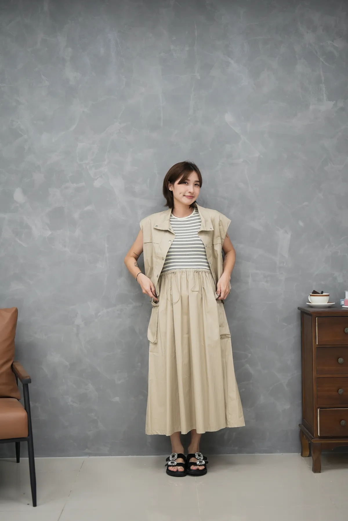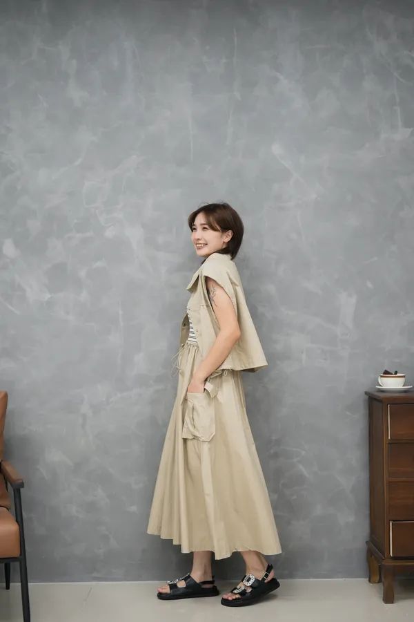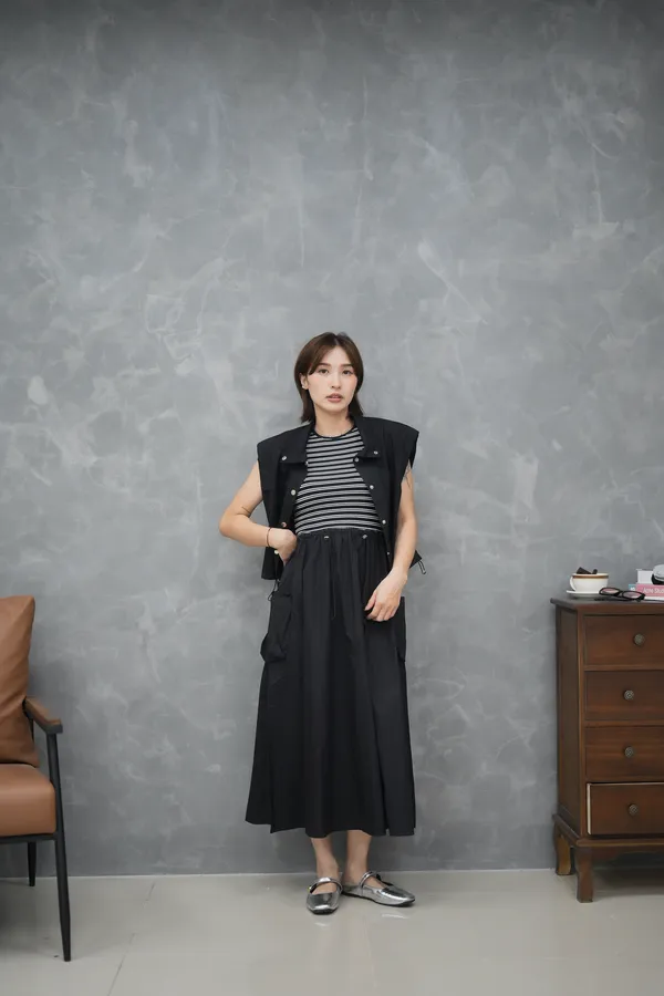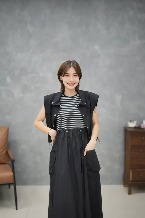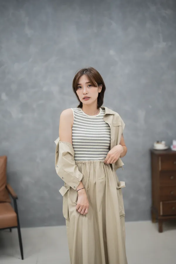 上身超驚艷 兩件式 條紋背心洋